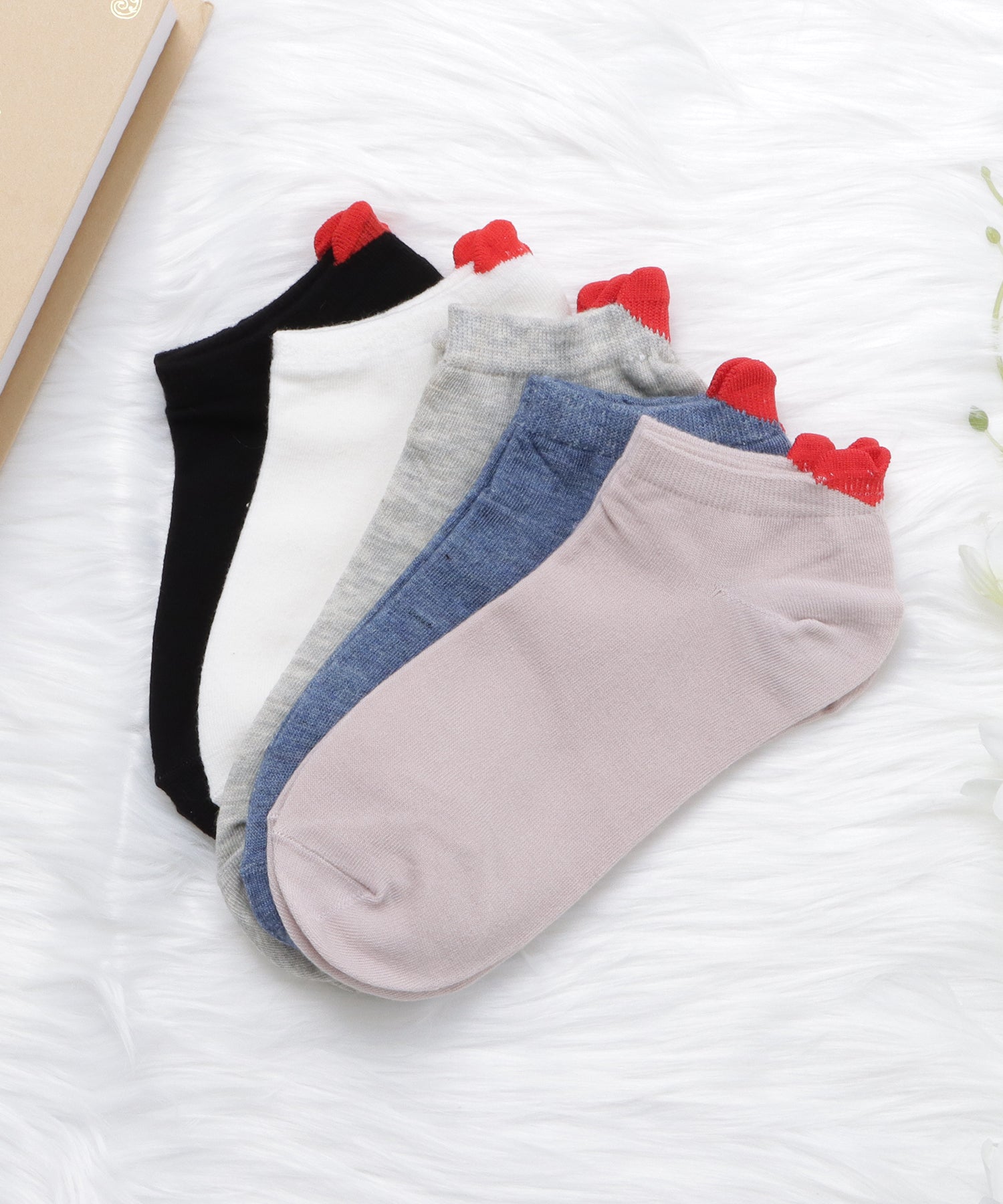【5色組】ハートワンポイントくるぶしソックスセット