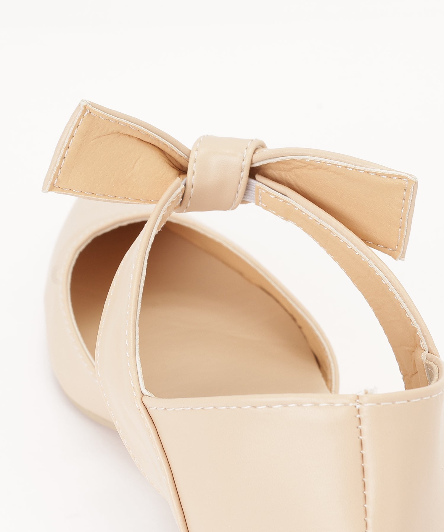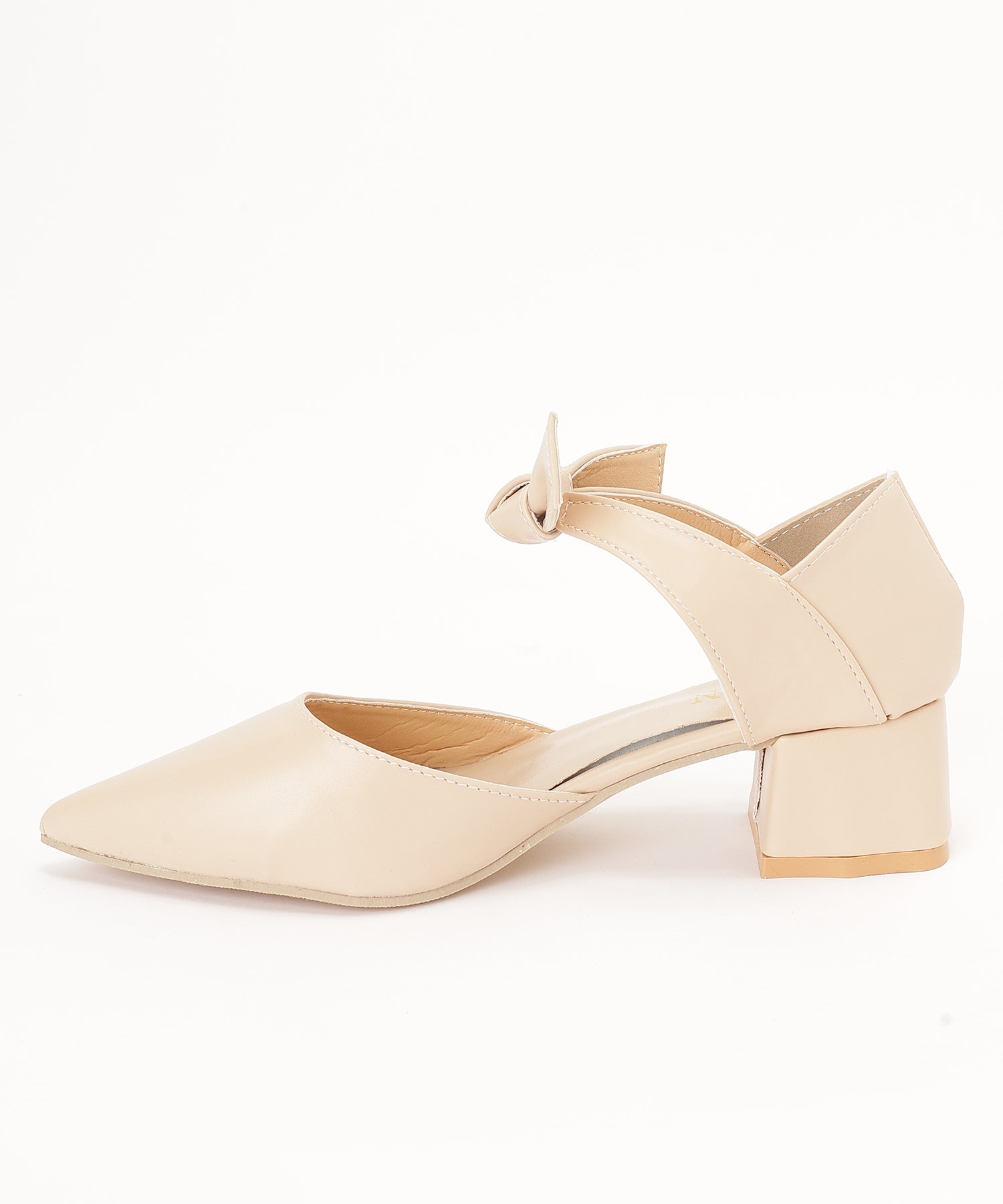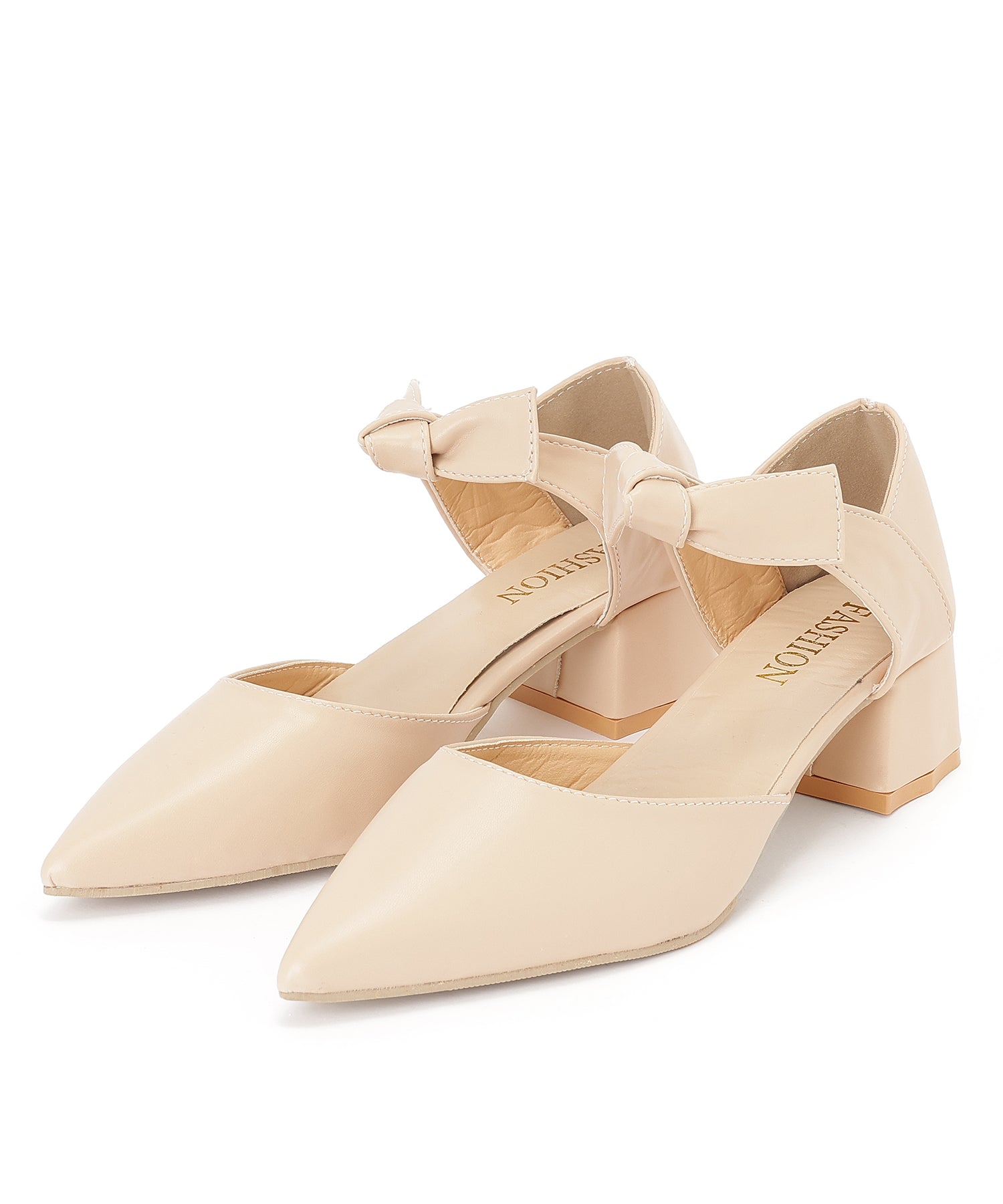 レザー調 リボン ストラップ ポインテッドトゥ ヒール パンプス