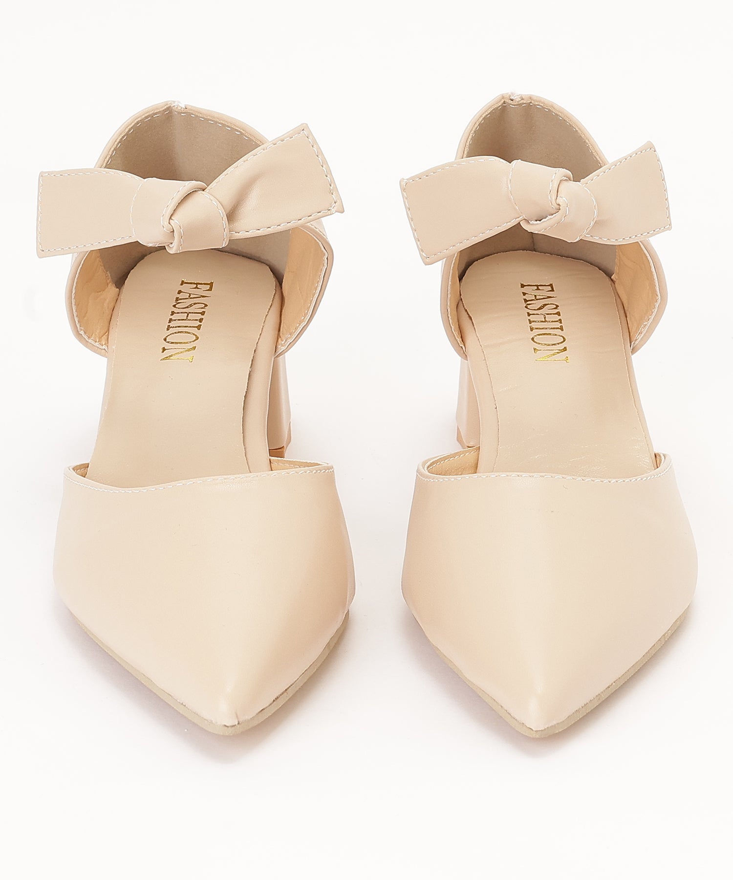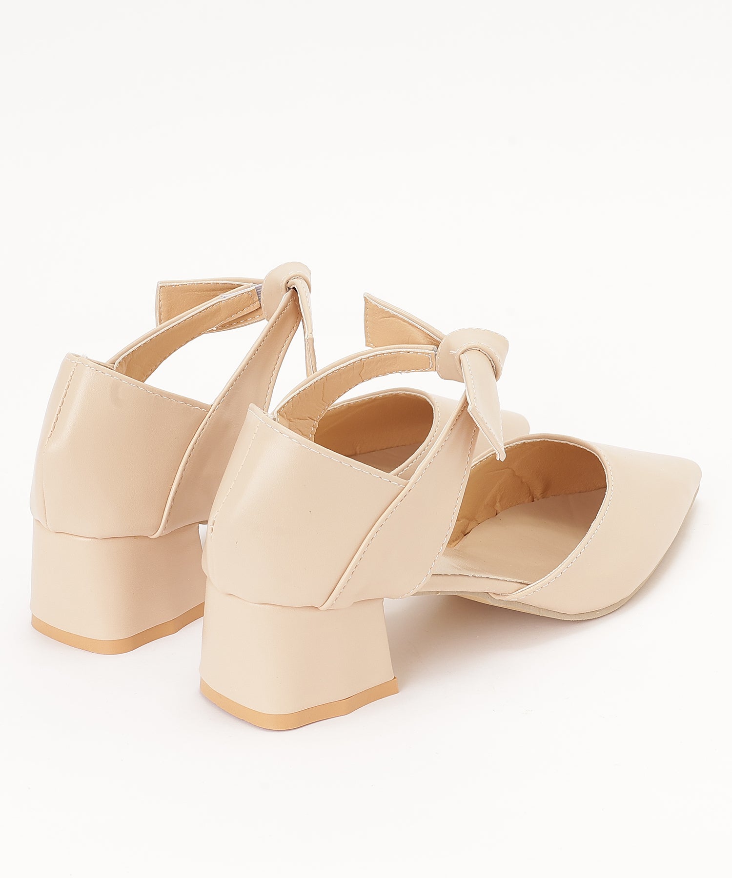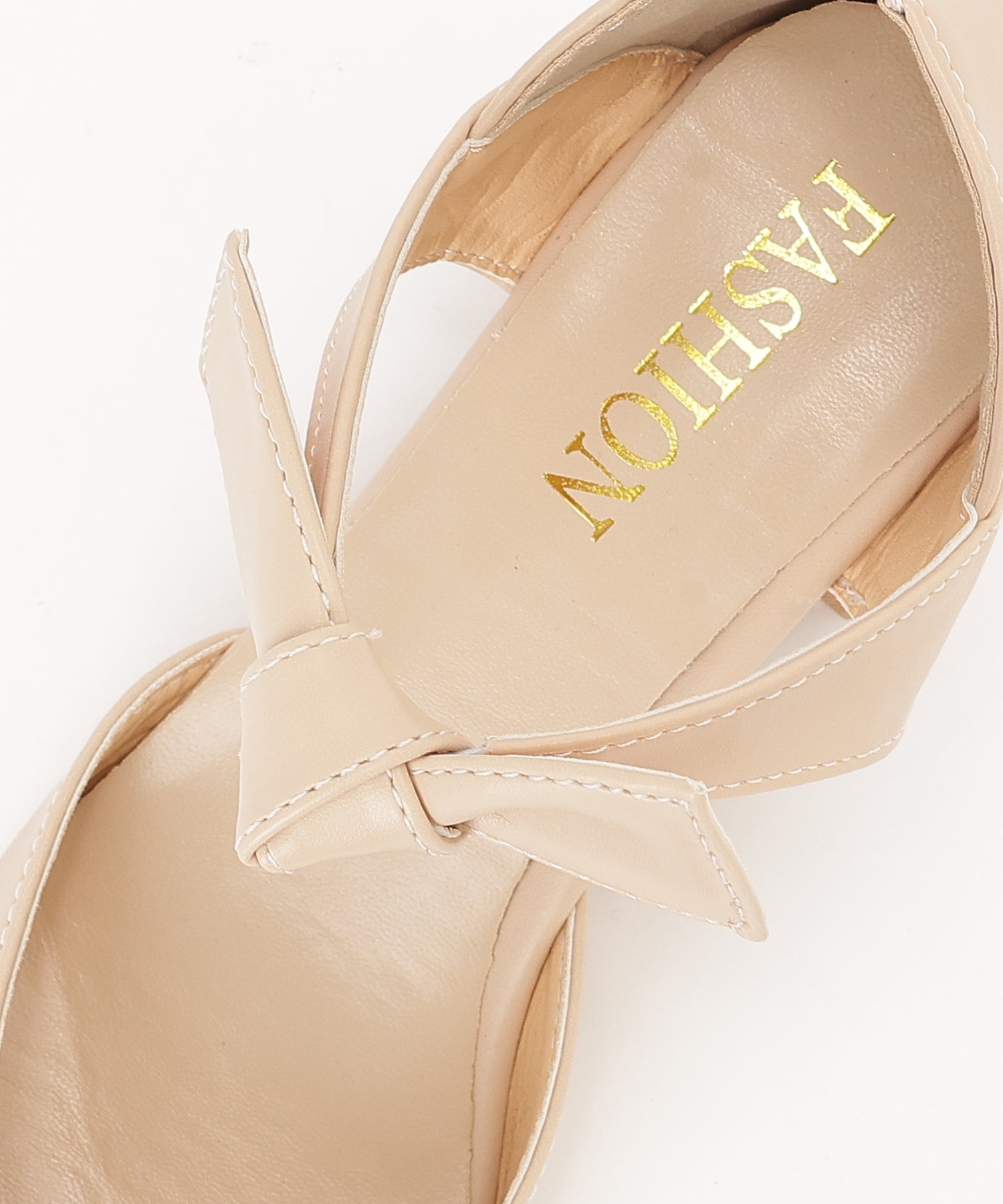 レザー調 リボン ストラップ ポインテッドトゥ ヒール パンプス