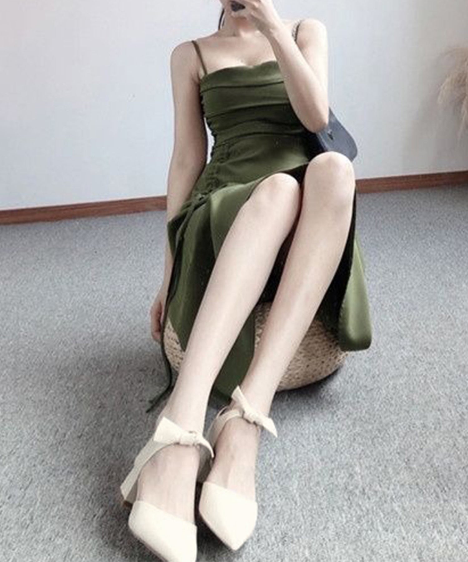 リボンストラップが大人可愛いヒールパンプス。