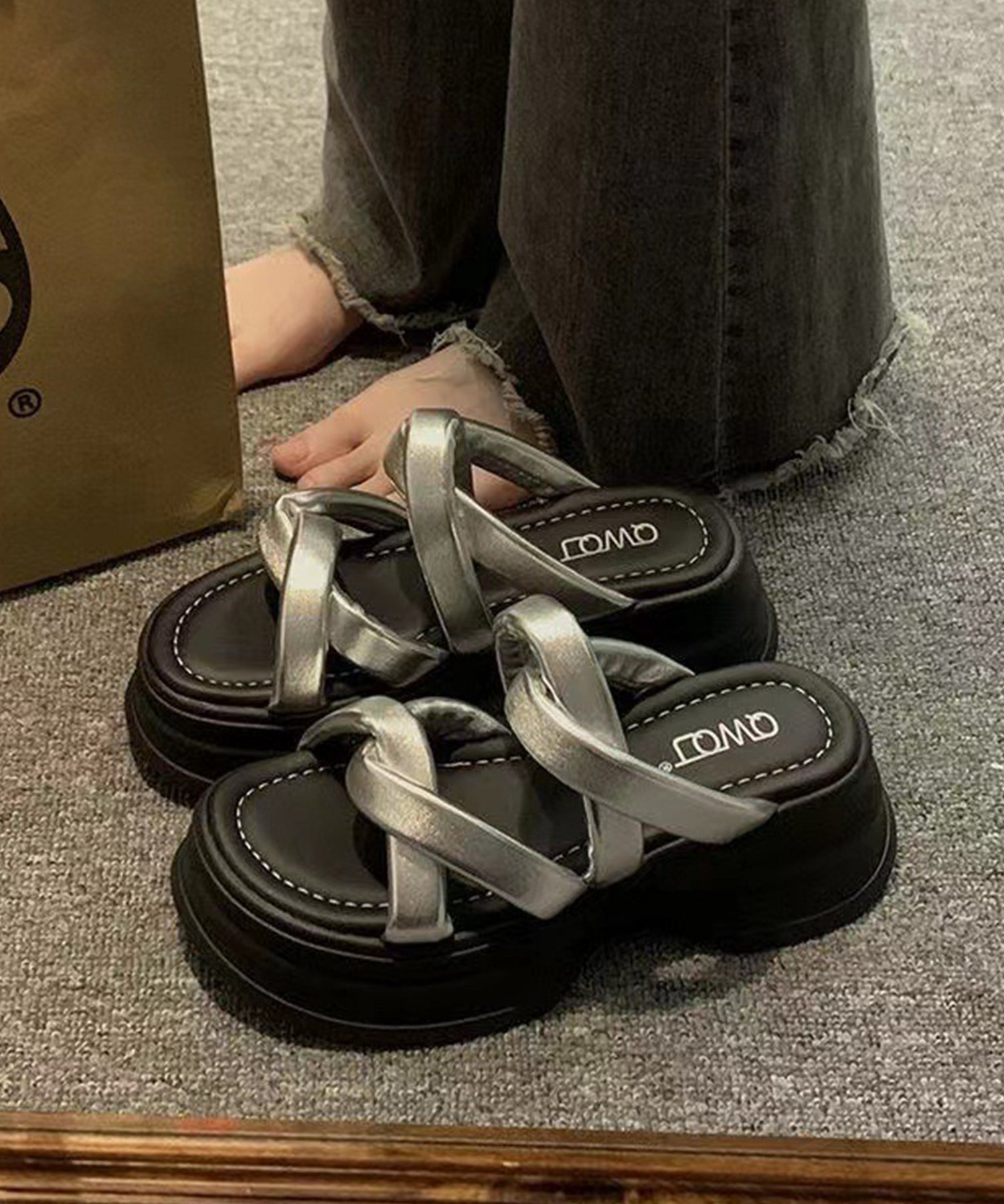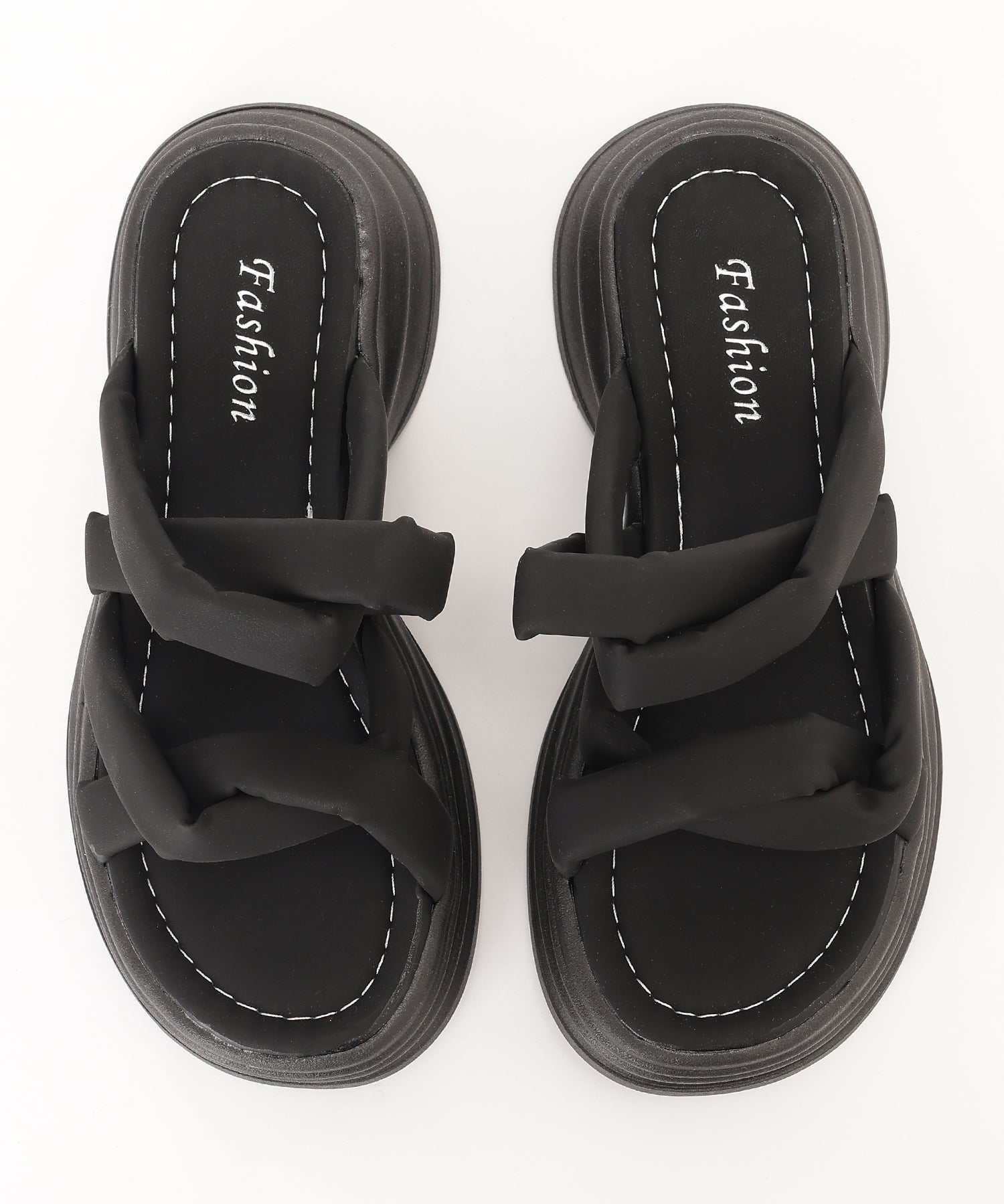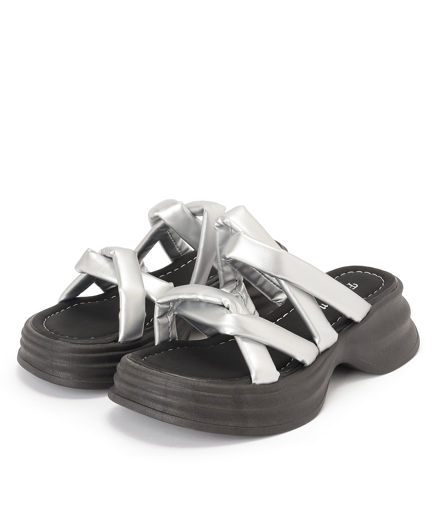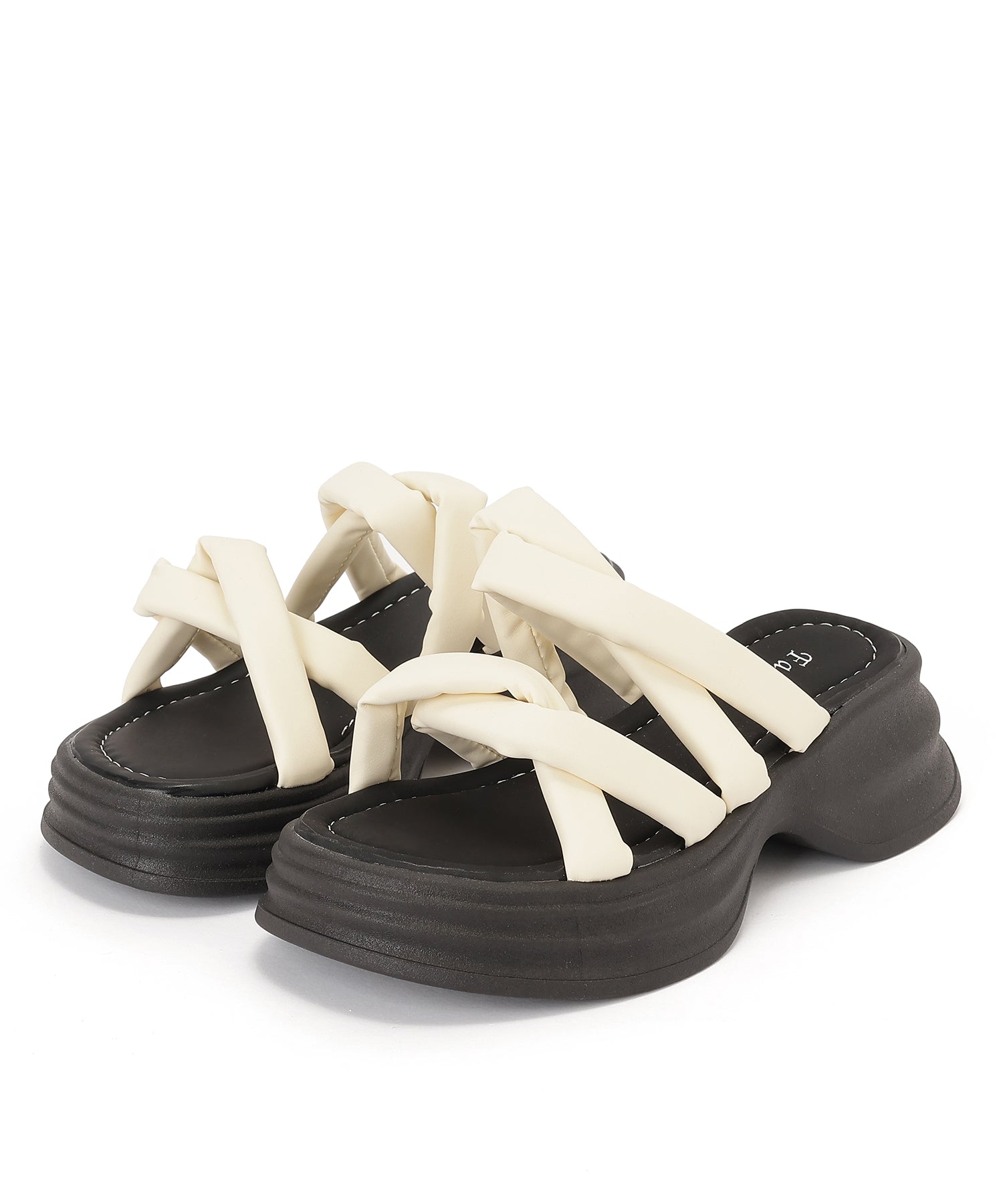 ツイスト クロスストラップ 厚底 スライド サンダル