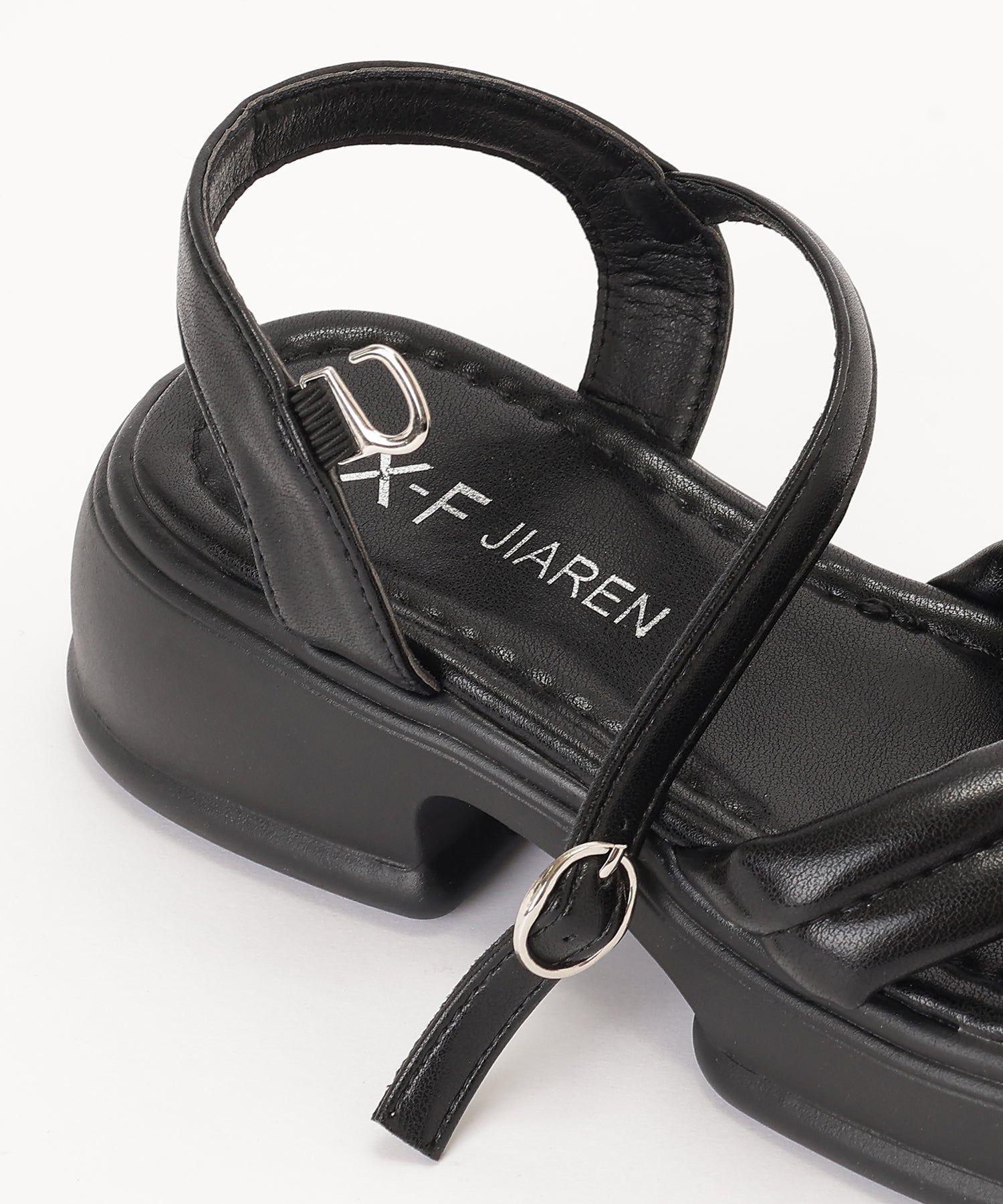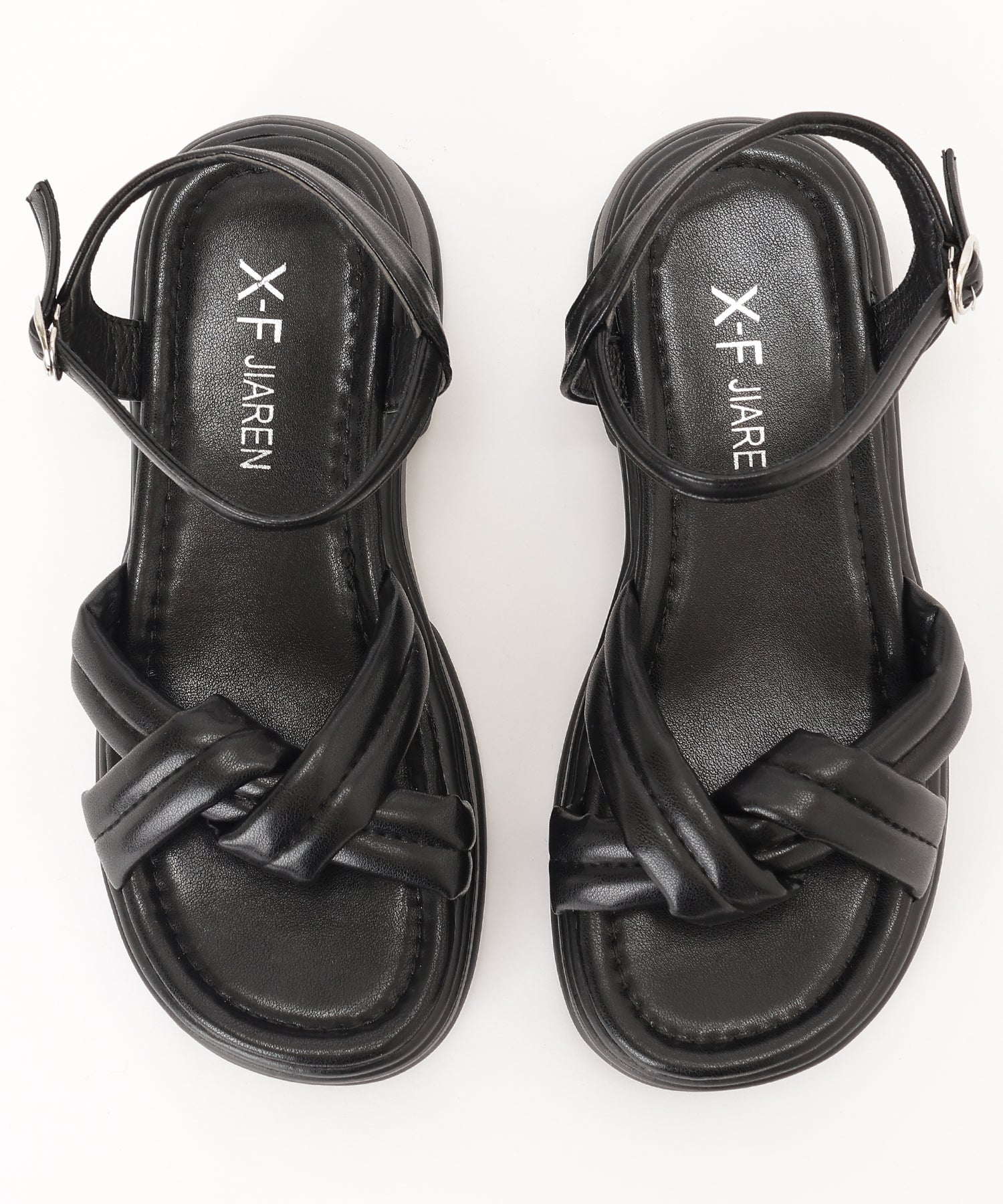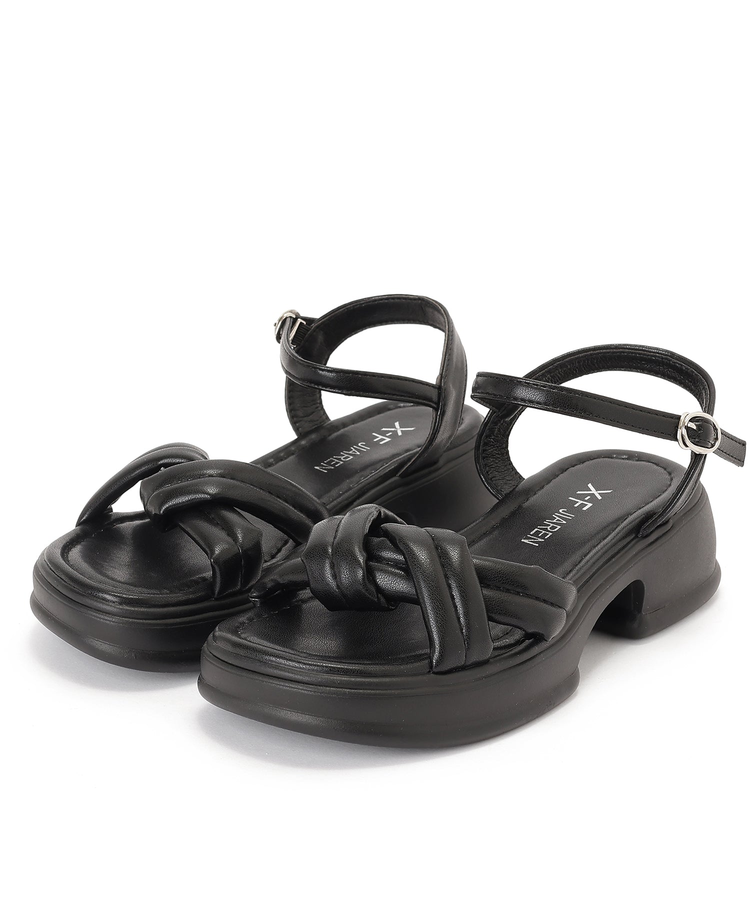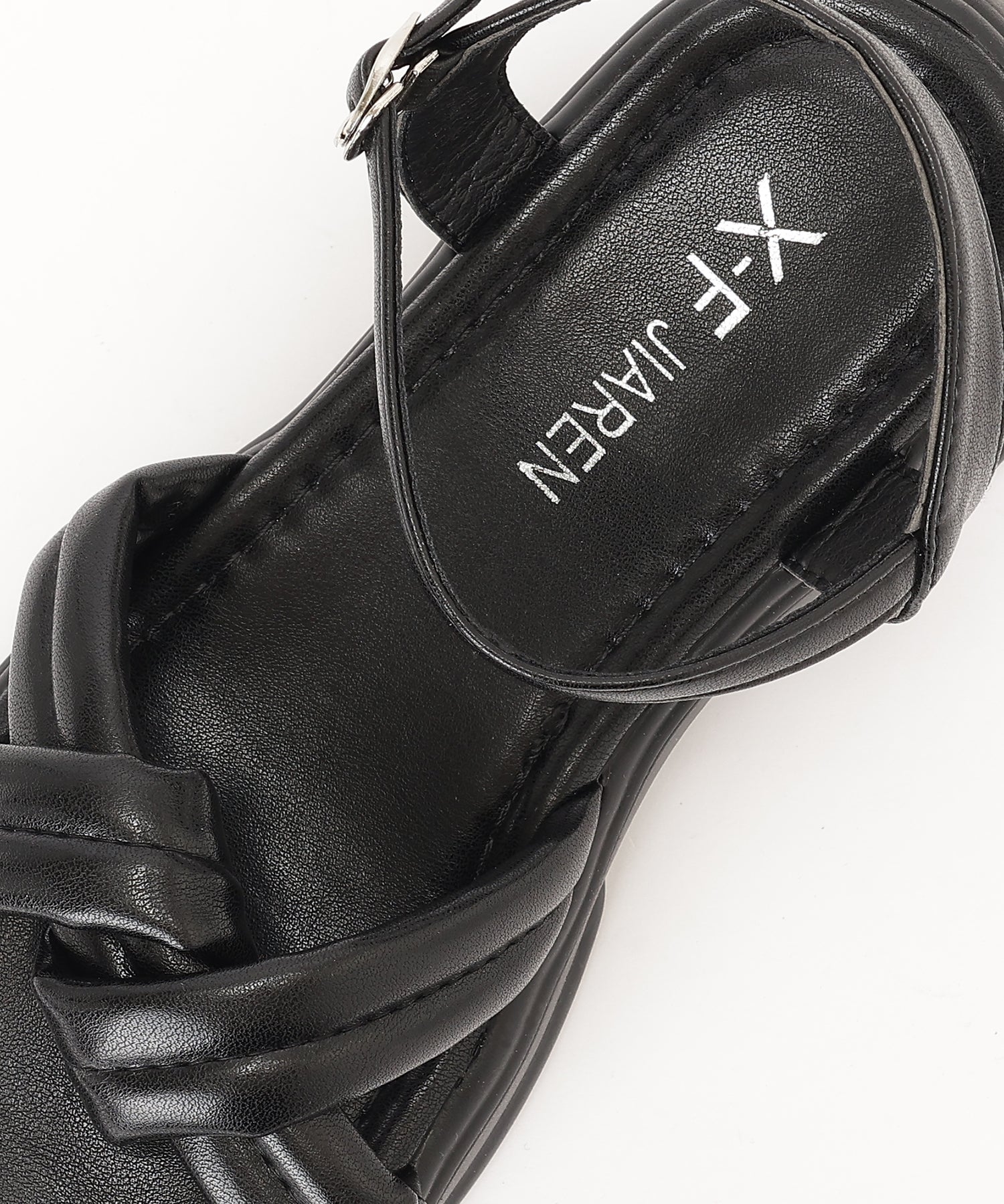 レザー調 ツイスト クロス ストラップ 厚底 プラットフォーム サンダル