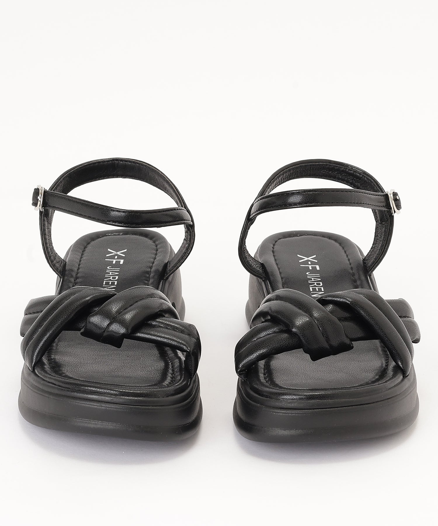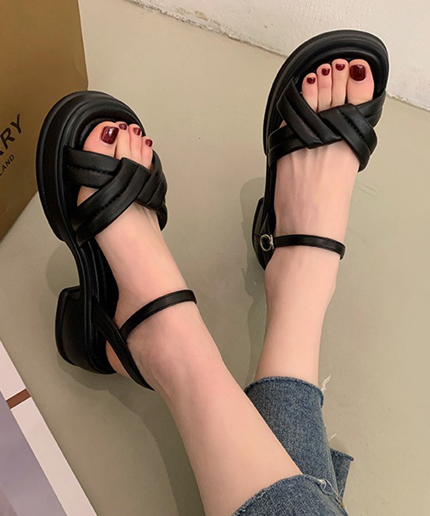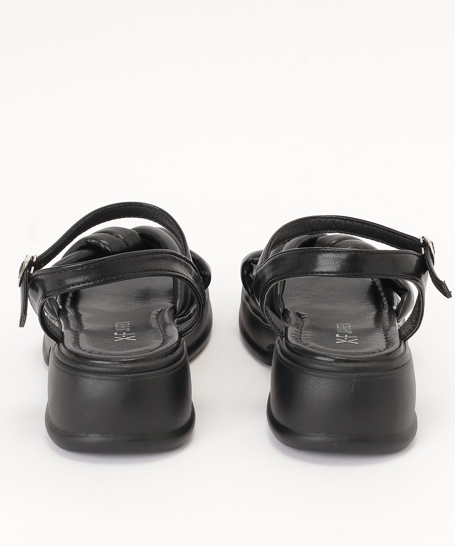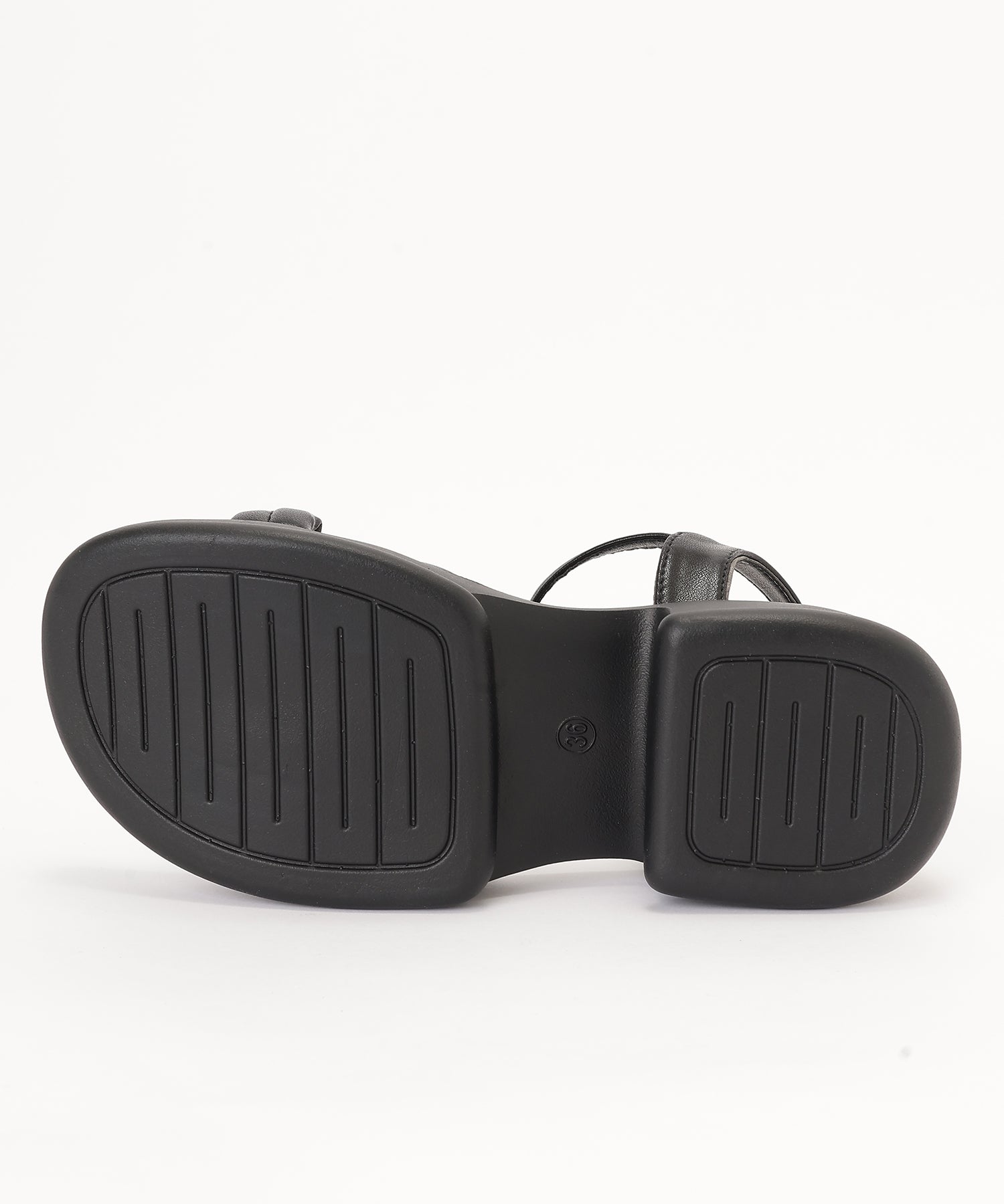 レザー調 ツイスト クロス ストラップ 厚底 プラットフォーム サンダル