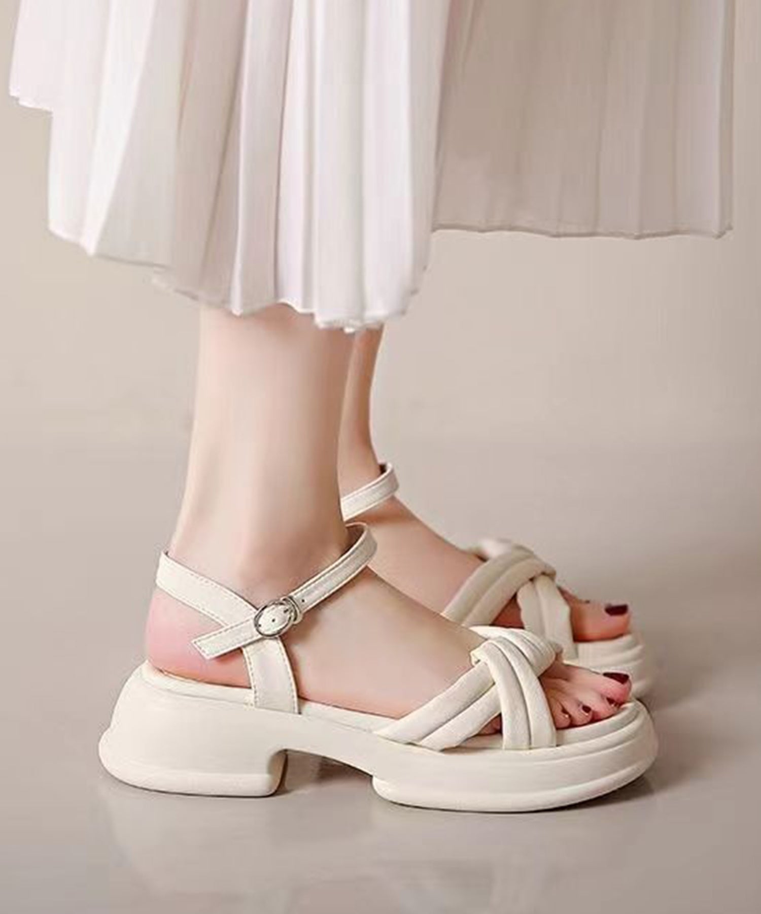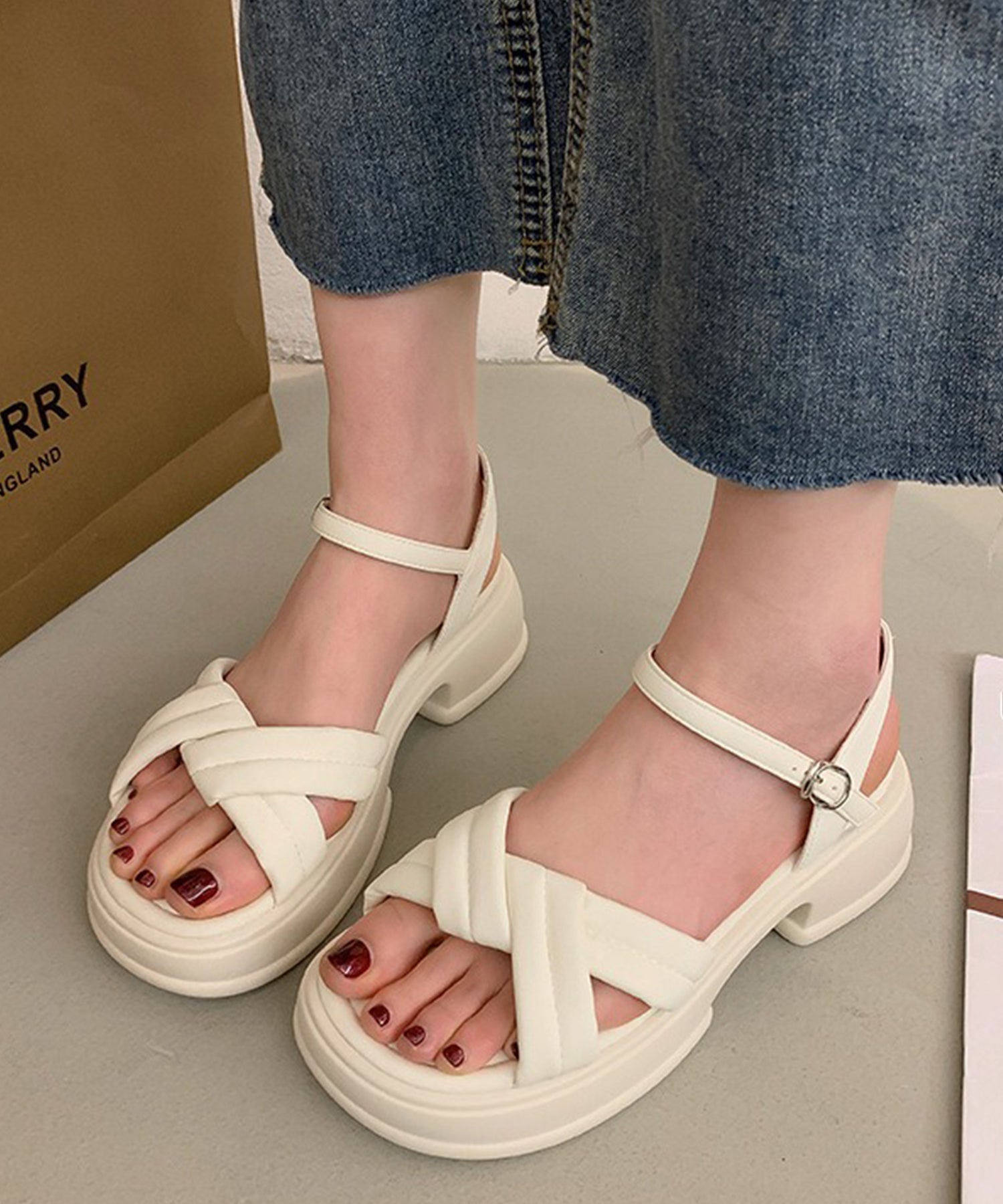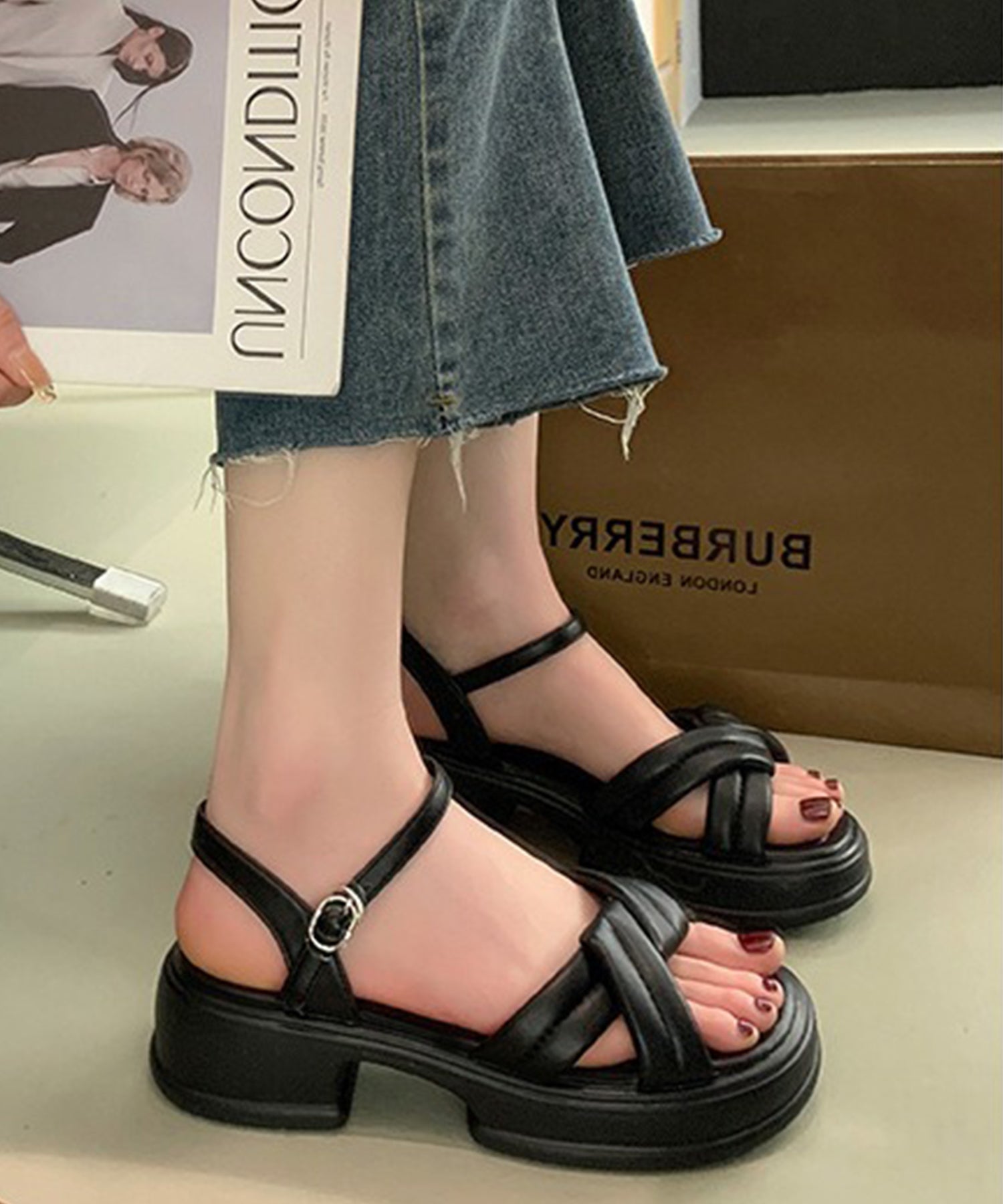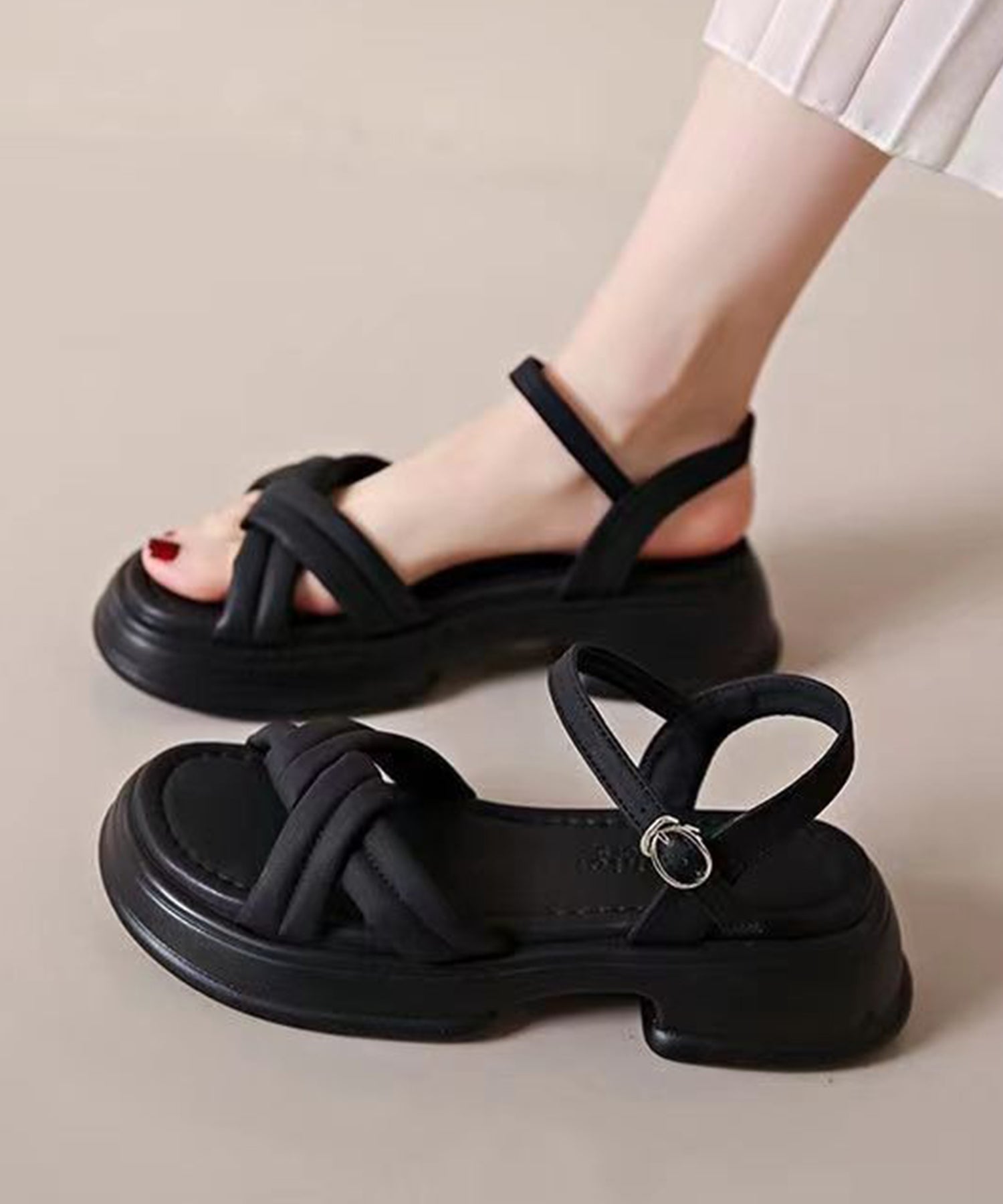 レザー調 ツイスト クロス ストラップ 厚底 プラットフォーム サンダル