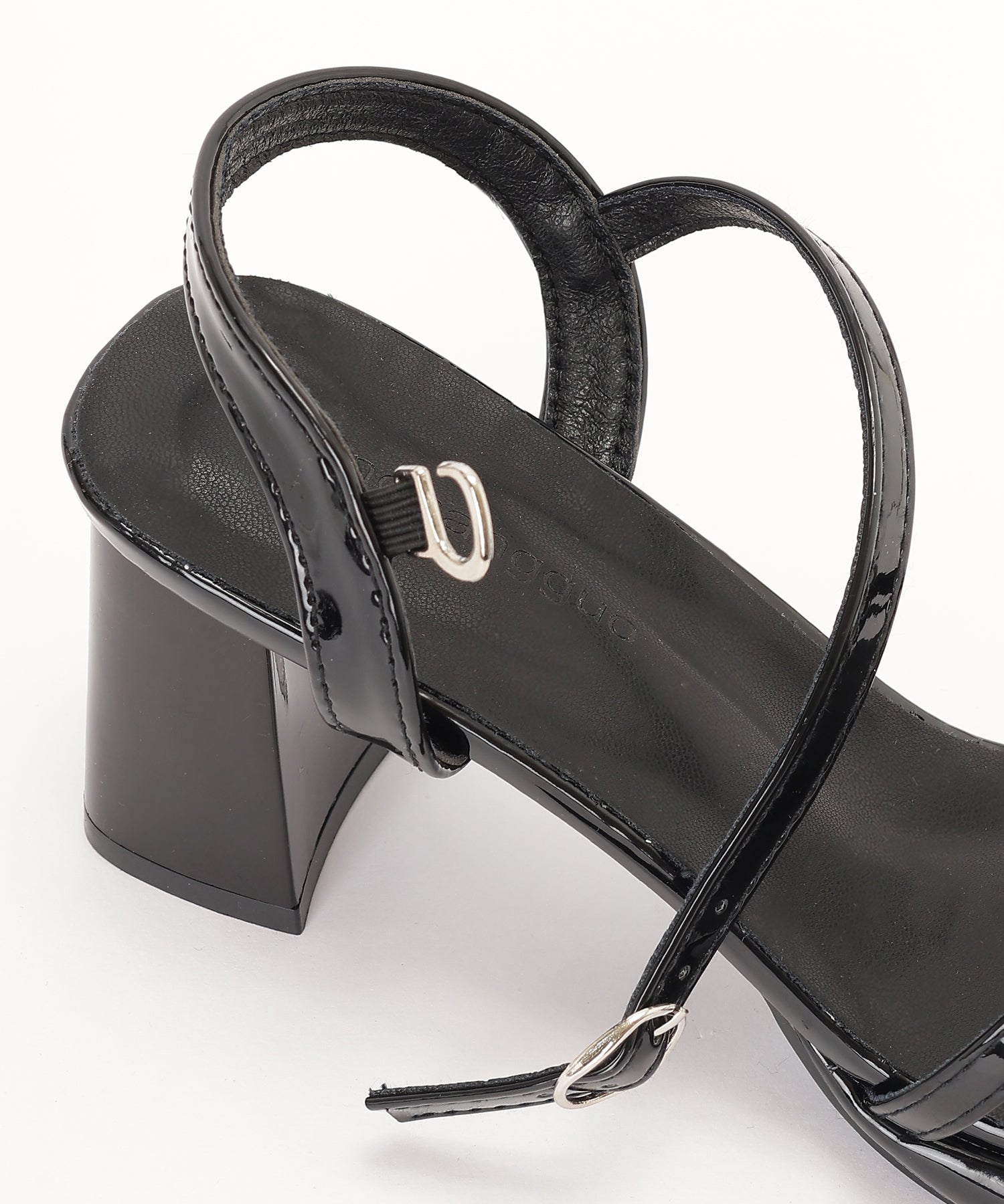 細めのストラップが足元をヌーディーに演出するレザー調サンダル。