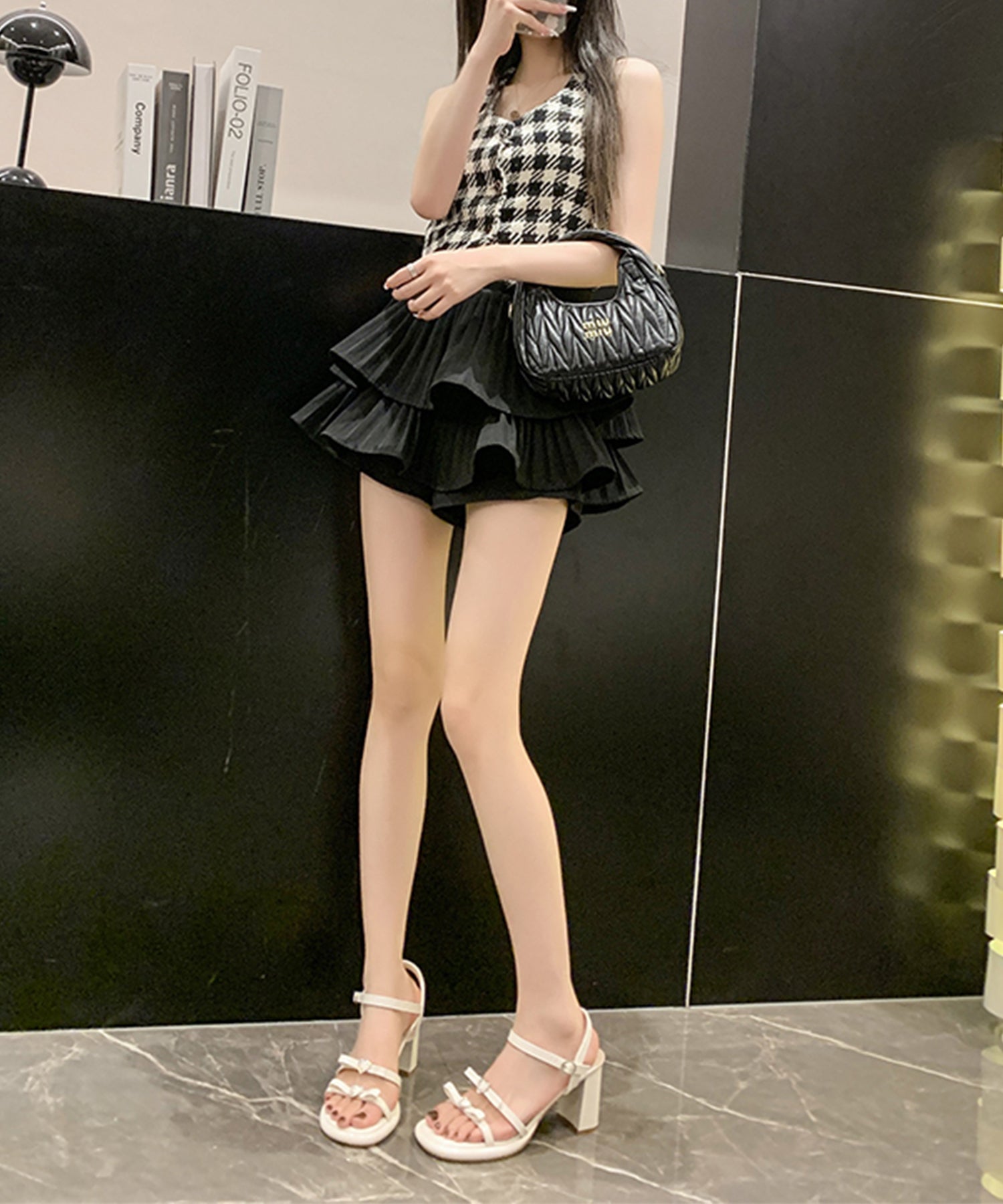 脚長効果抜群のハイヒールもチャンキータイプで安定感があり、歩く姿を軽快に。