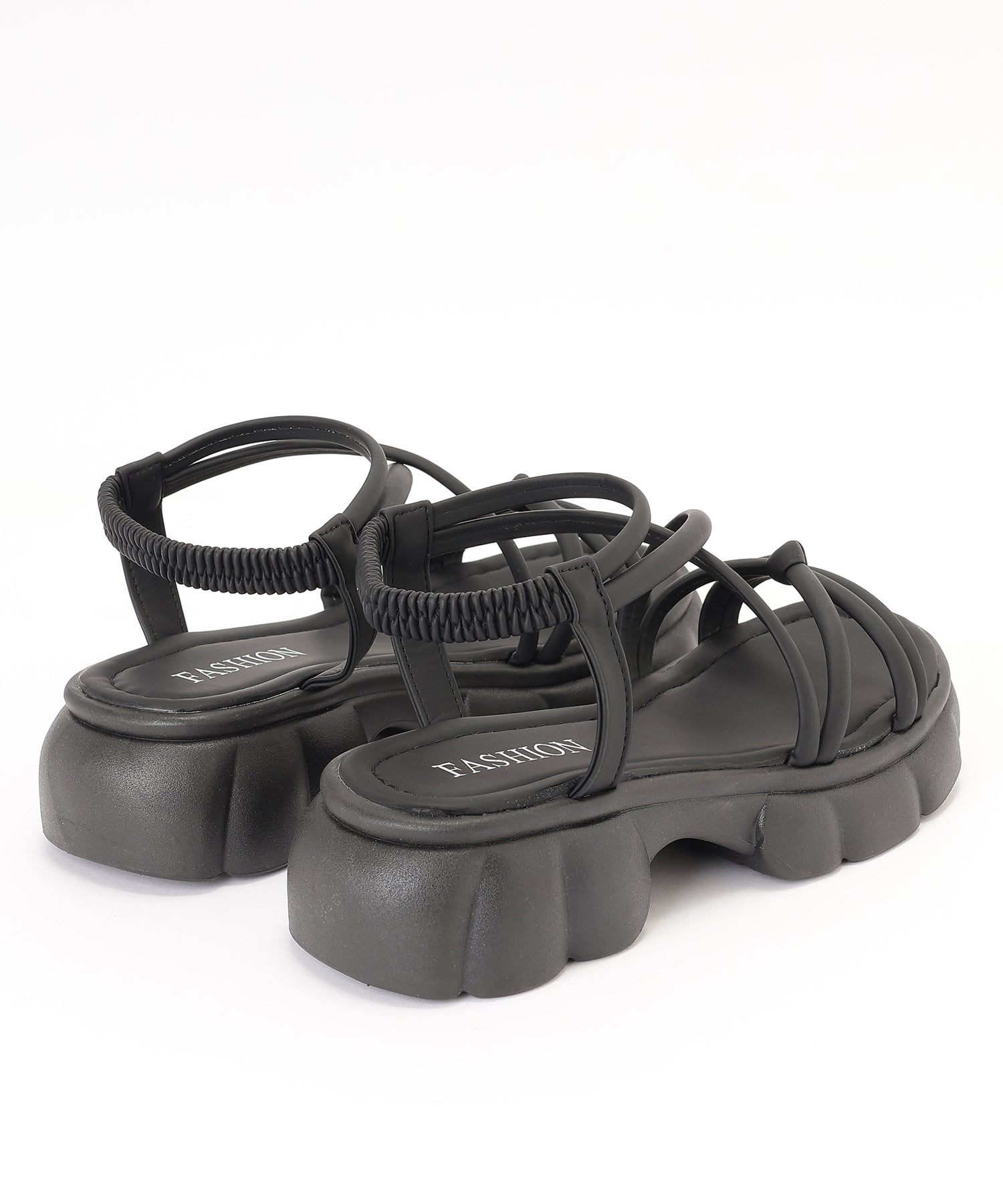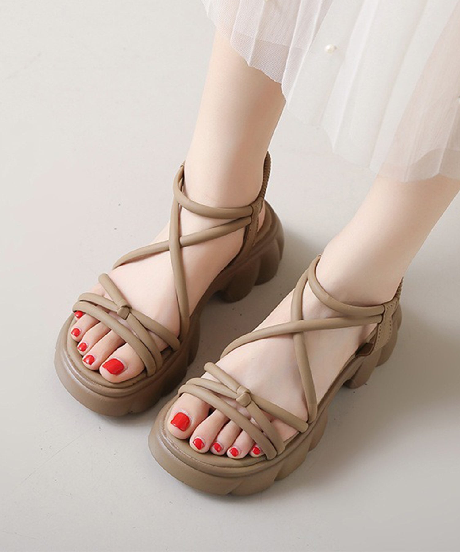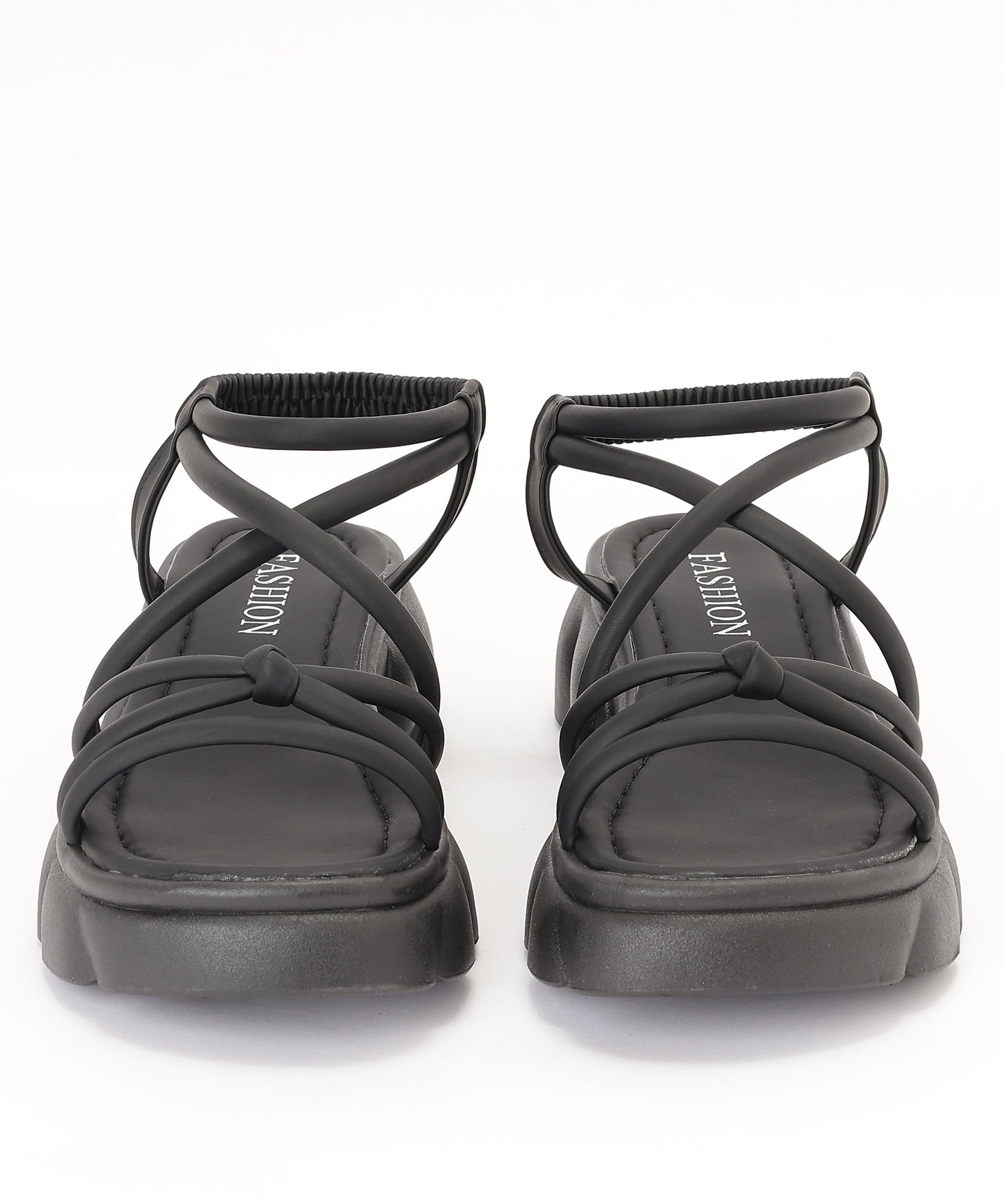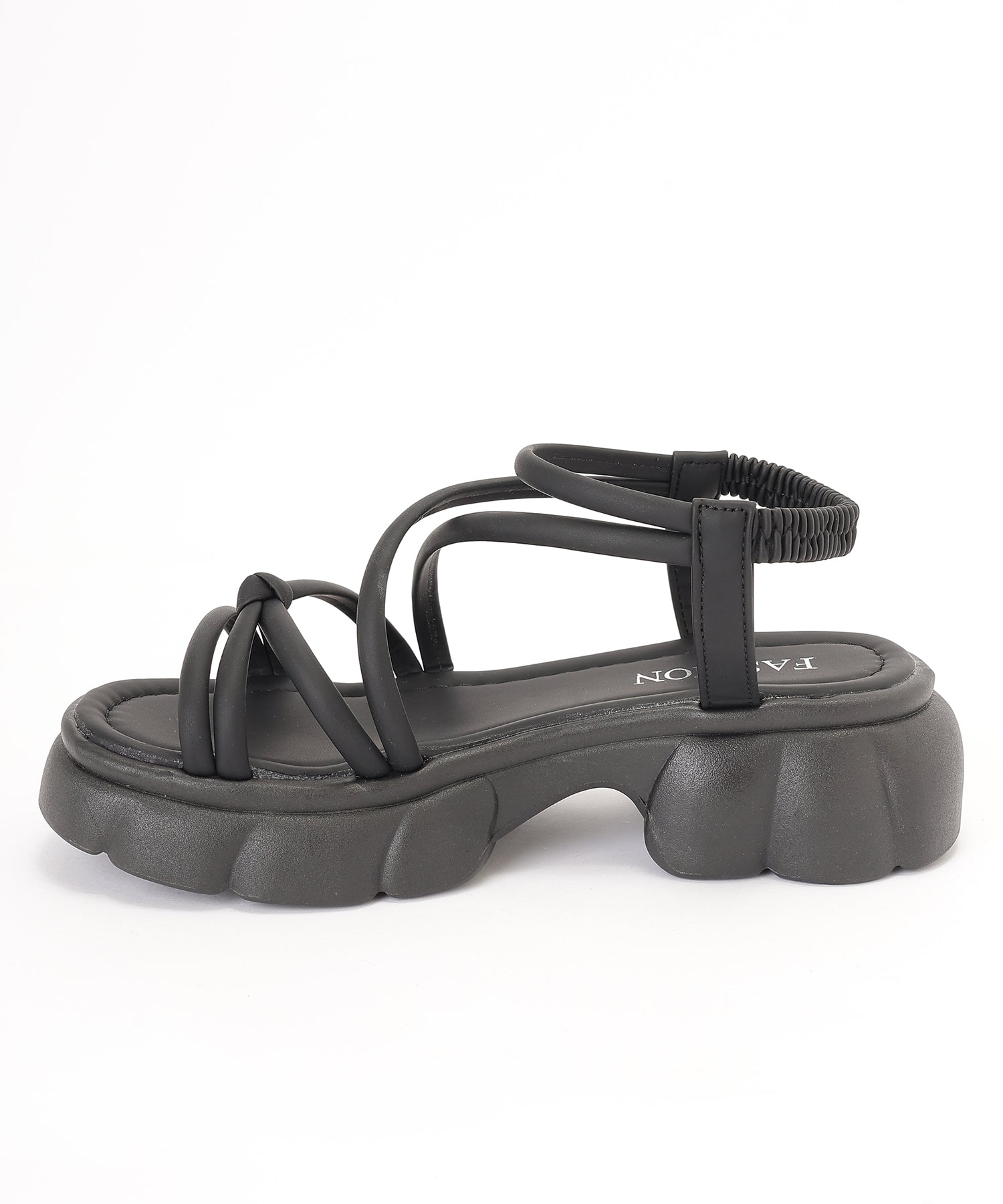 レザー調 チューブ クロス ストラップ 厚底 サンダル