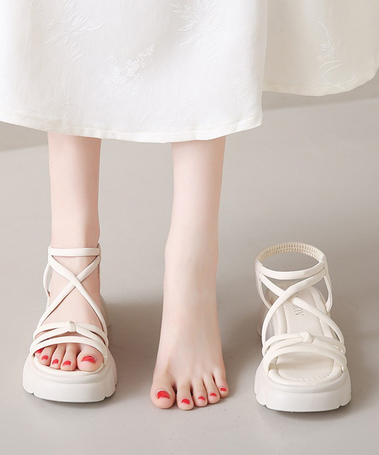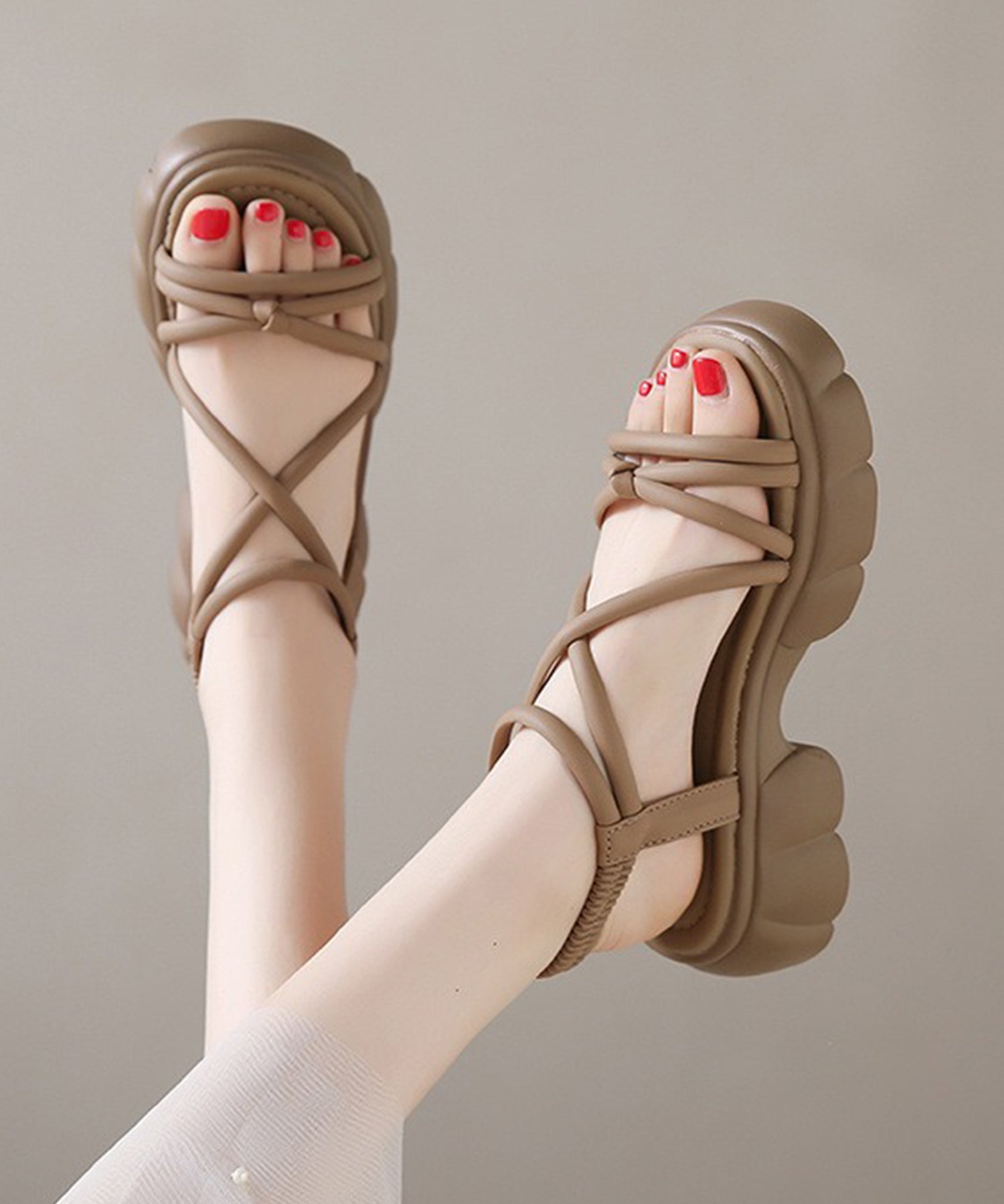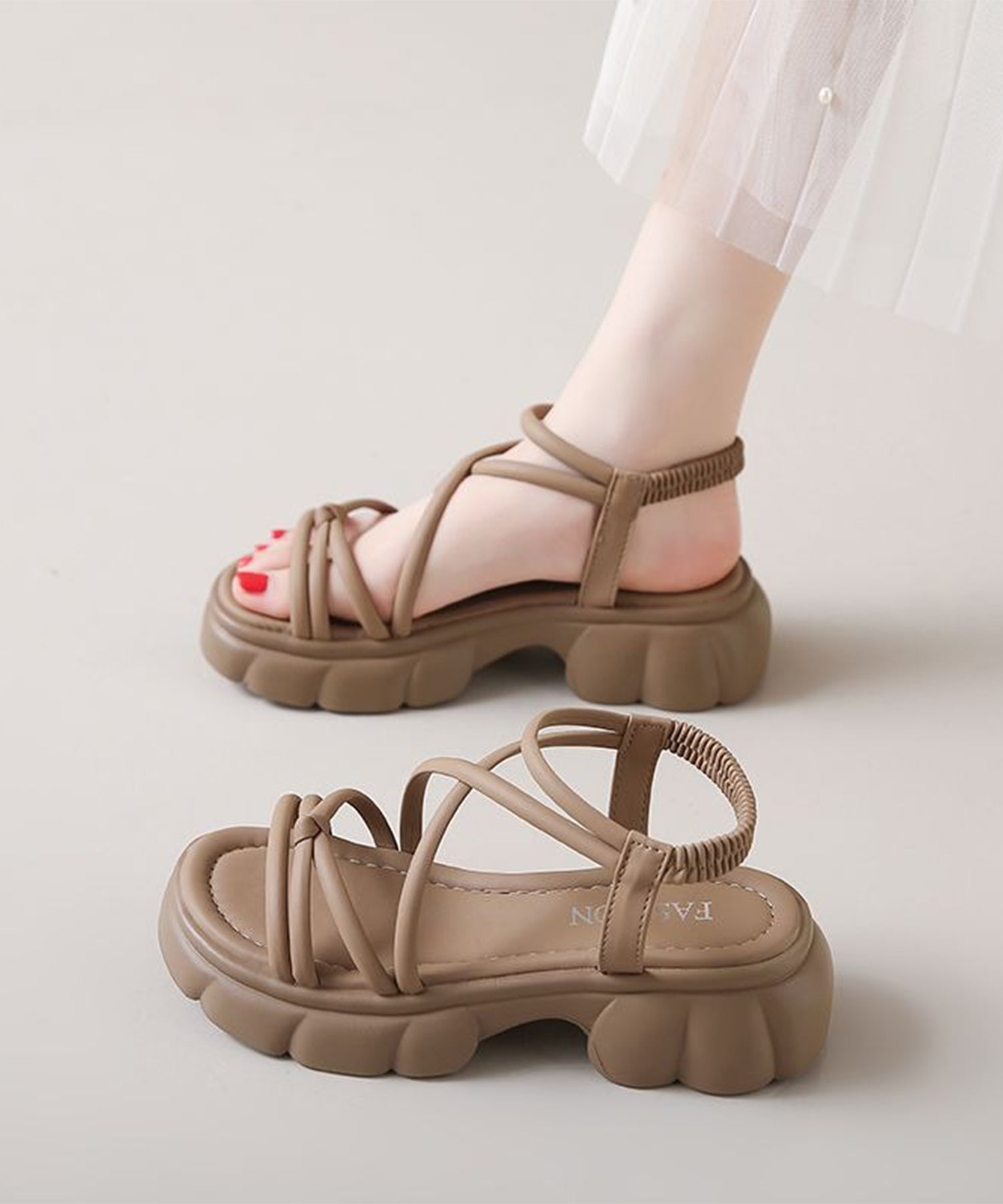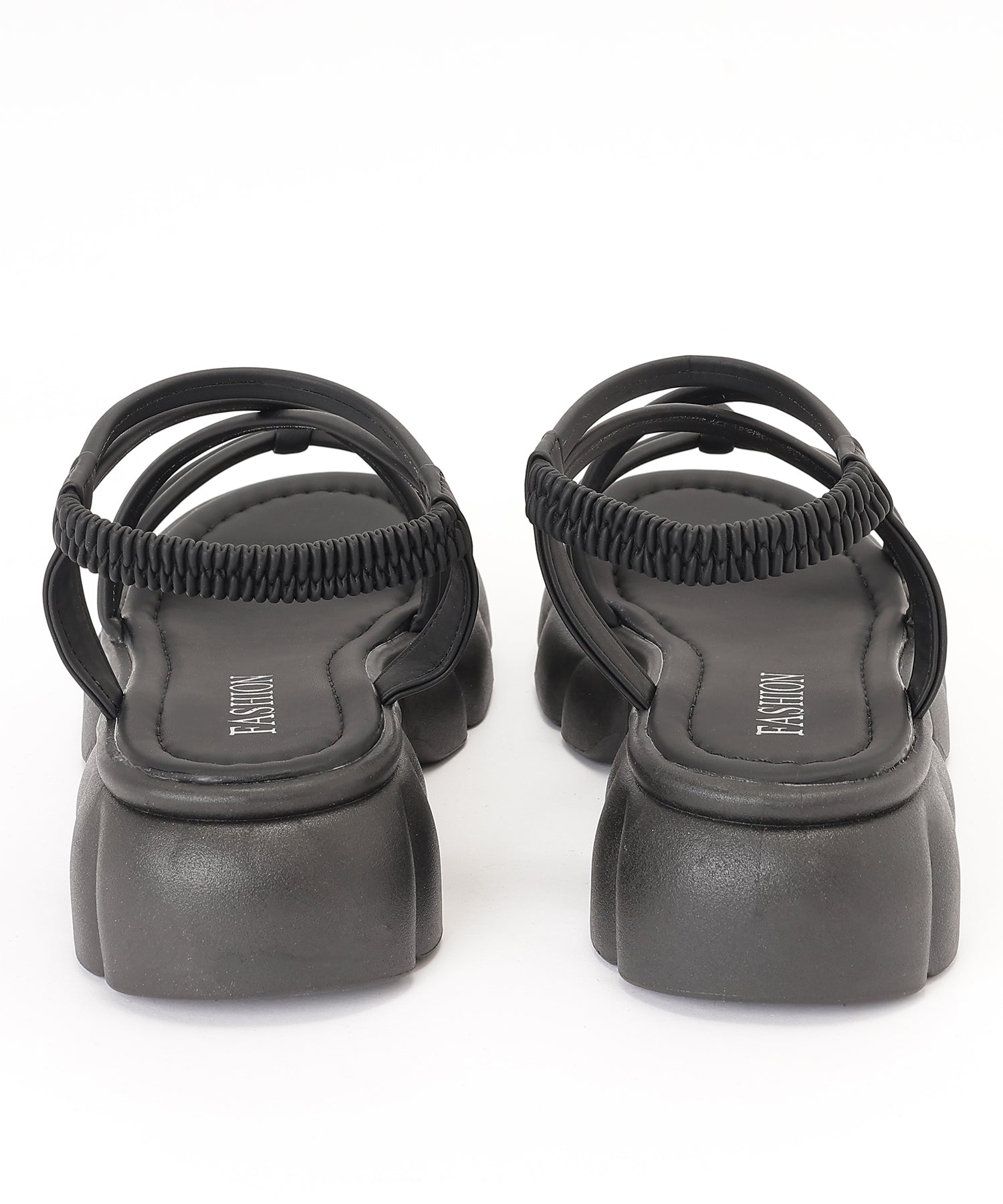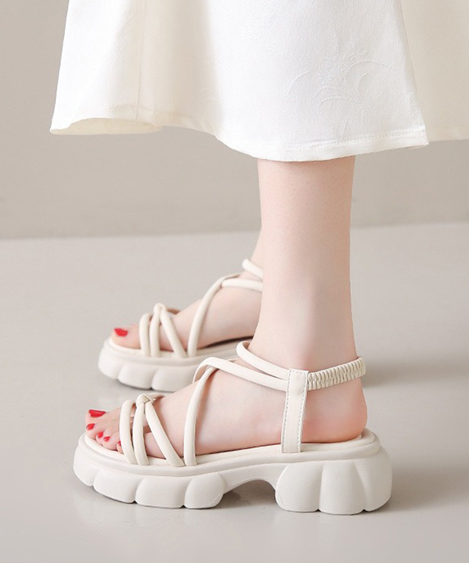 レザー調 チューブ クロス ストラップ 厚底 サンダル