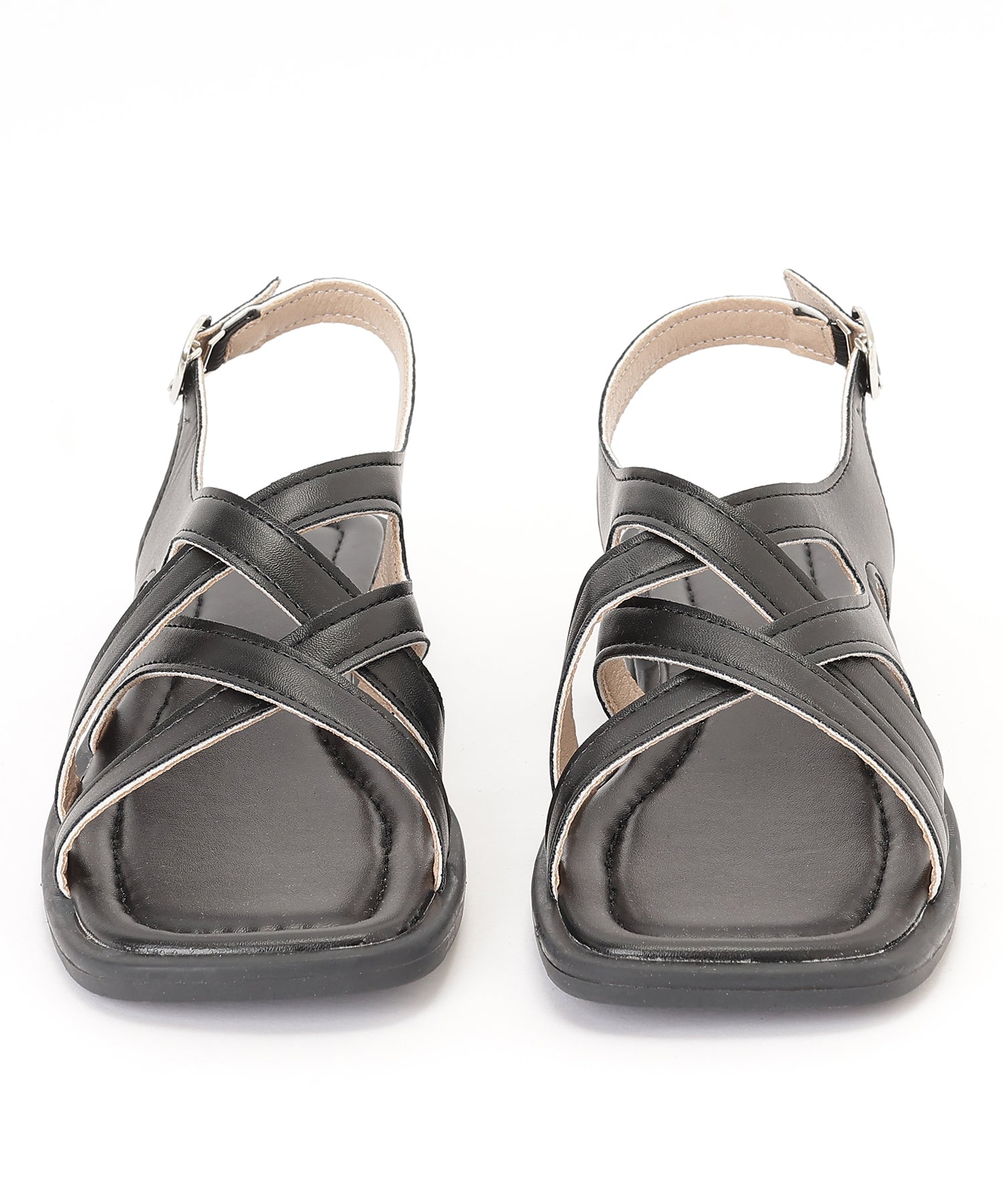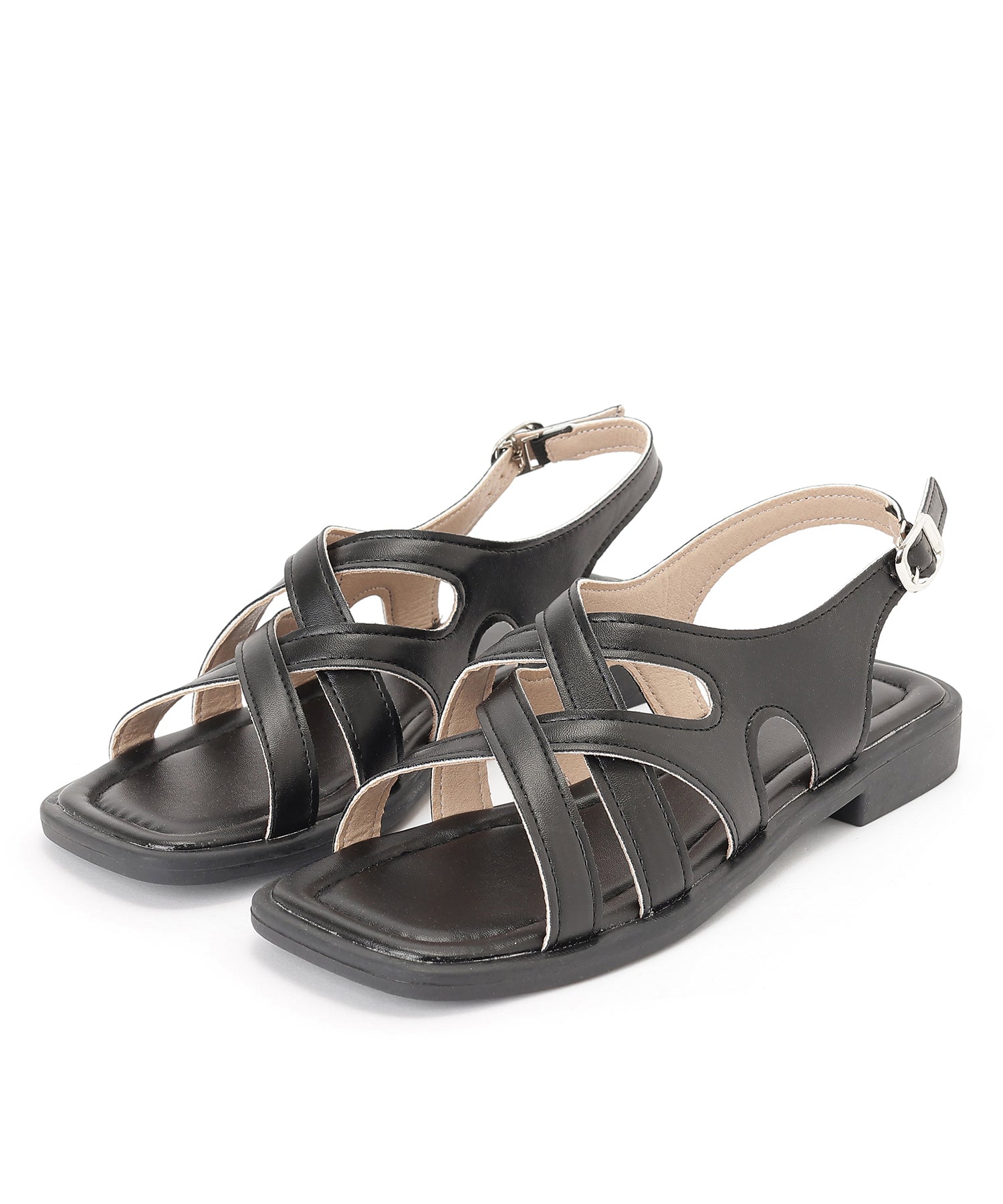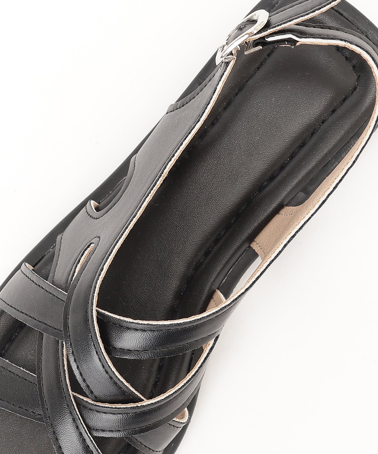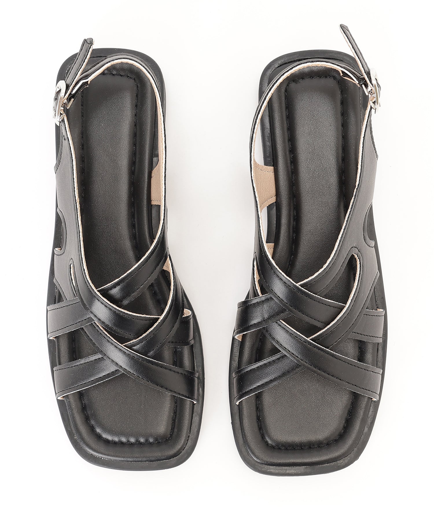 やや幅広のクロスストラップでカジュアル感をプラスしたサンダル。