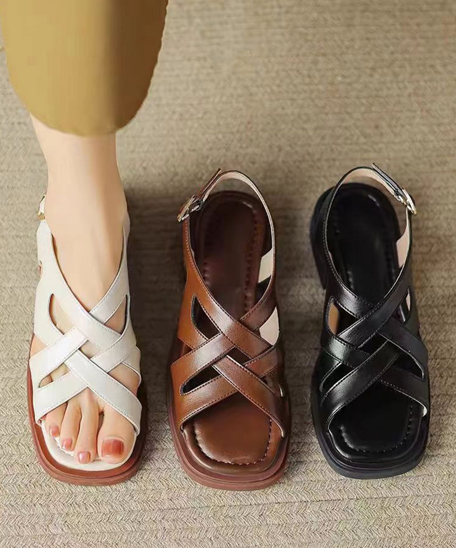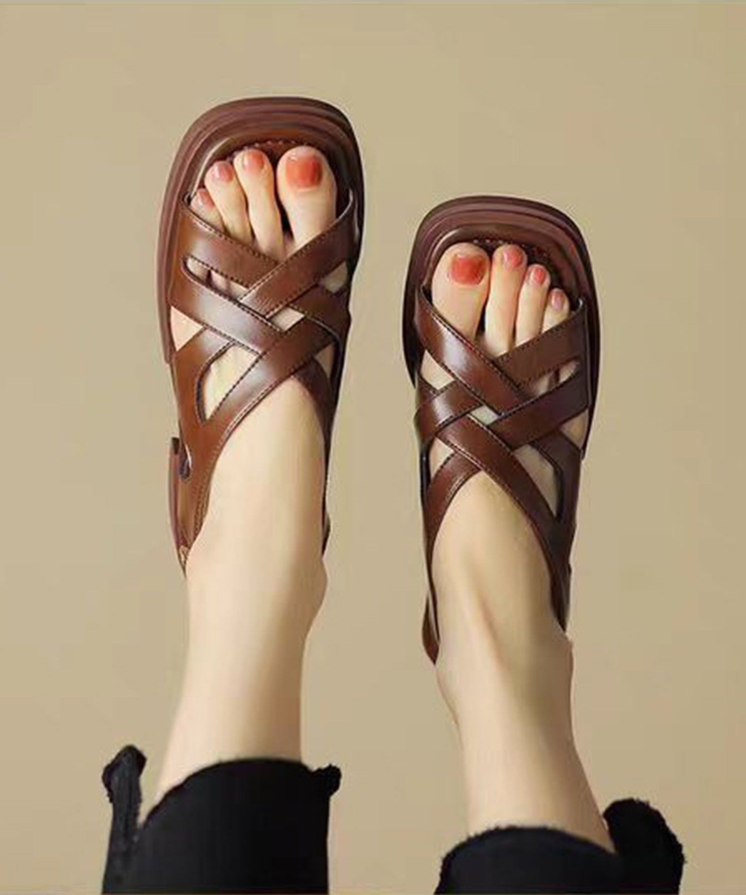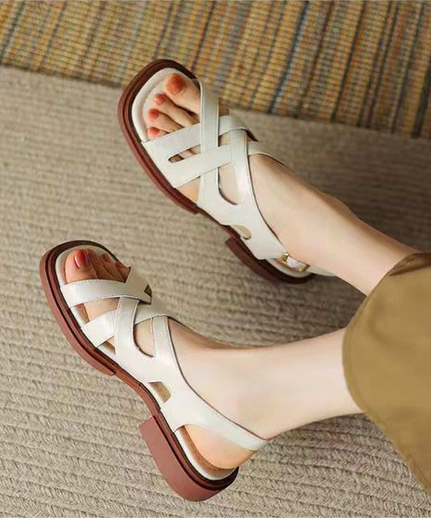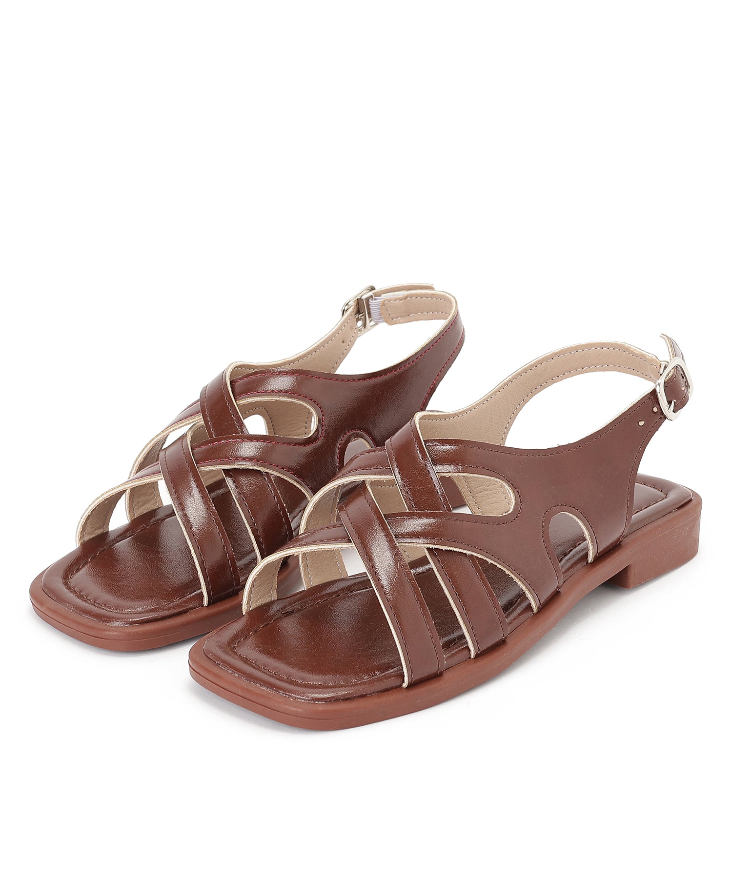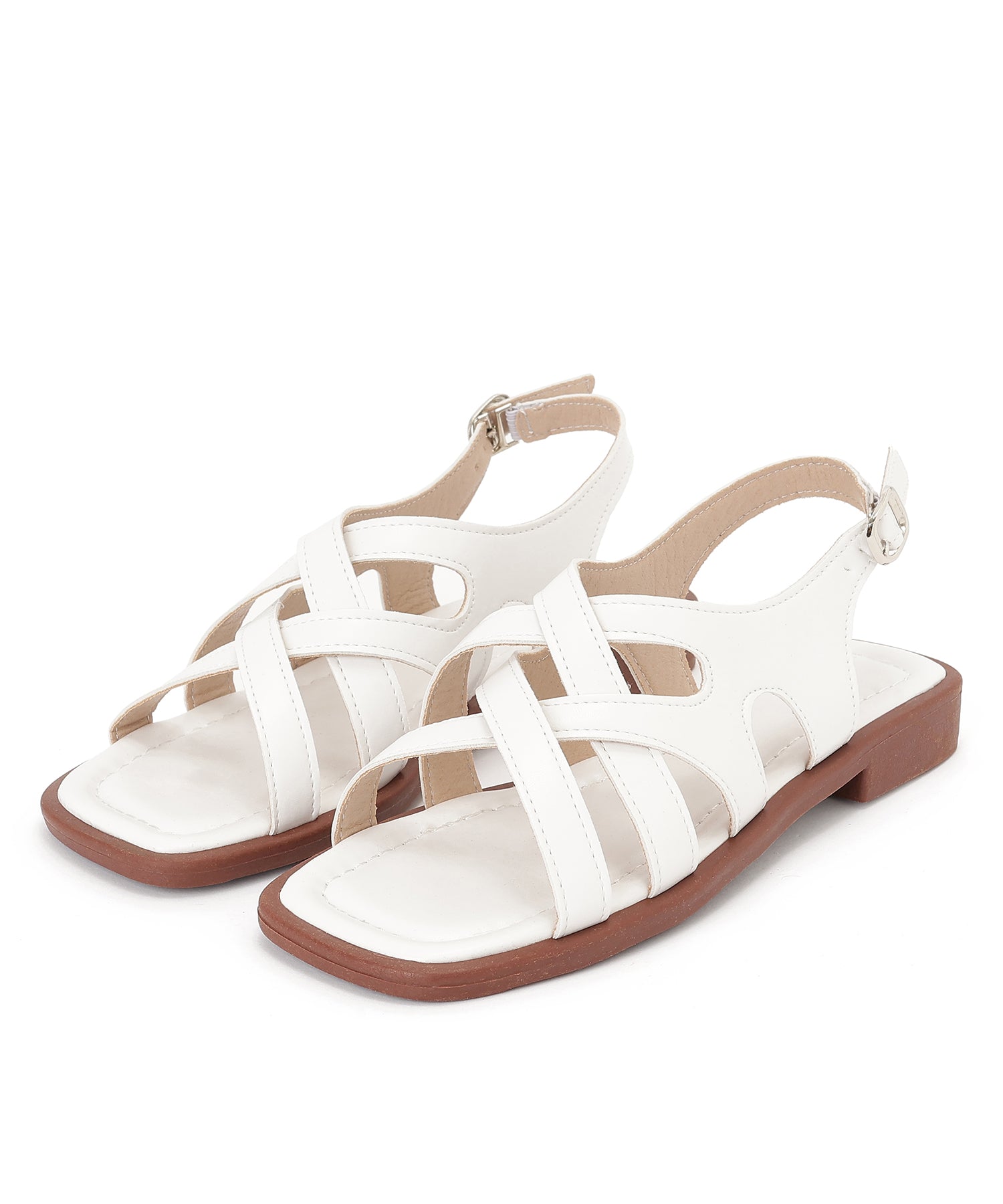 やや幅広のクロスストラップでカジュアル感をプラスしたサンダル。