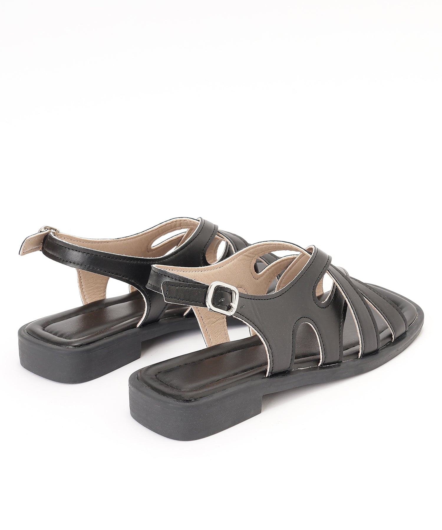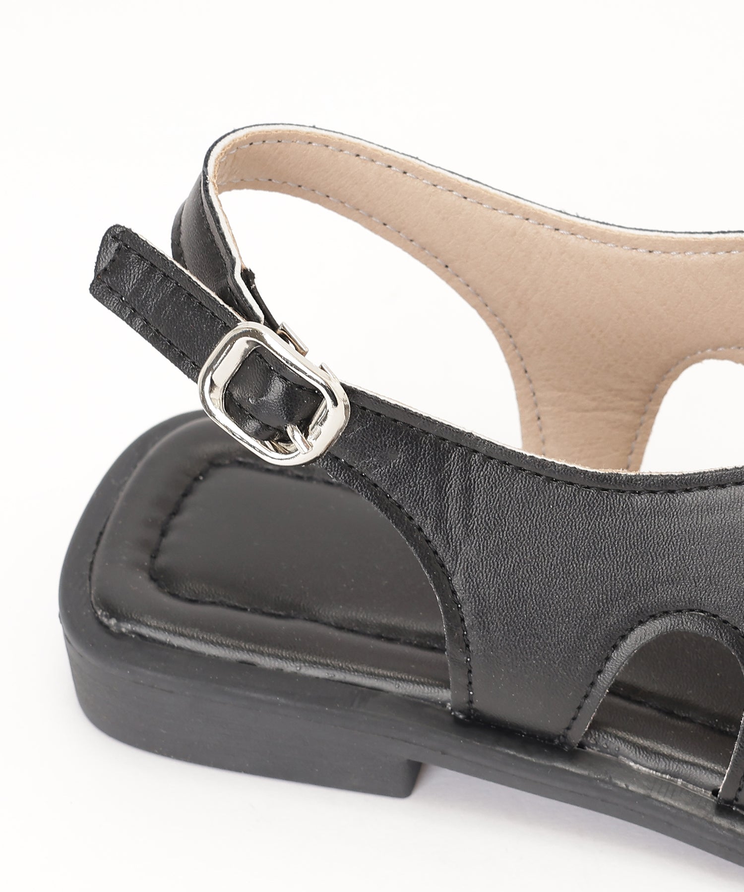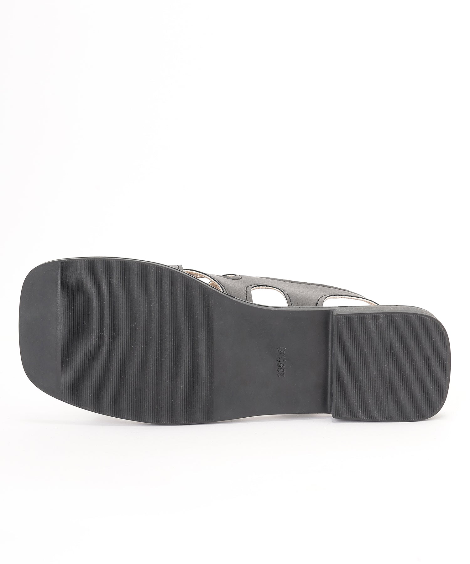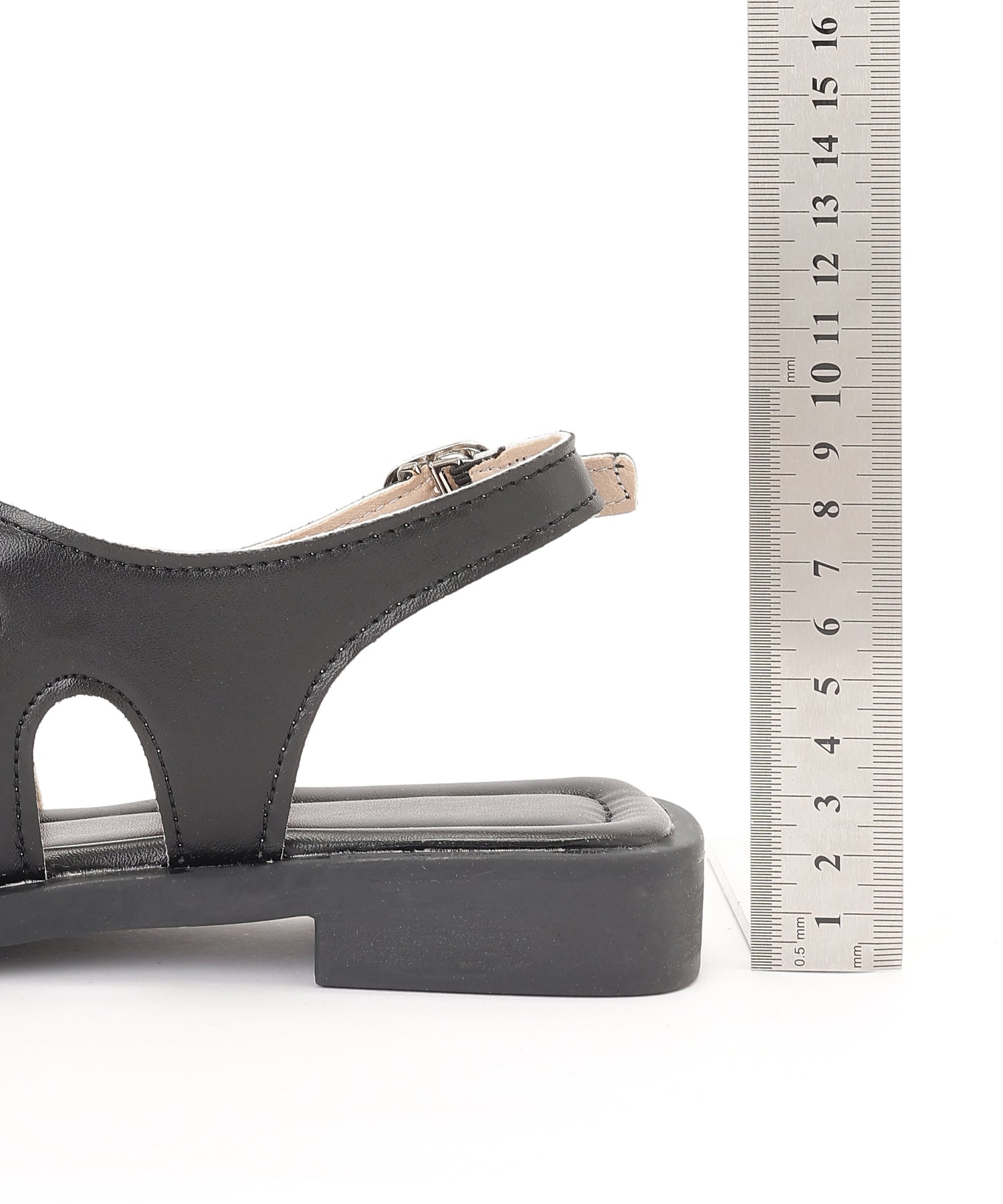 バックストラップが足をホールドしてくれるため脱げることなく、低めのフラットソールで長時間のおでかけもストレスフリー。