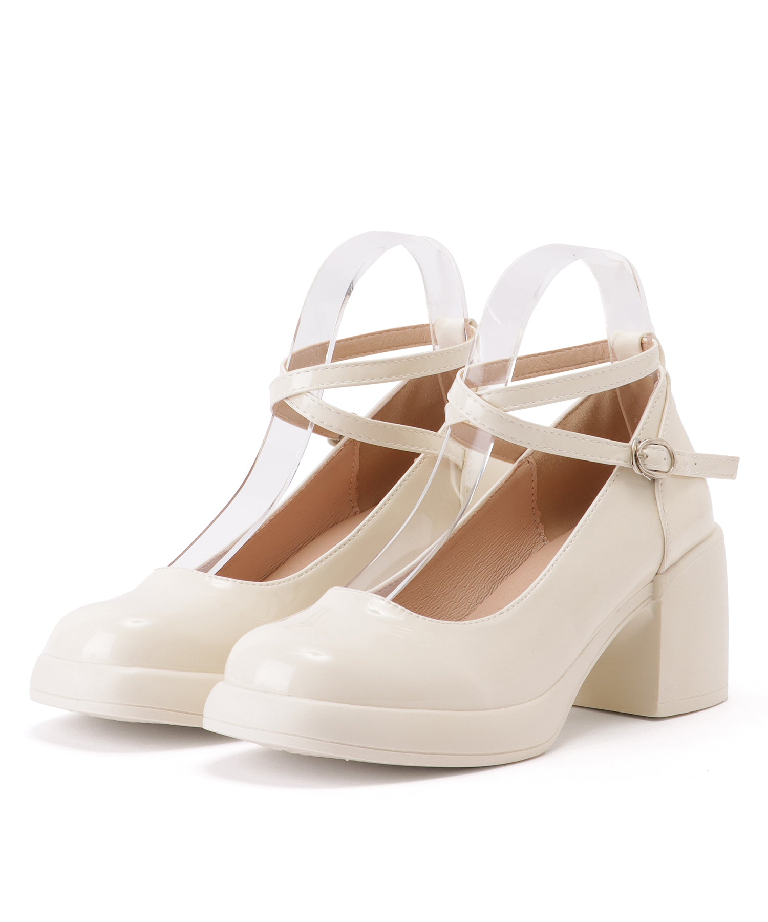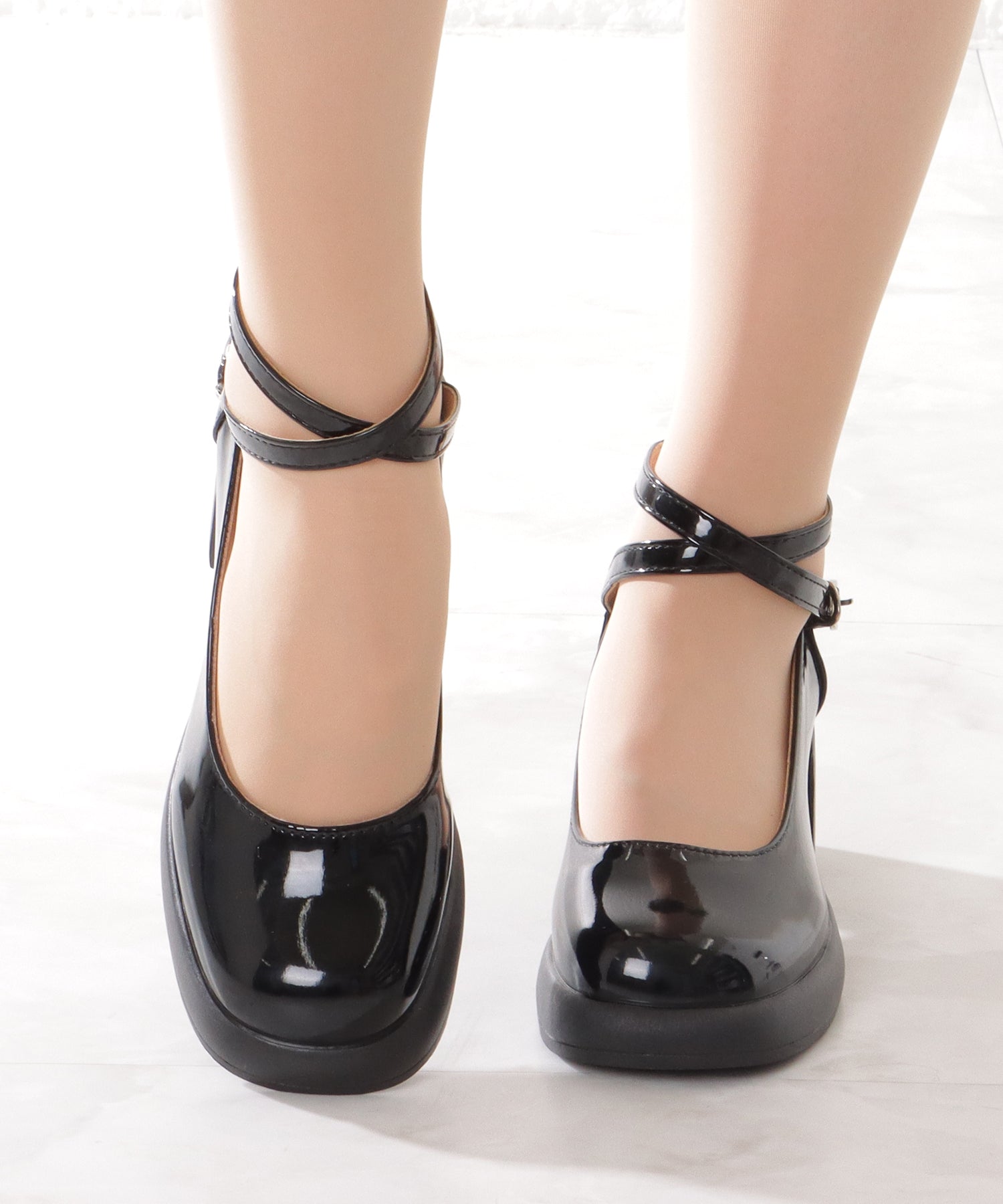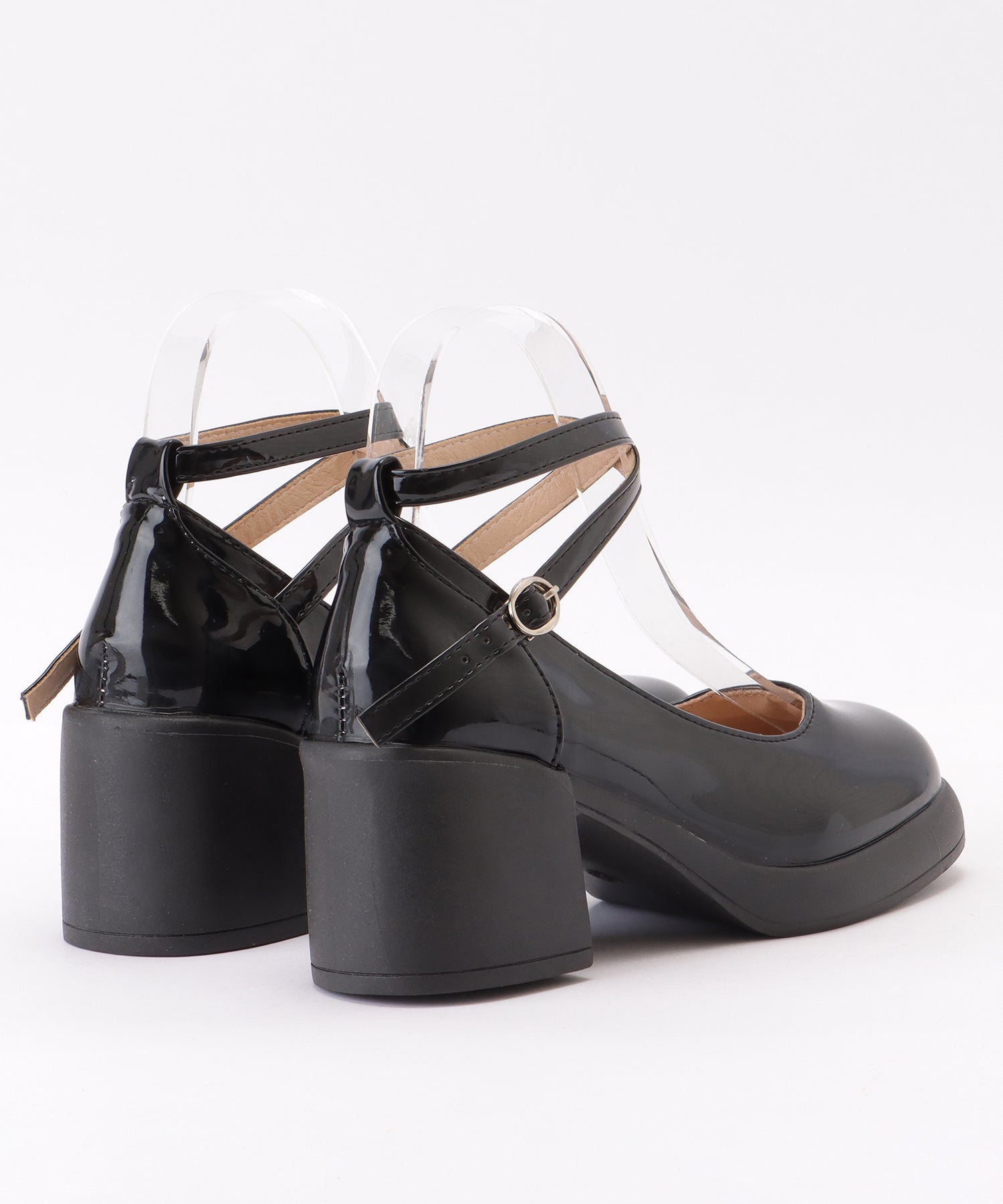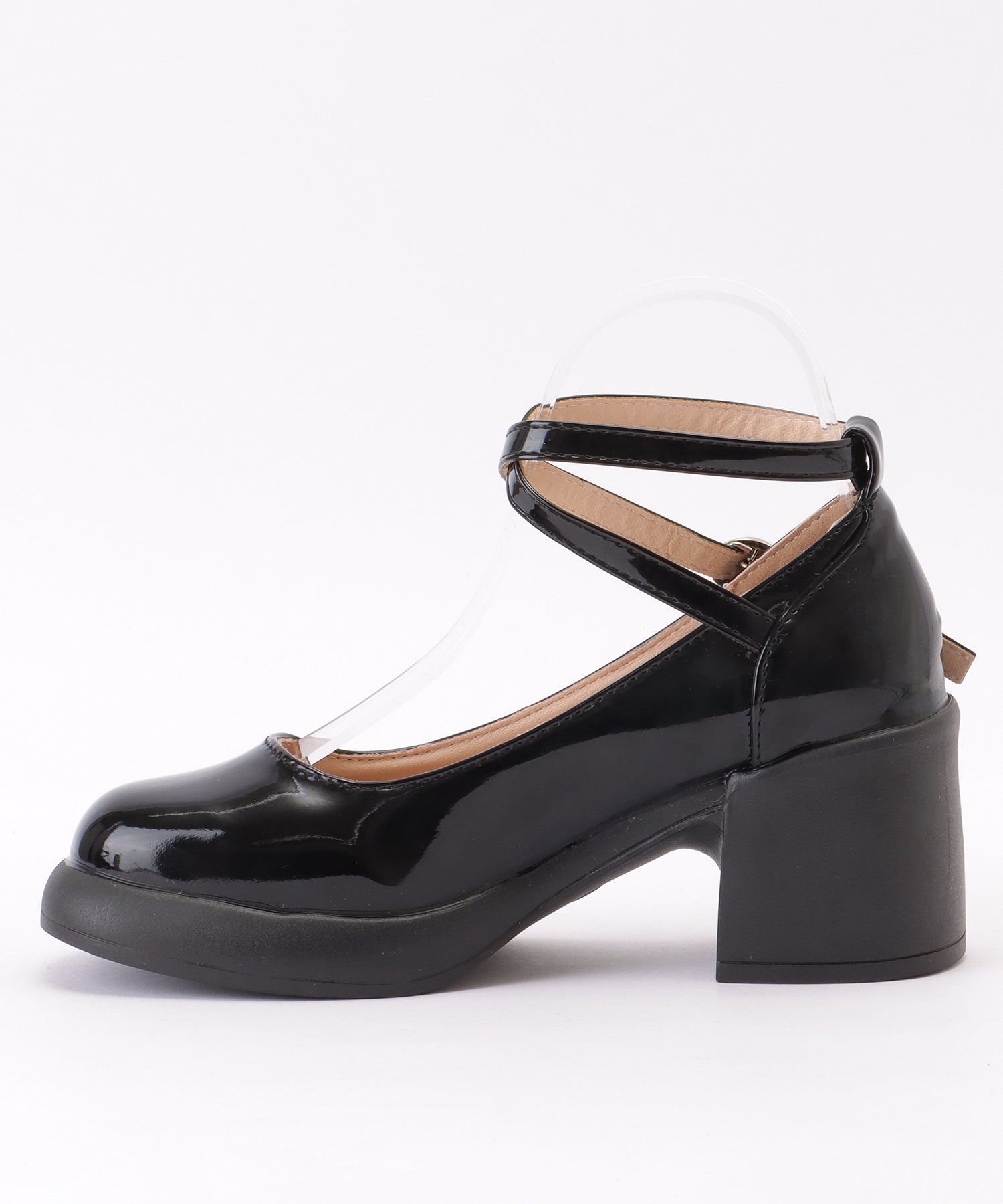 レザー調 厚底 ストラップ ボリューム パンプス