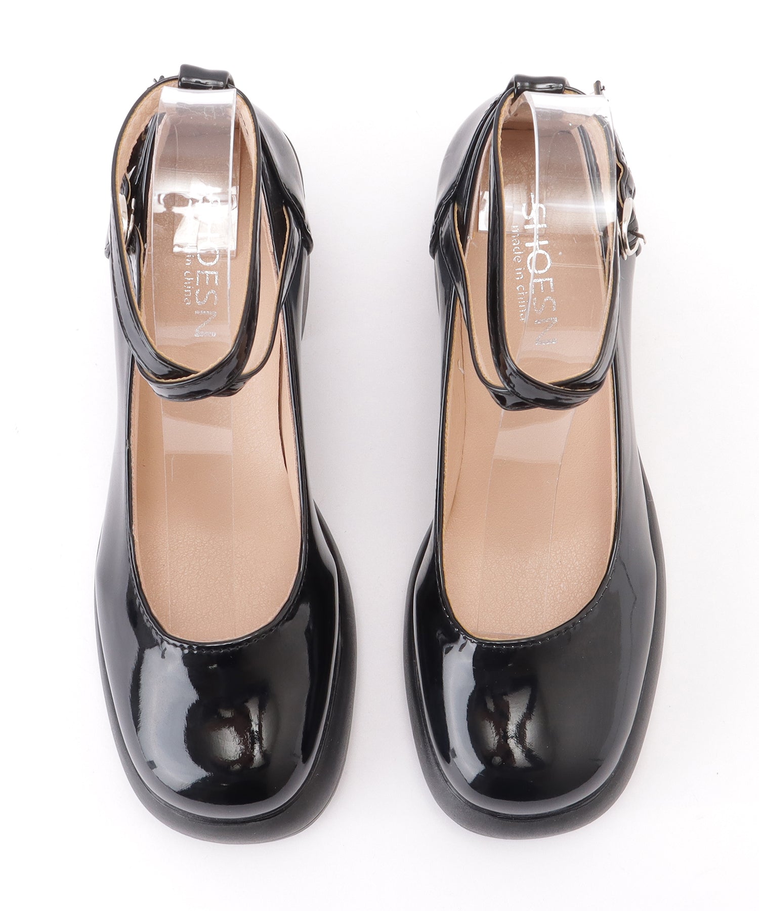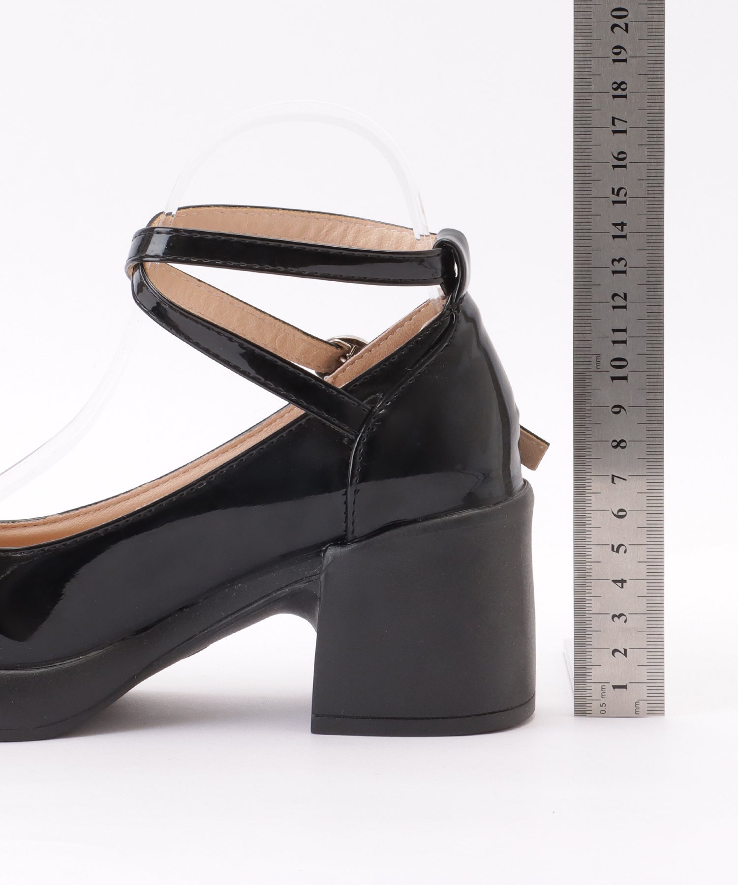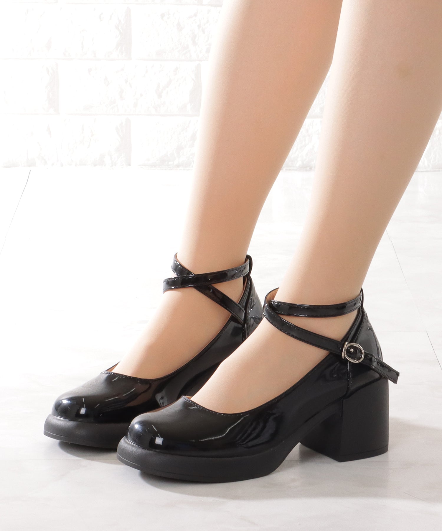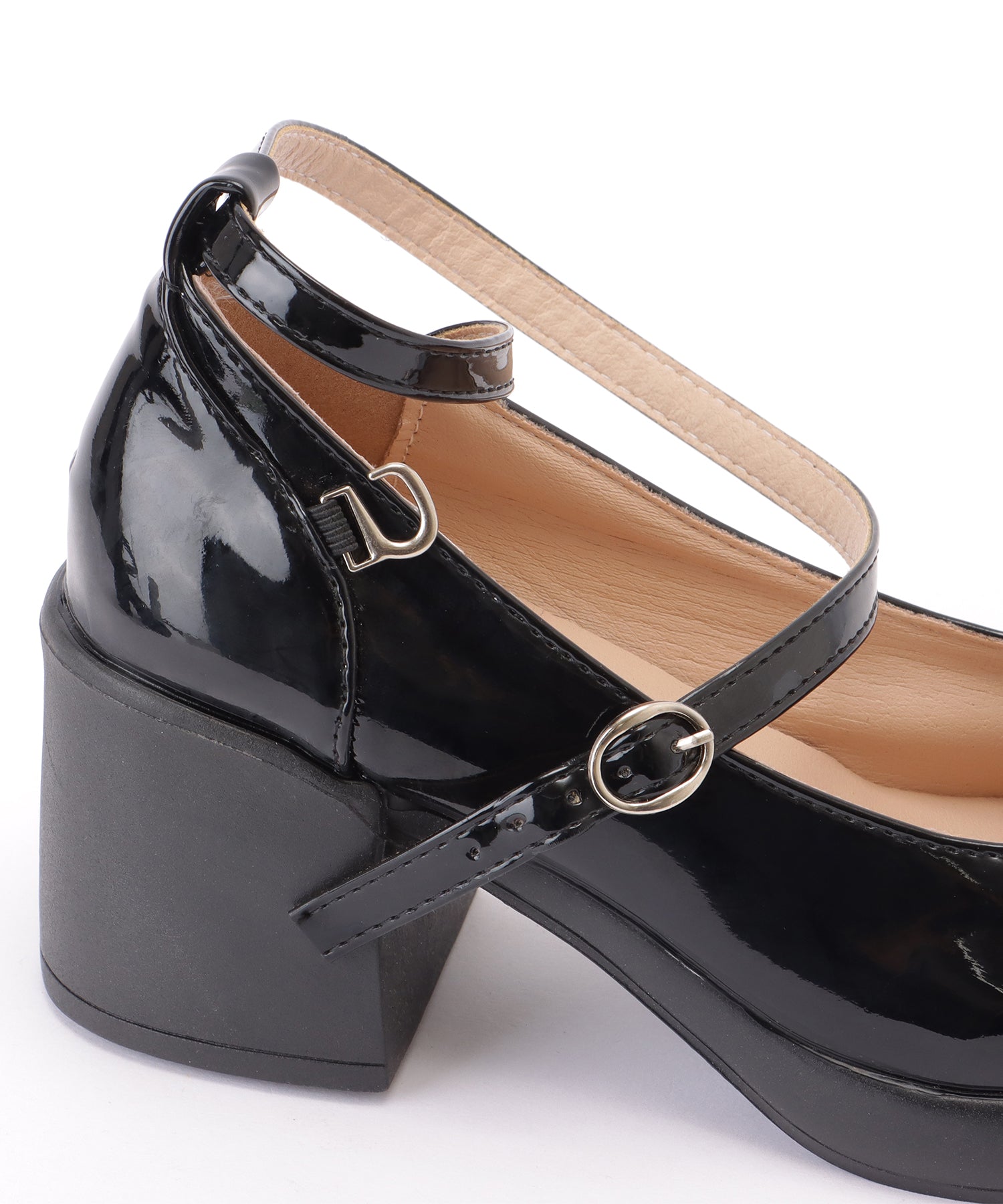 レザー調 厚底 ストラップ ボリューム パンプス
