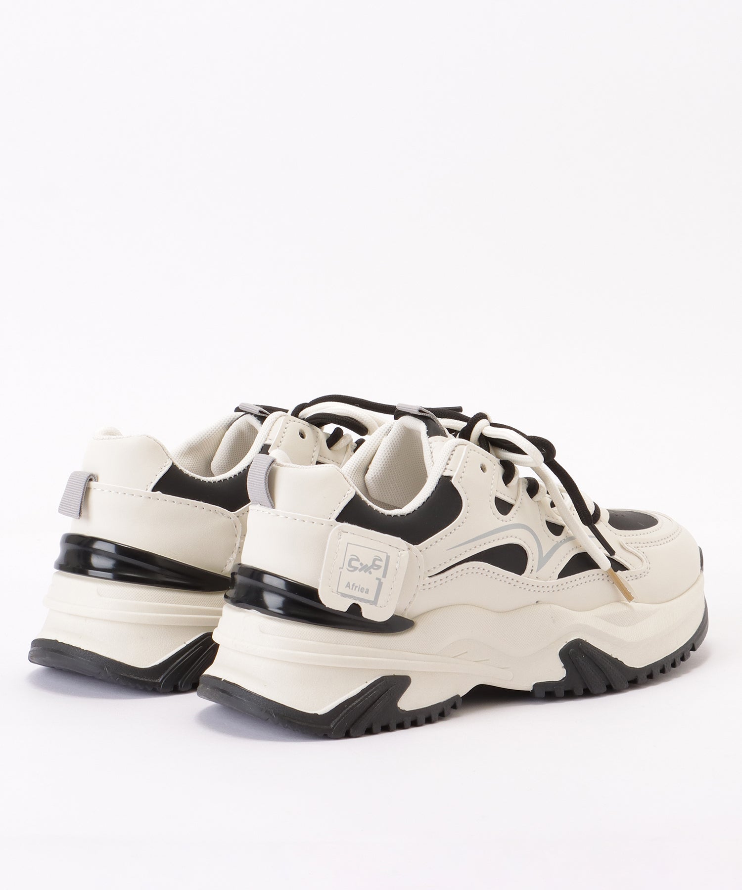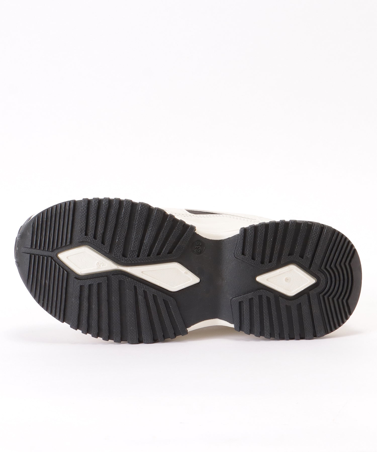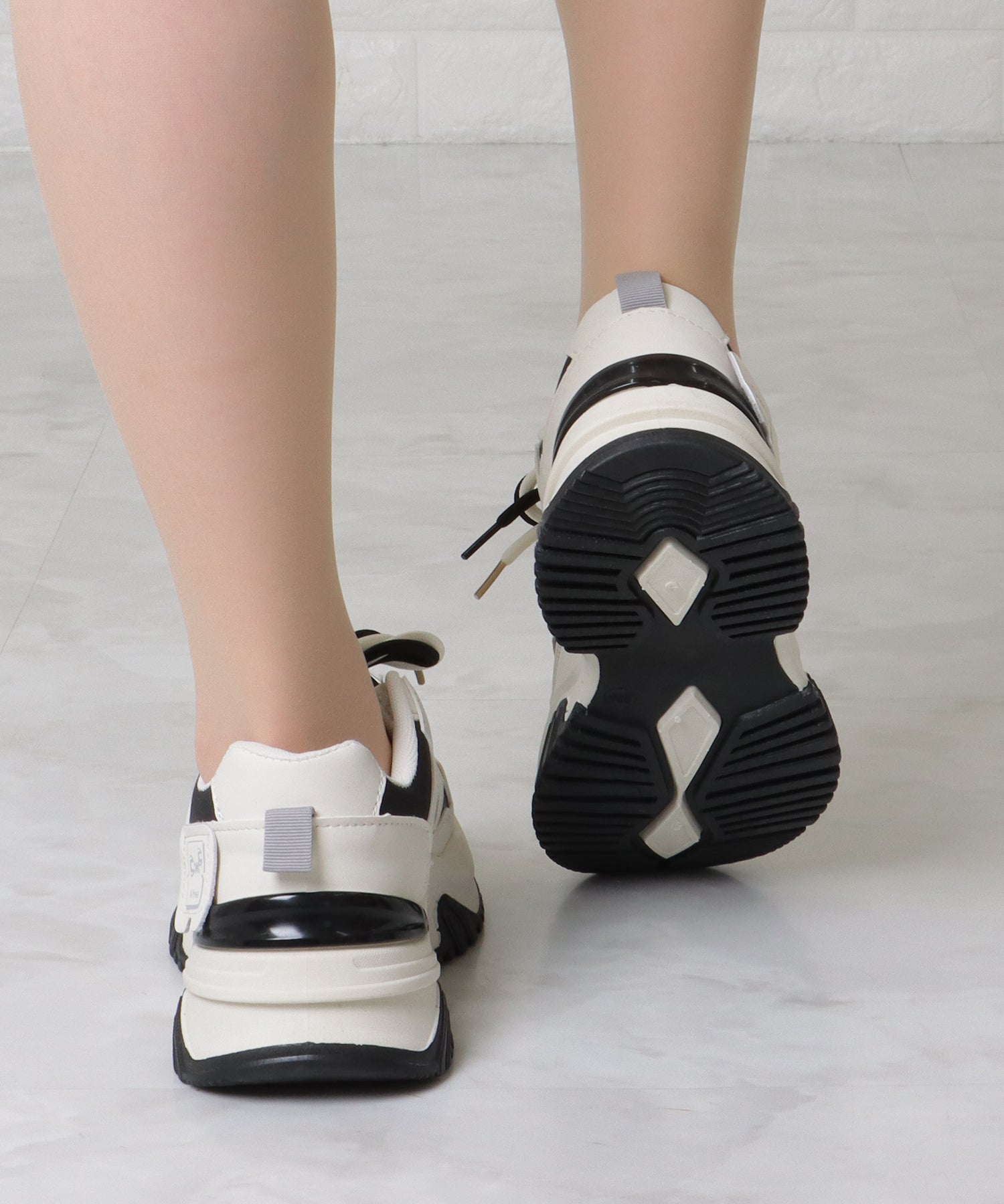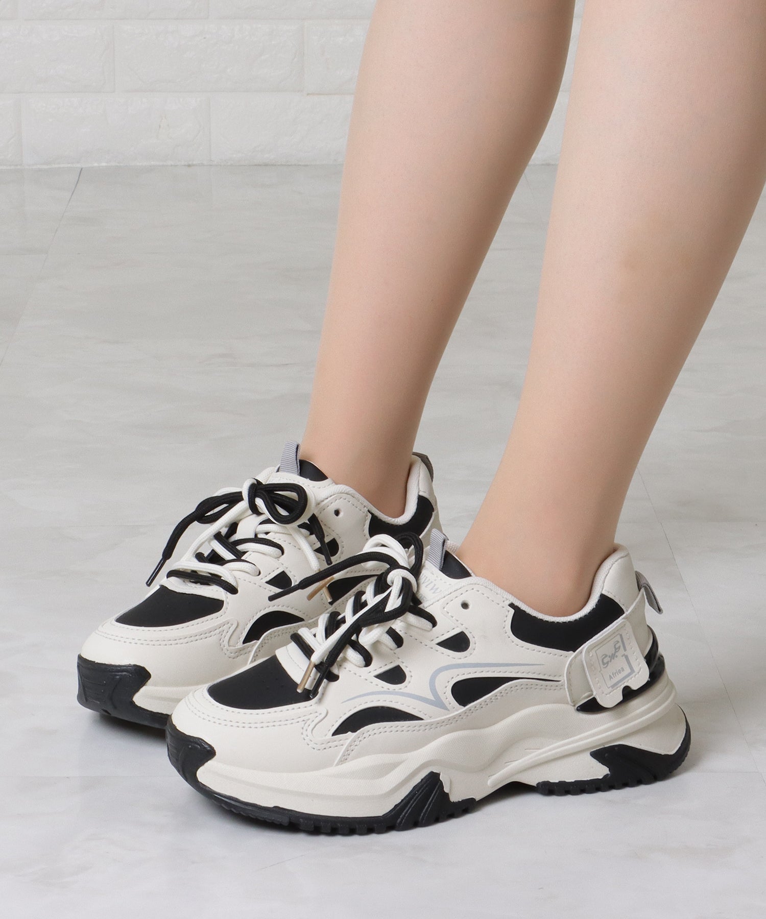 トレンドのダッドスニーカーをベースにしたアッパーは、配色デザインでメリハリ感のあるルックスに。