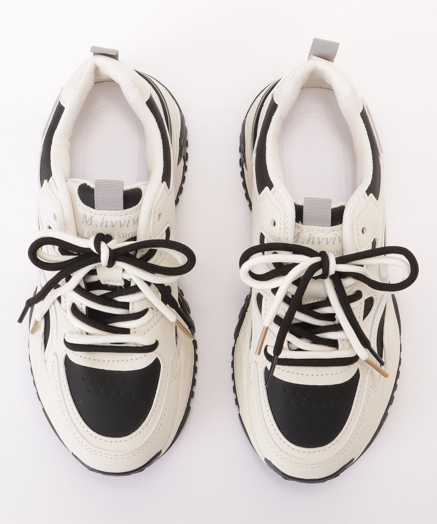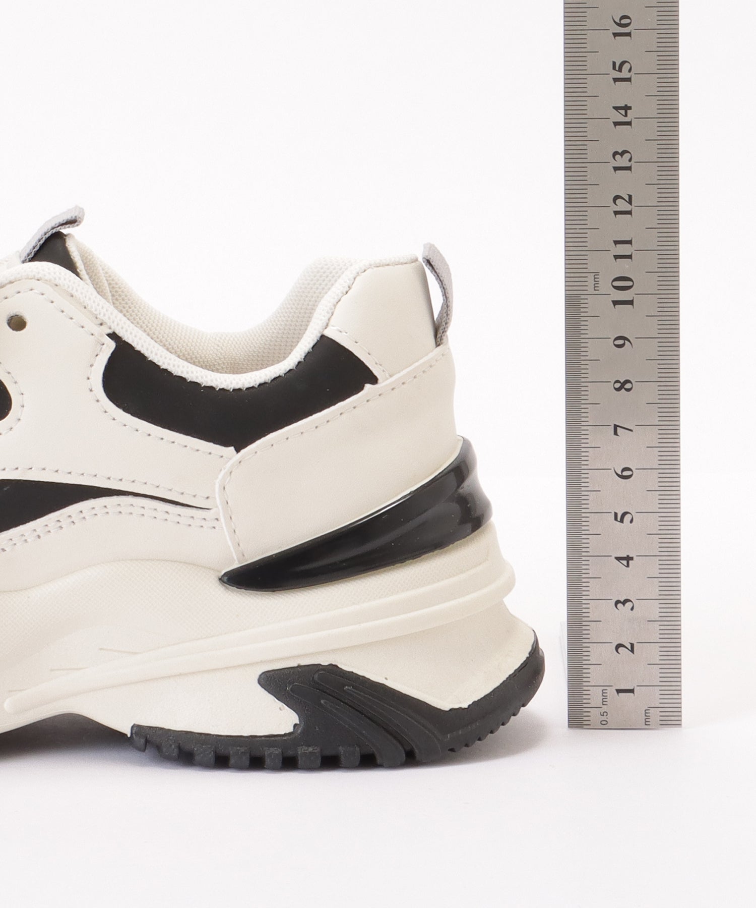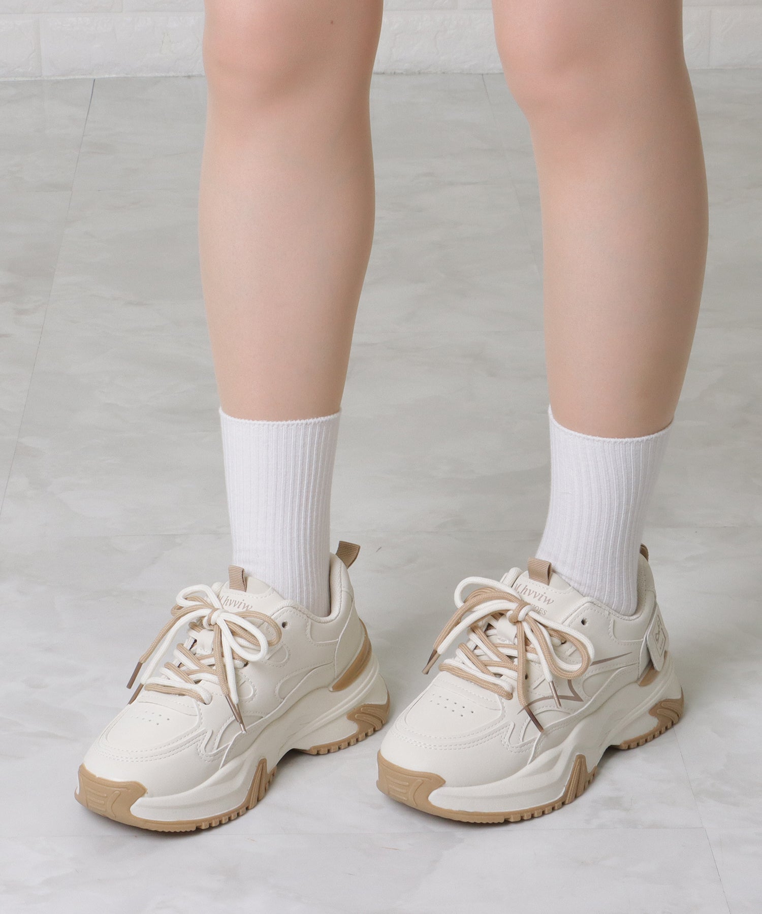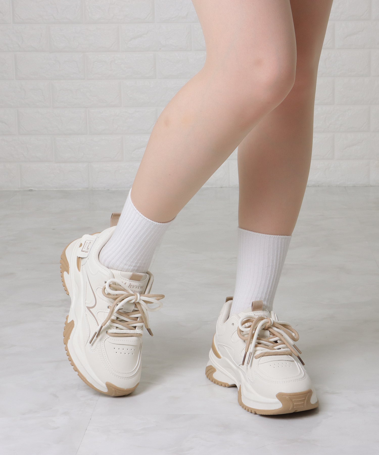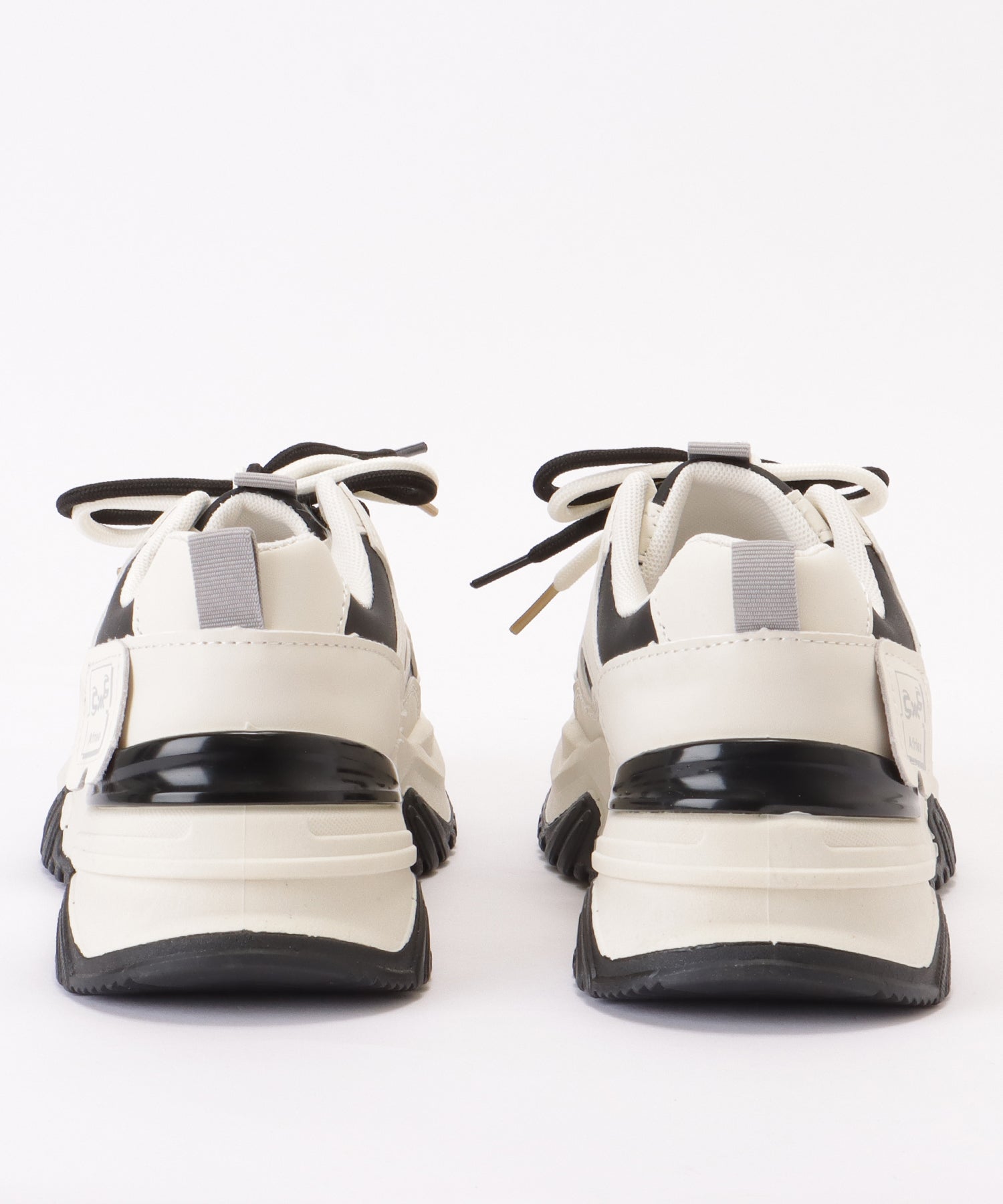 トレンドのダッドスニーカーをベースにしたアッパーは、配色デザインでメリハリ感のあるルックスに。