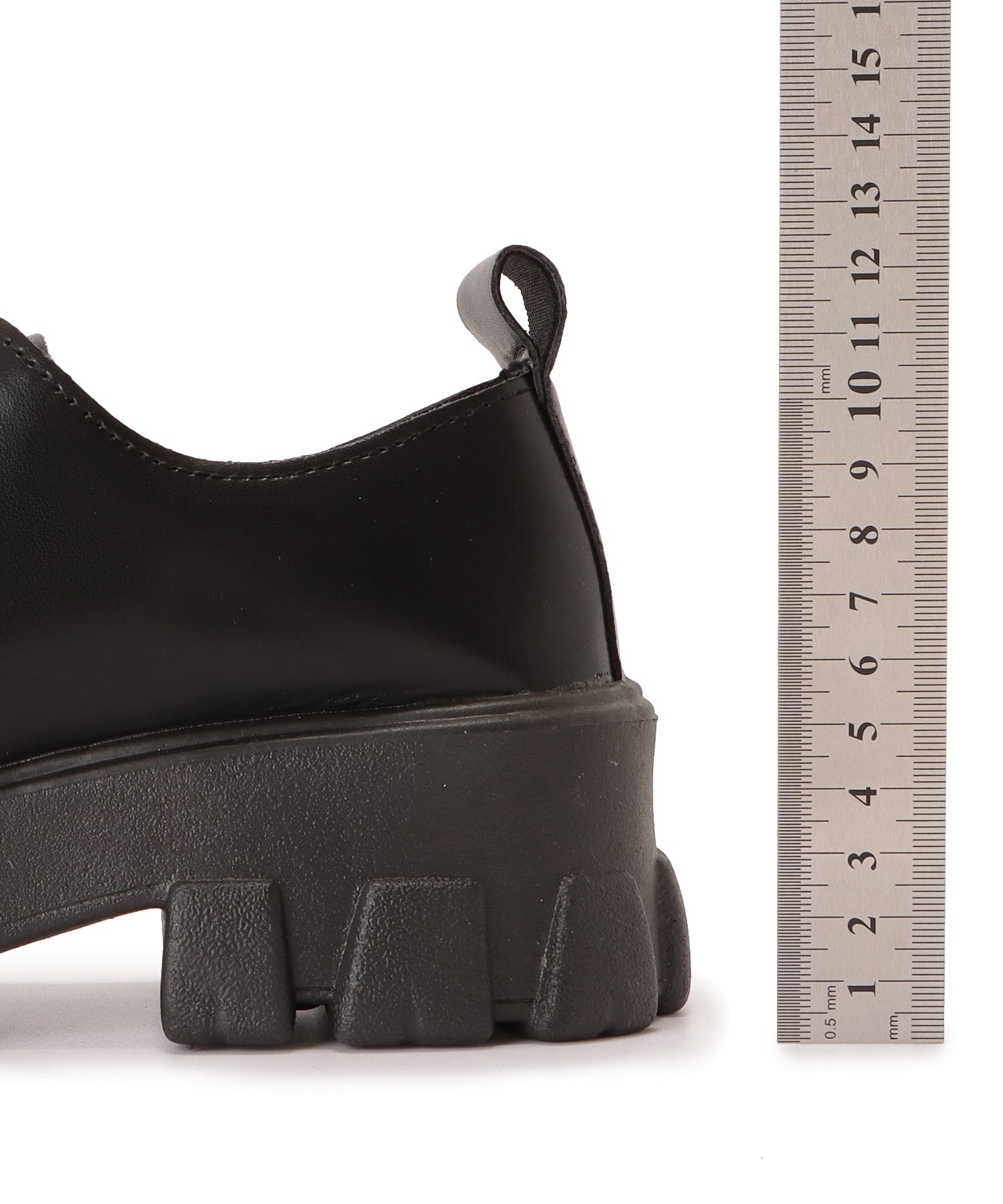 ずっしりと厚みのあるソールがコーディネートのアクセントになり、足元を引き締めます。