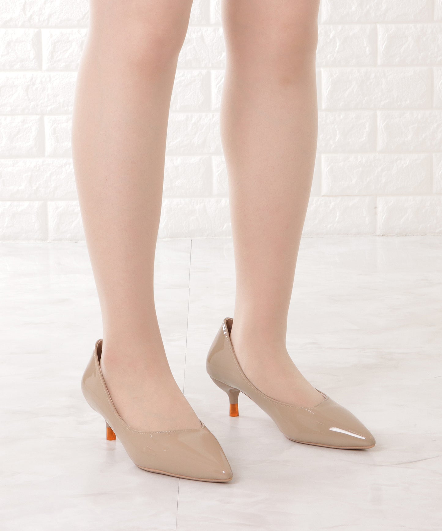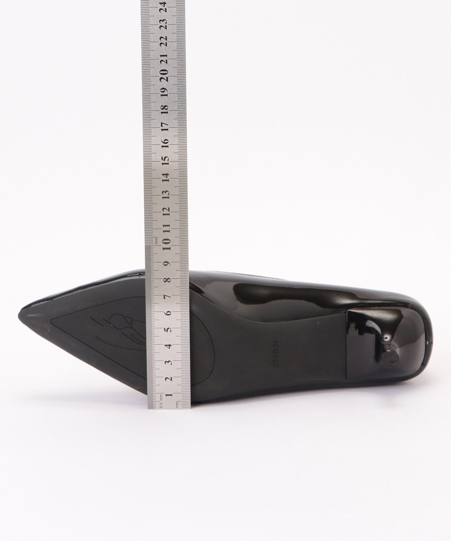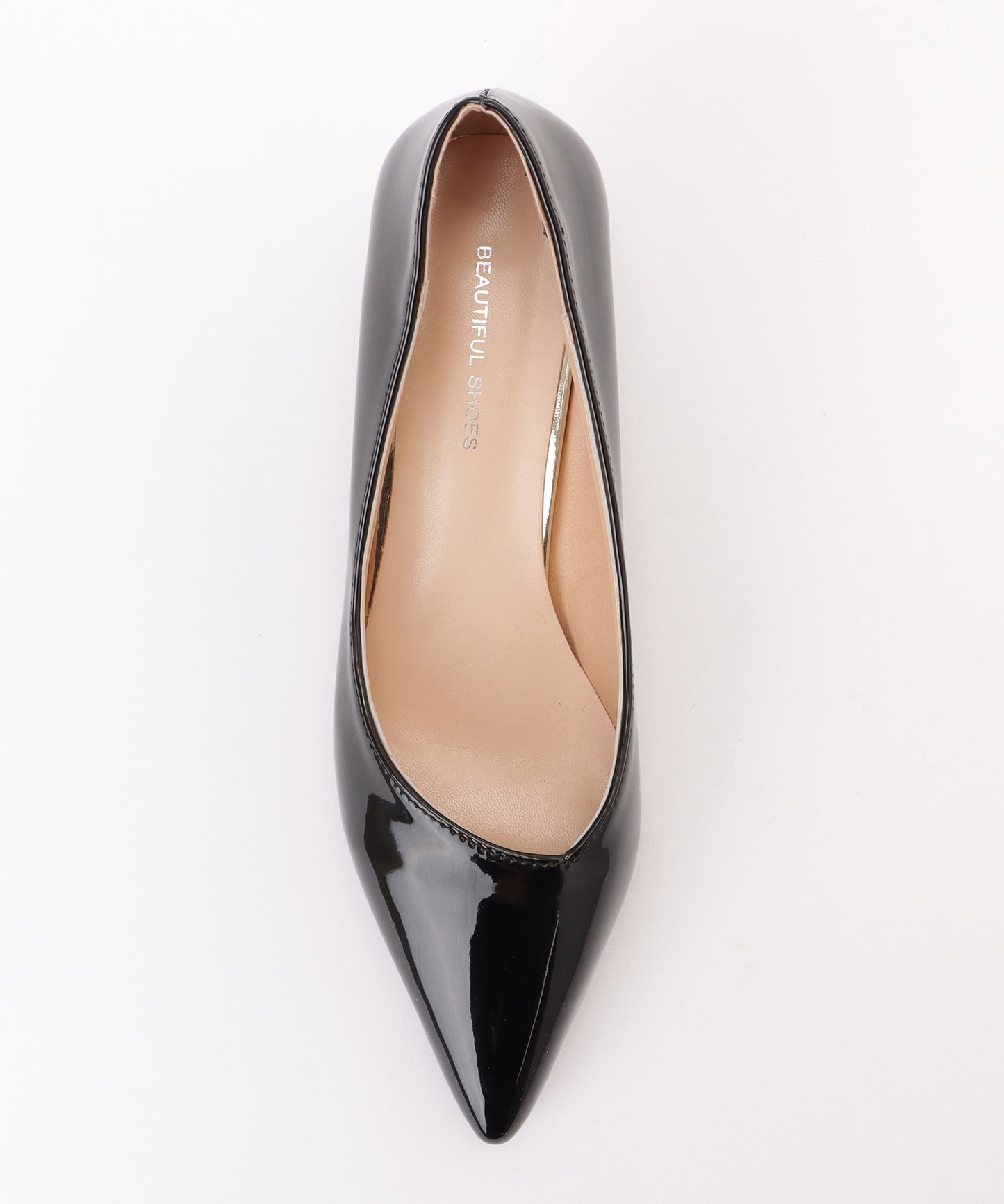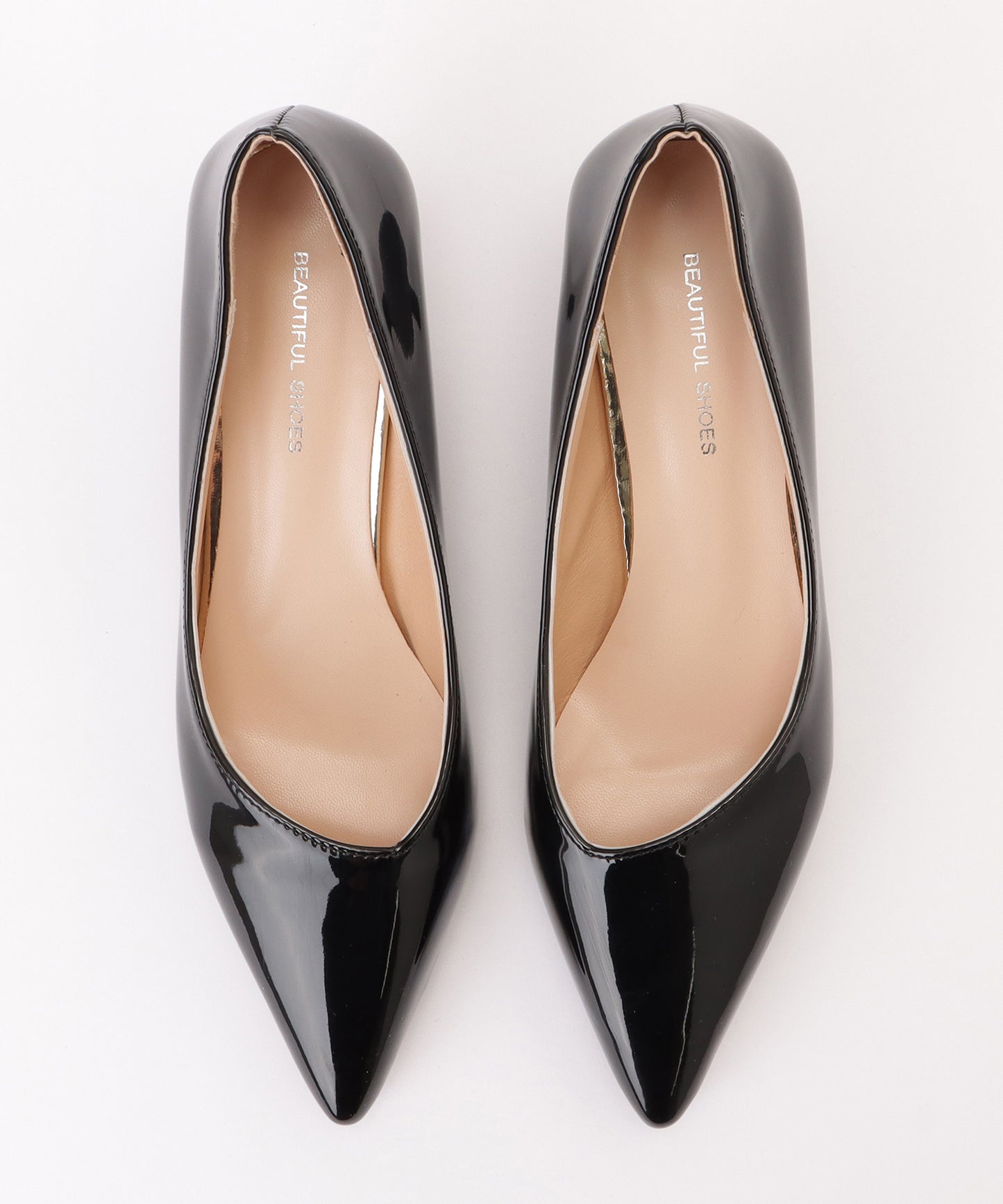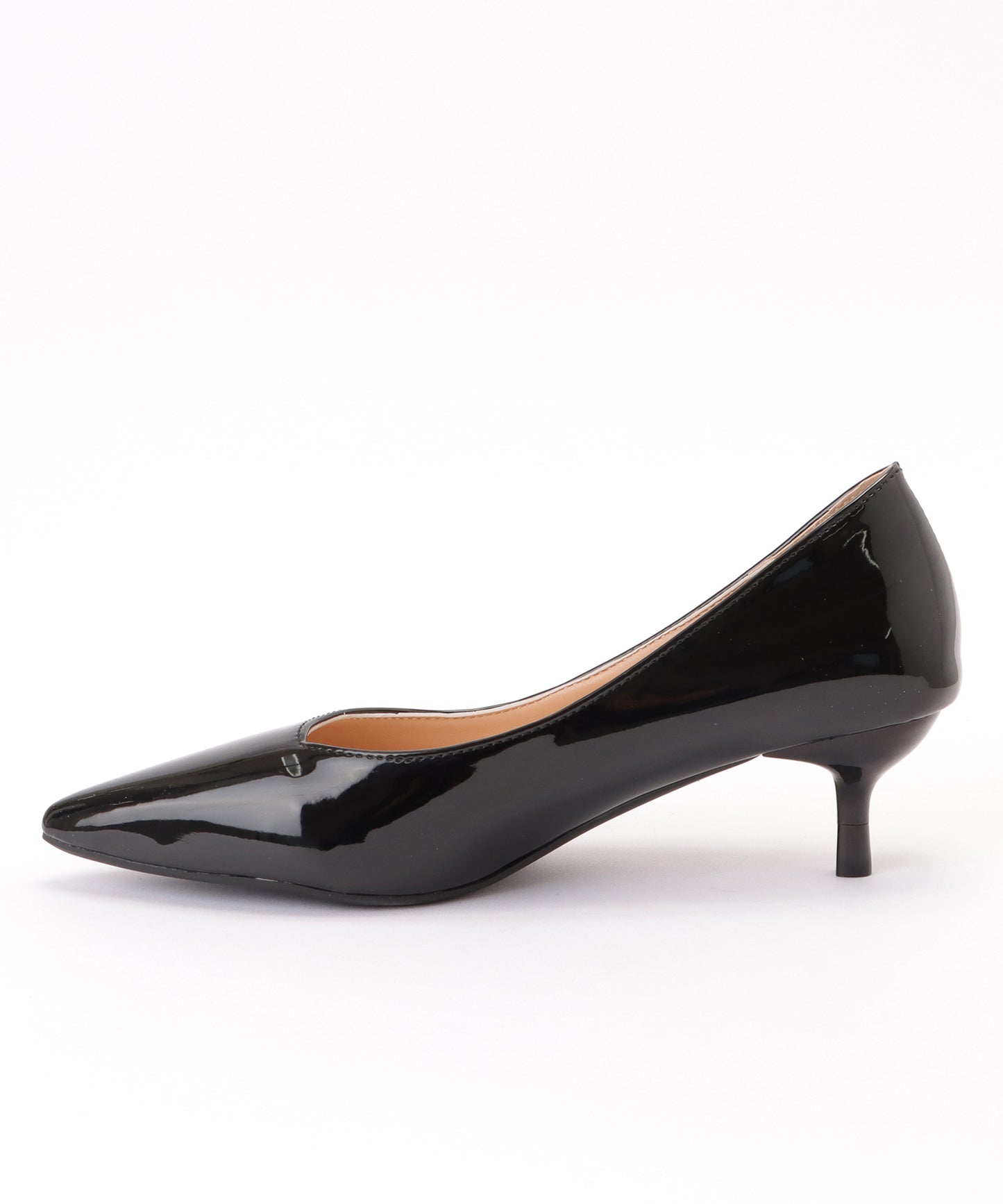 エナメル調の素材でおつくりした、ポインテッドトゥパンプス。