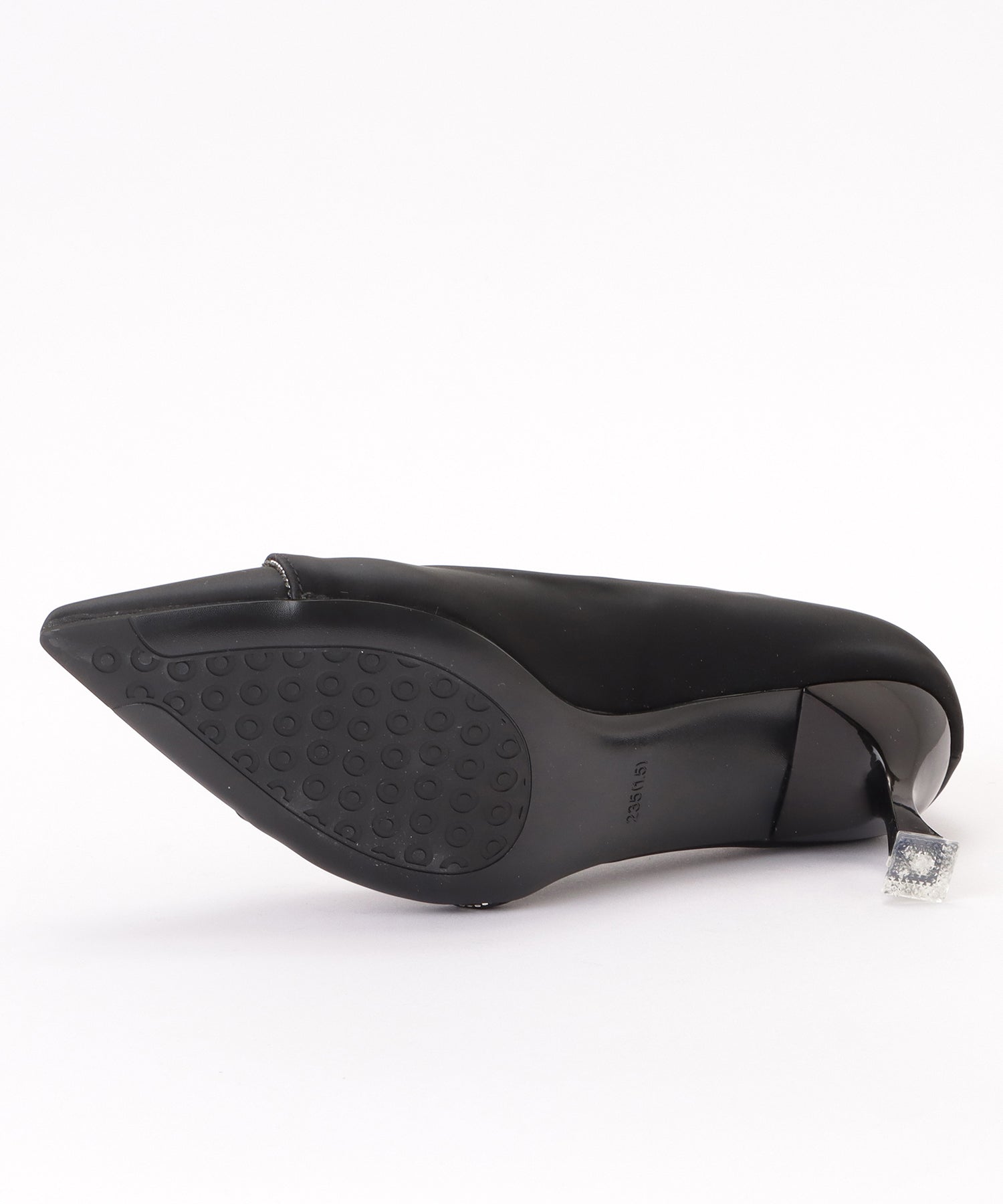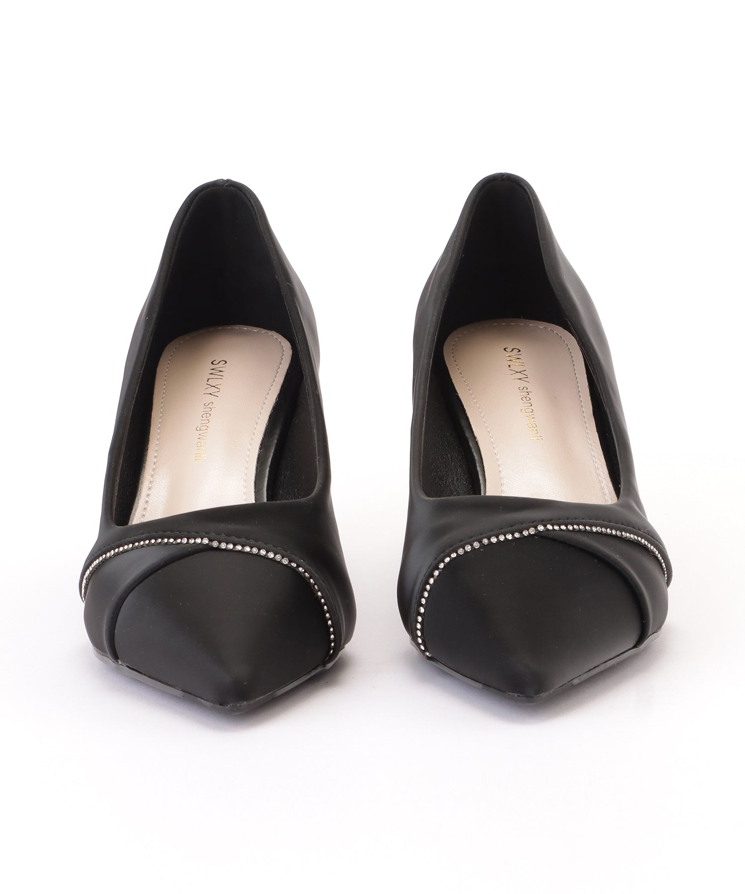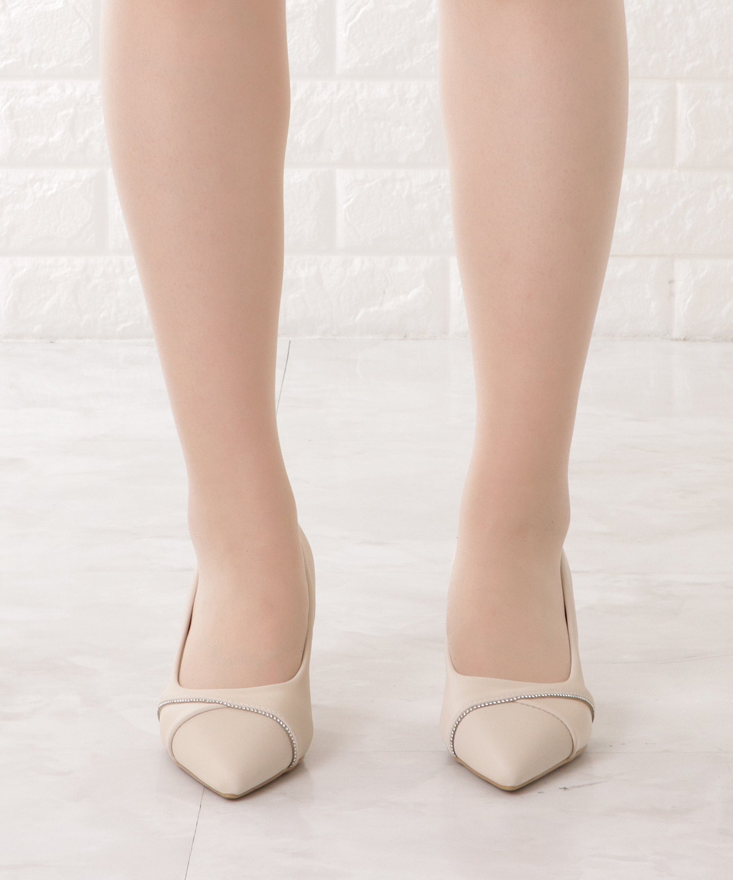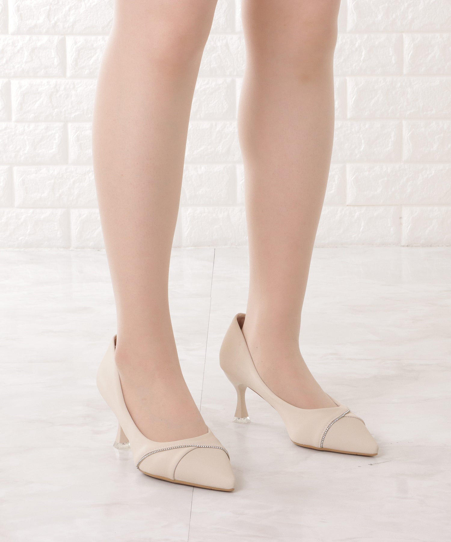 レザー調ラインビジューポインテッドパンプス