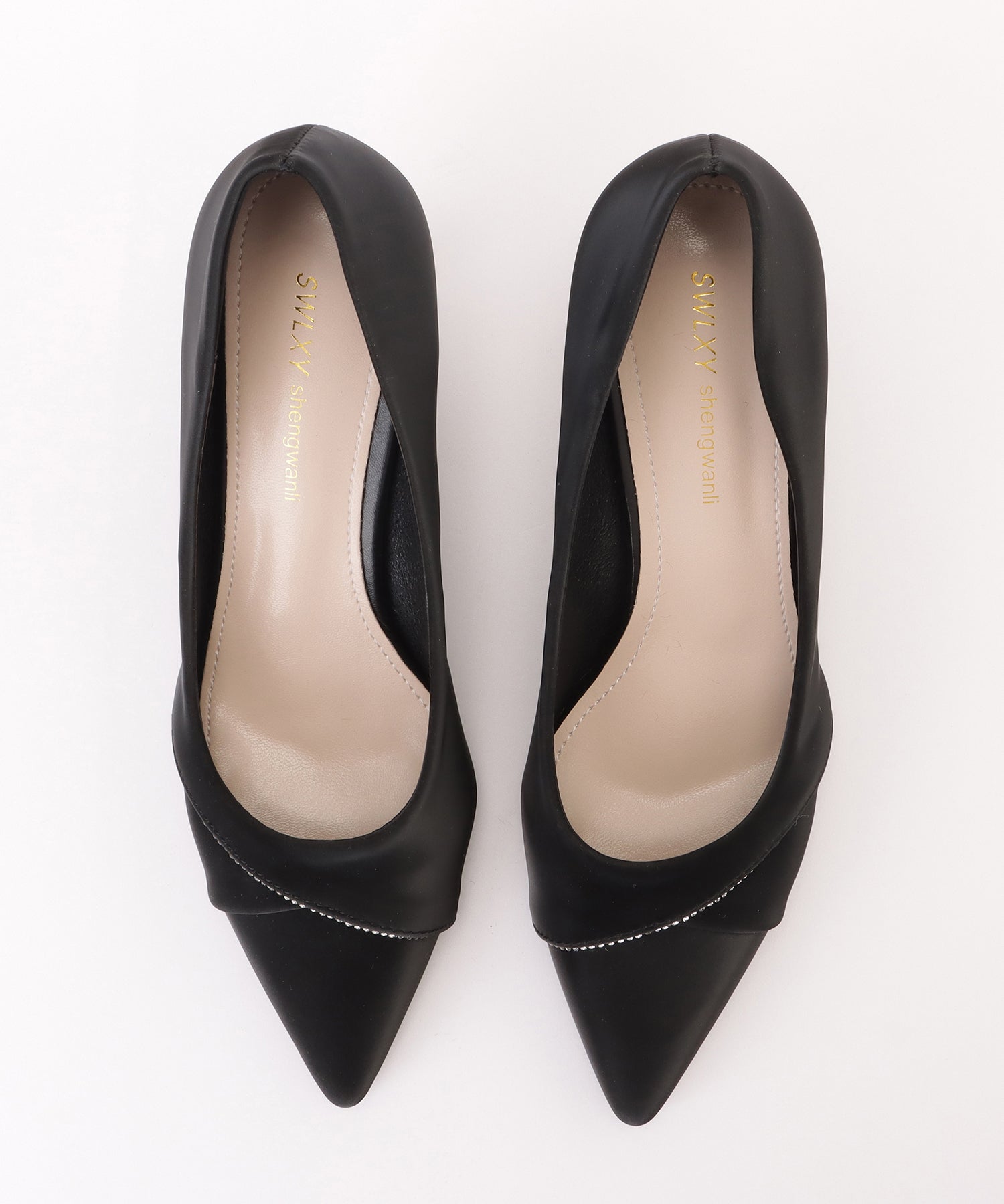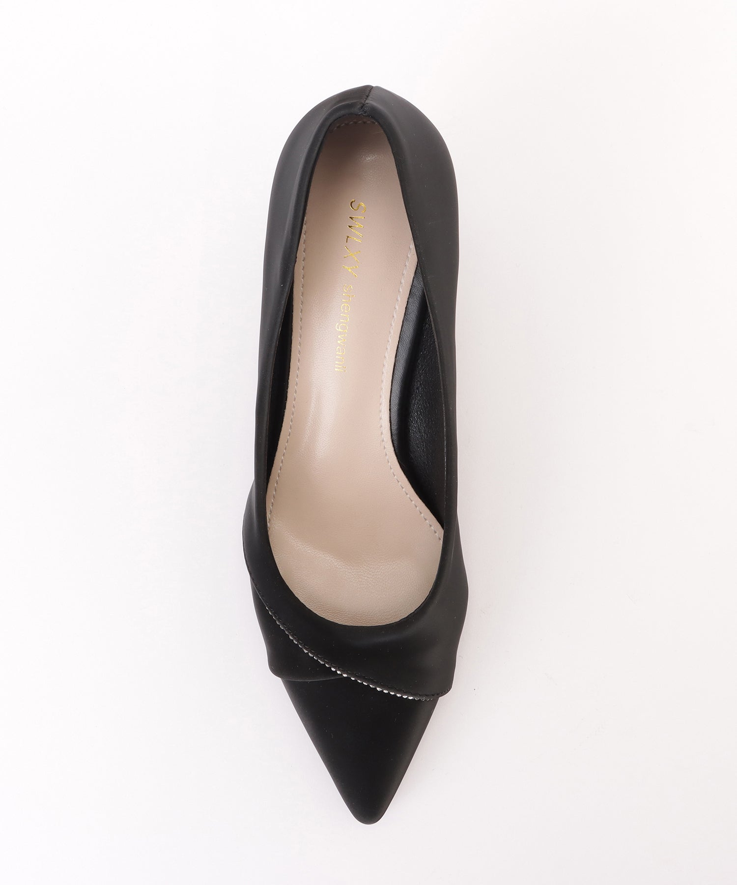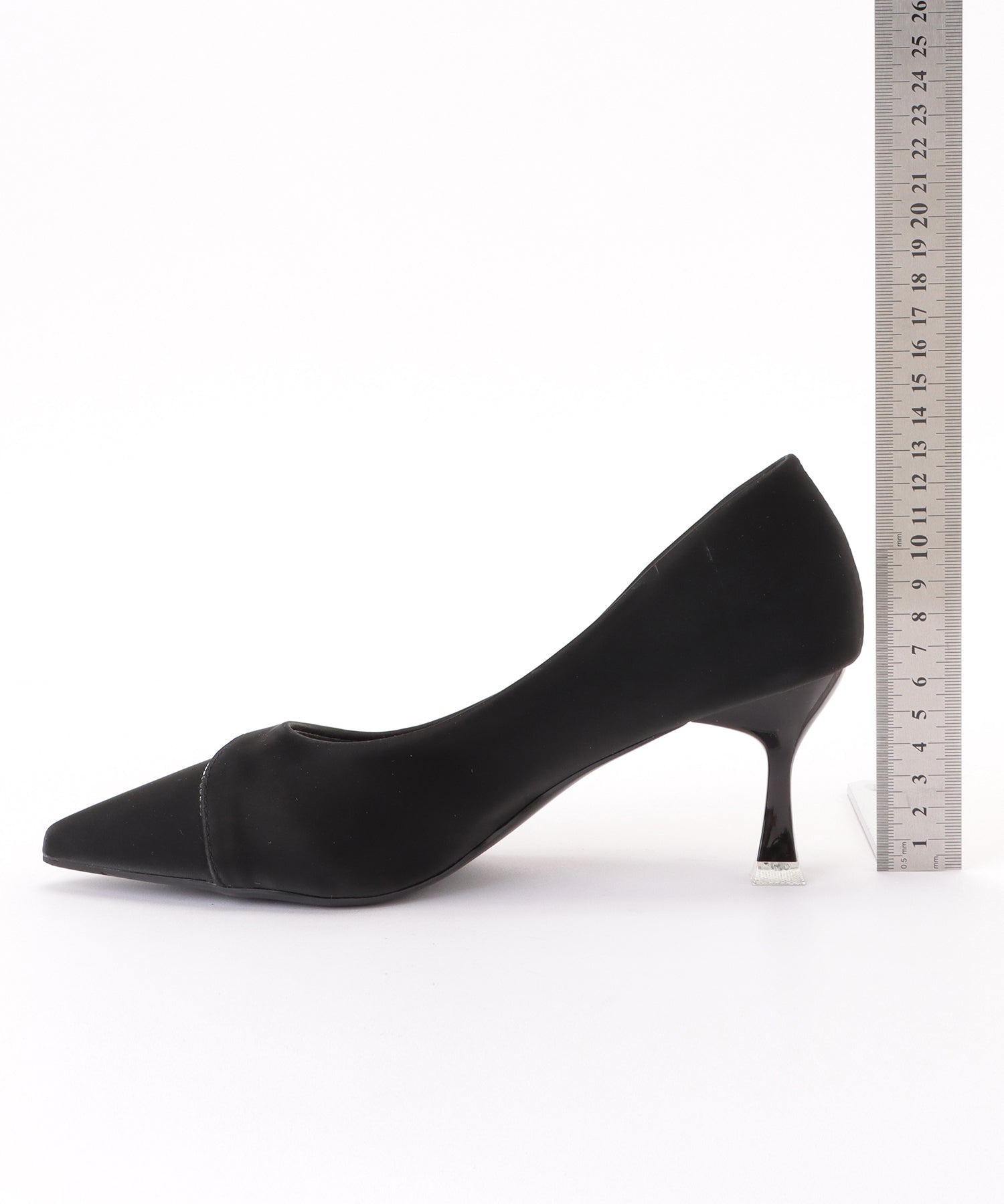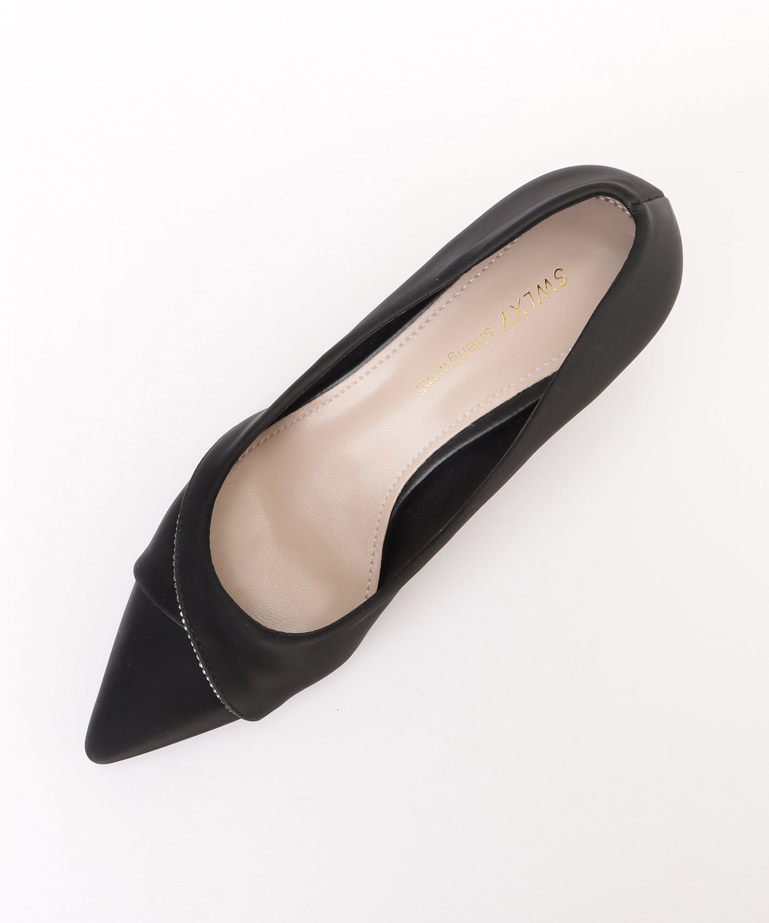 レザー調の素材でおつくりした、ポインテッドトゥのパンプス