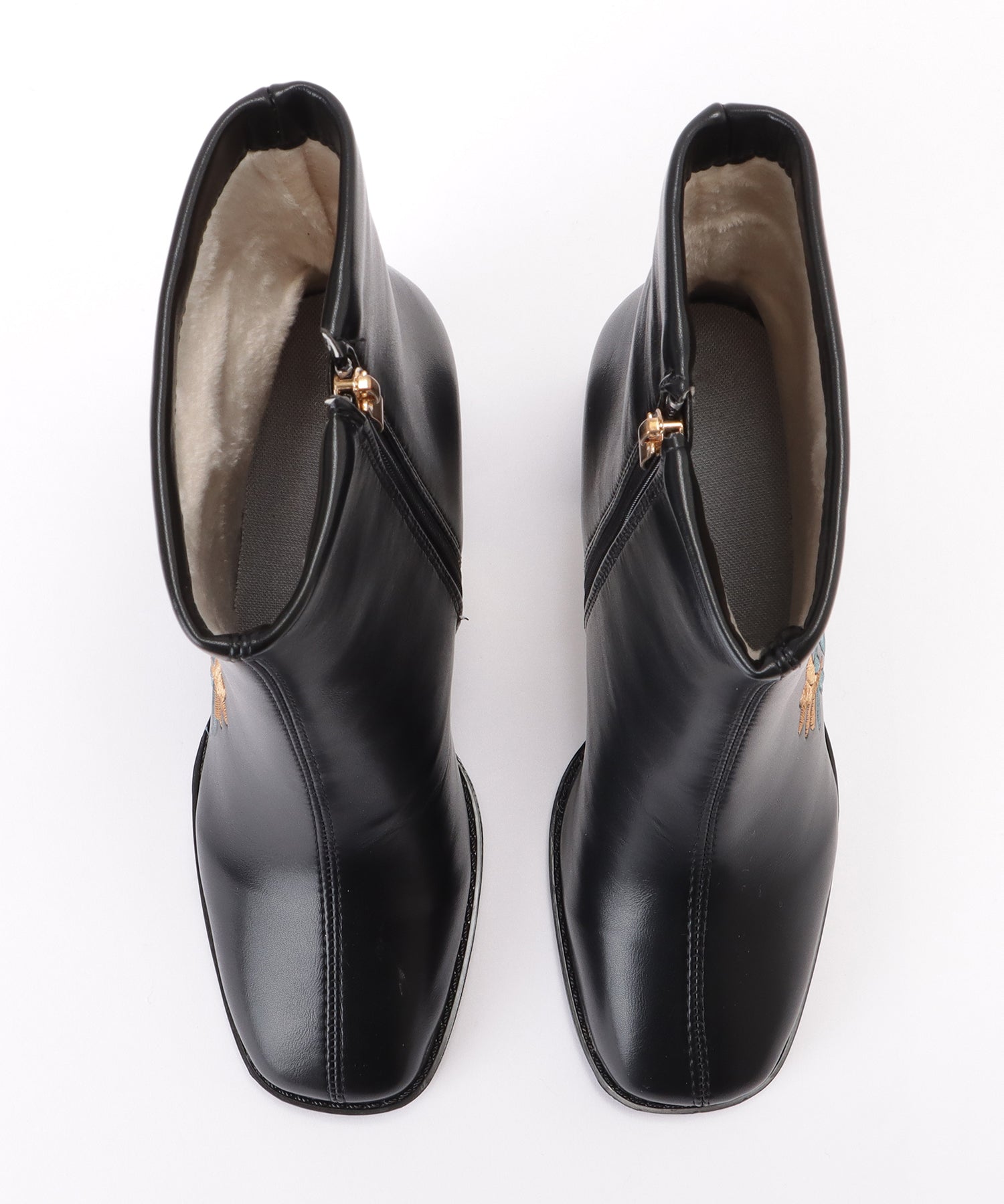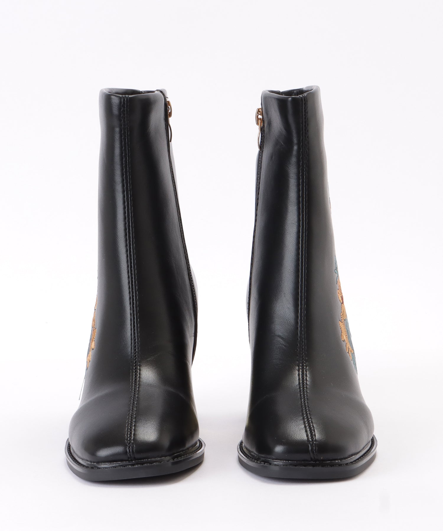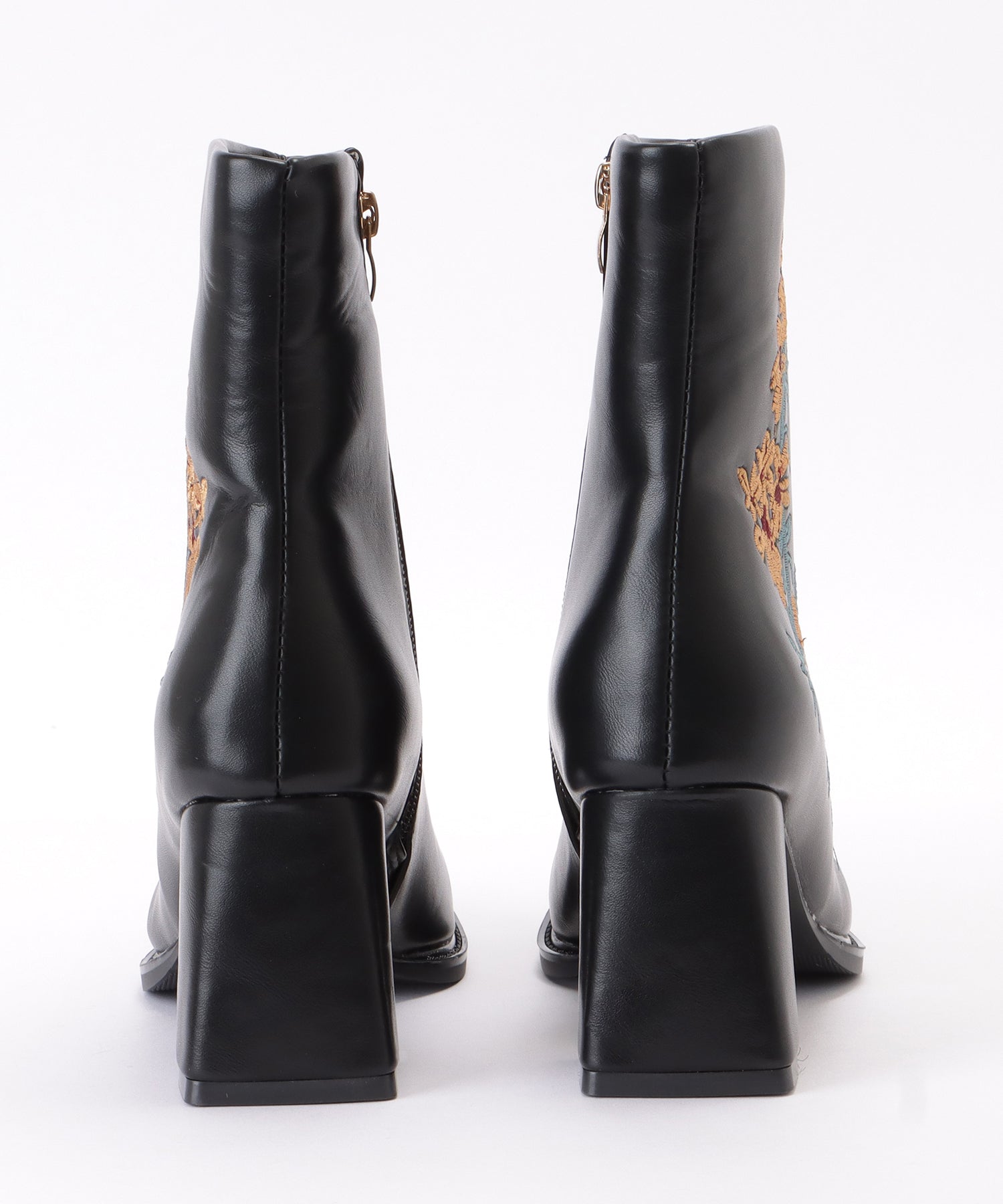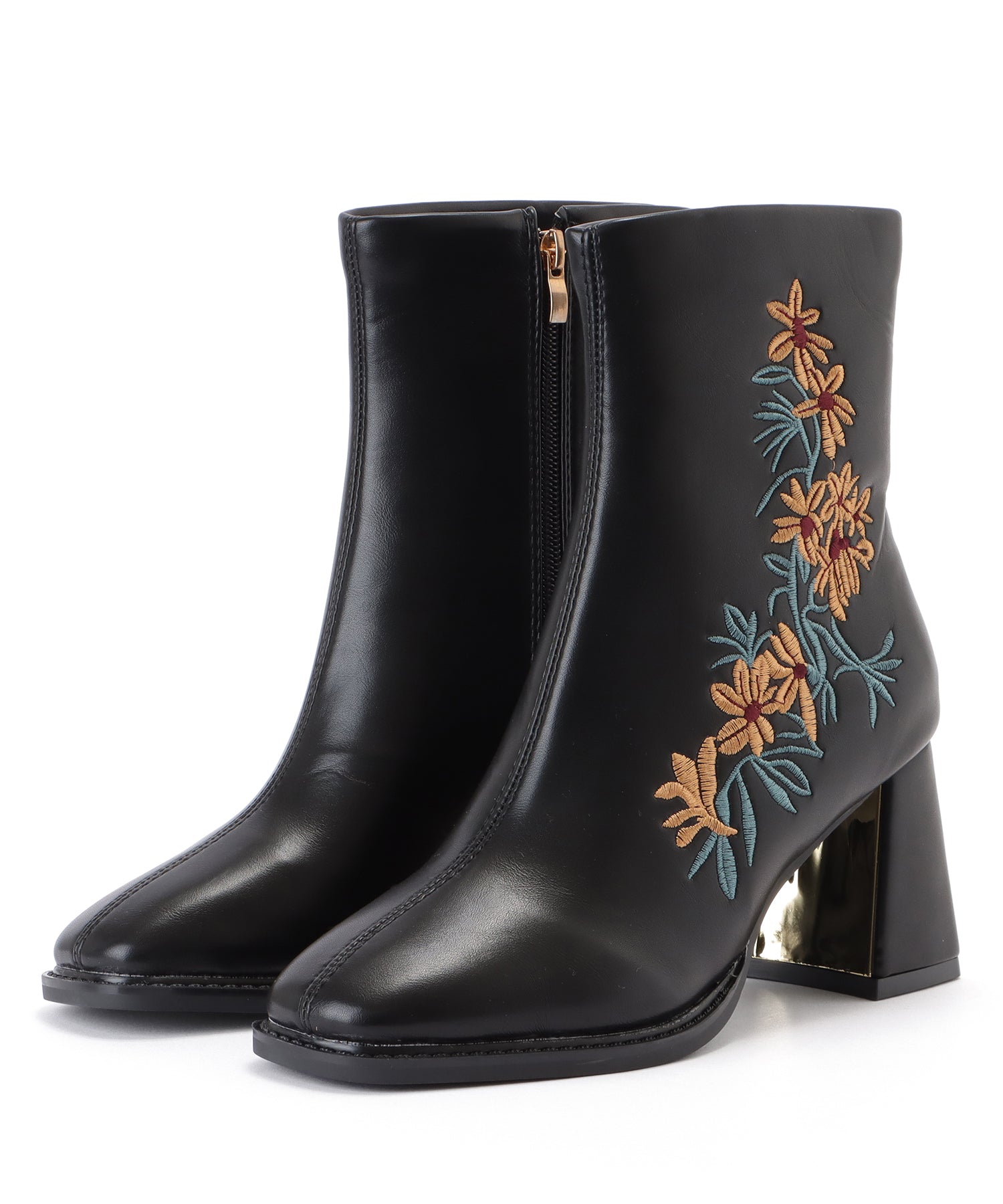 繊細な花柄刺繍がアクセントになった、ショートブーツ。