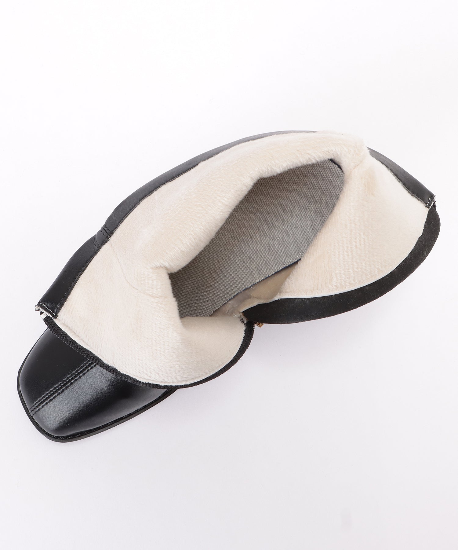 女性らしいトゥデザインに、チャンキーヒールでトレンド感をプラスしたルックスに仕上げました。