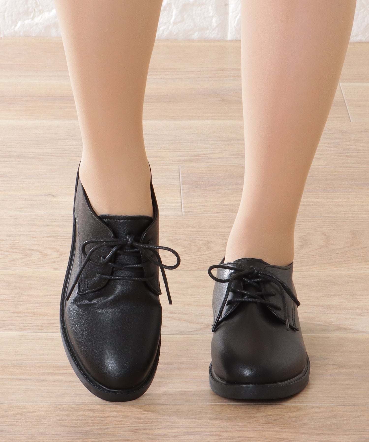 控えめなレースアップがアクセントになったアッパーは、シンプルにすることでややマニッシュな印象に。