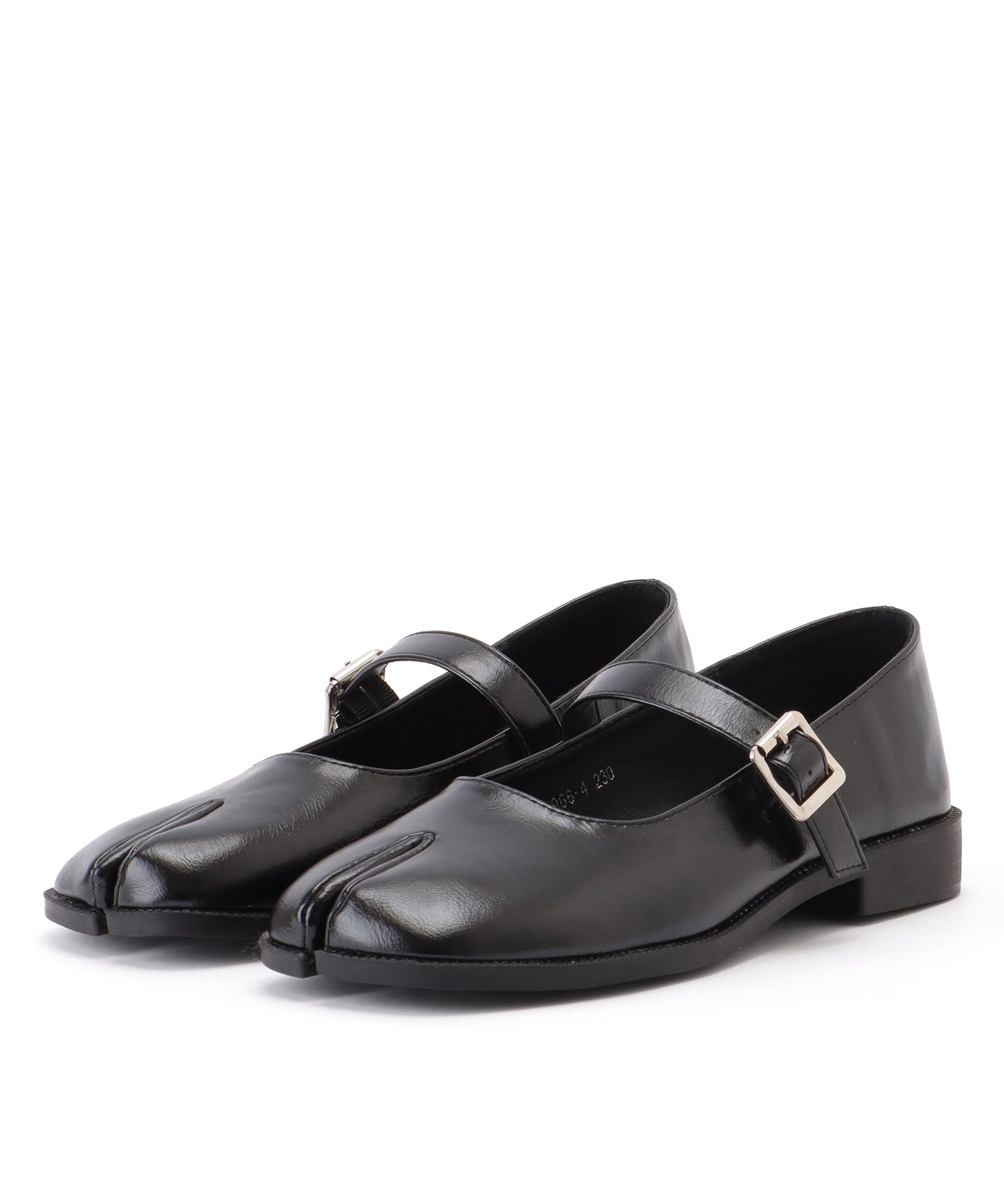 まるで足袋のようなトゥデザインで、モードな印象に仕上げたストラップシューズ。
