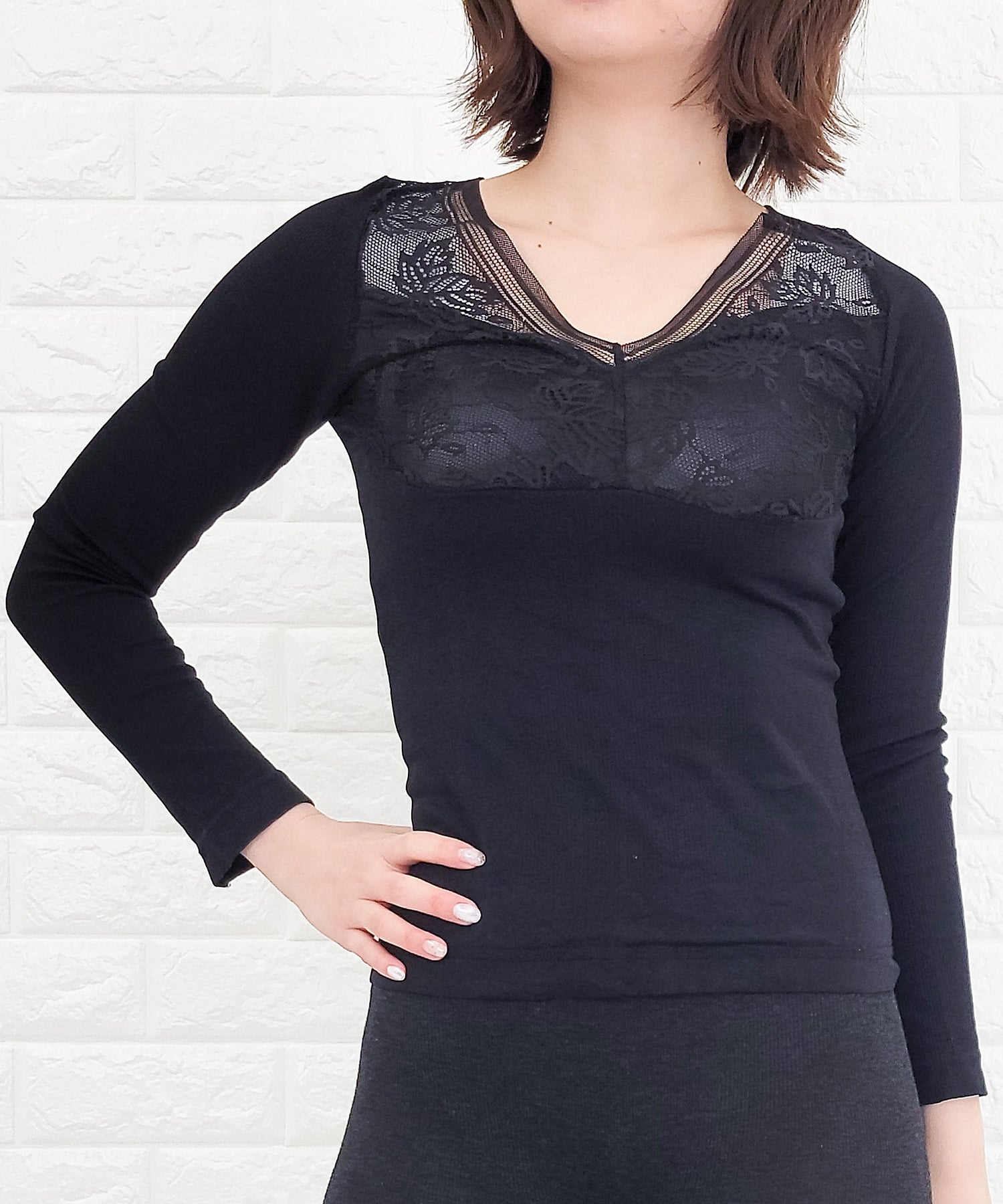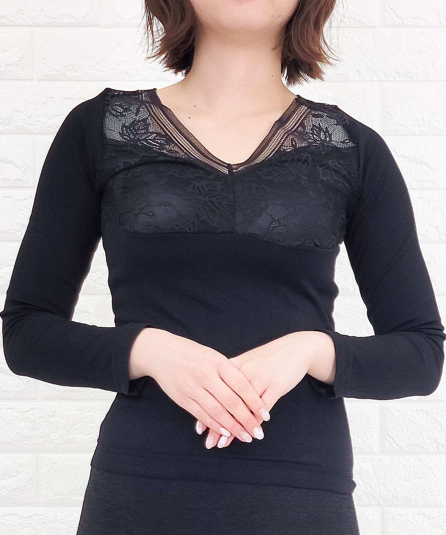 胸元のレースデザインでデコルテ周りを美しく魅せるレースインナー