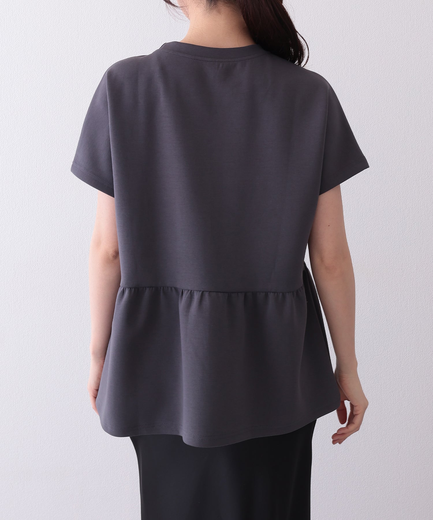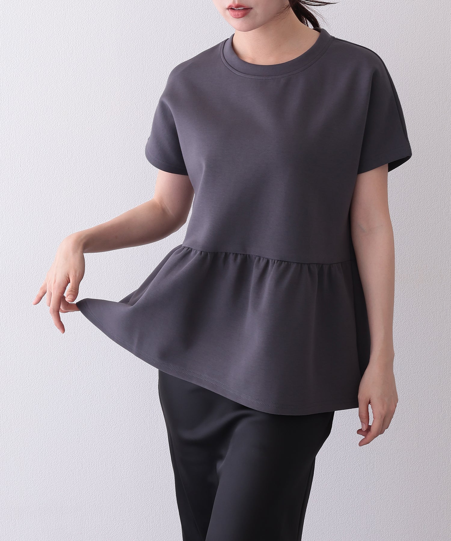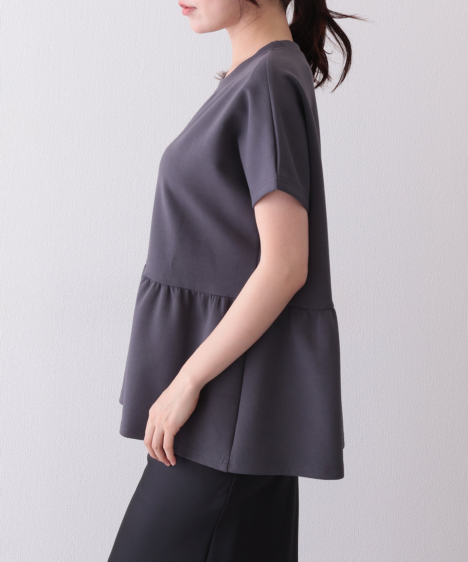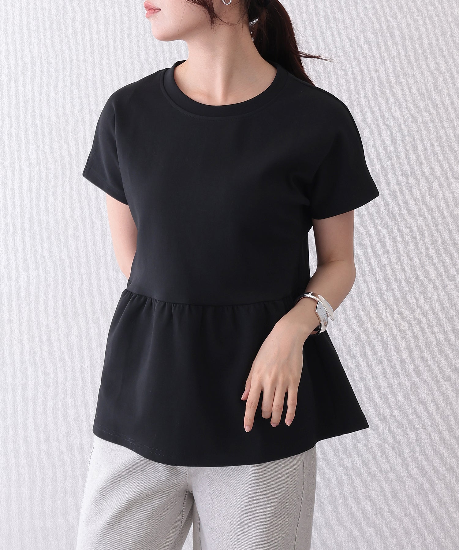 ソリッドカラー クルーネック ペプラム 半袖 Tシャツ