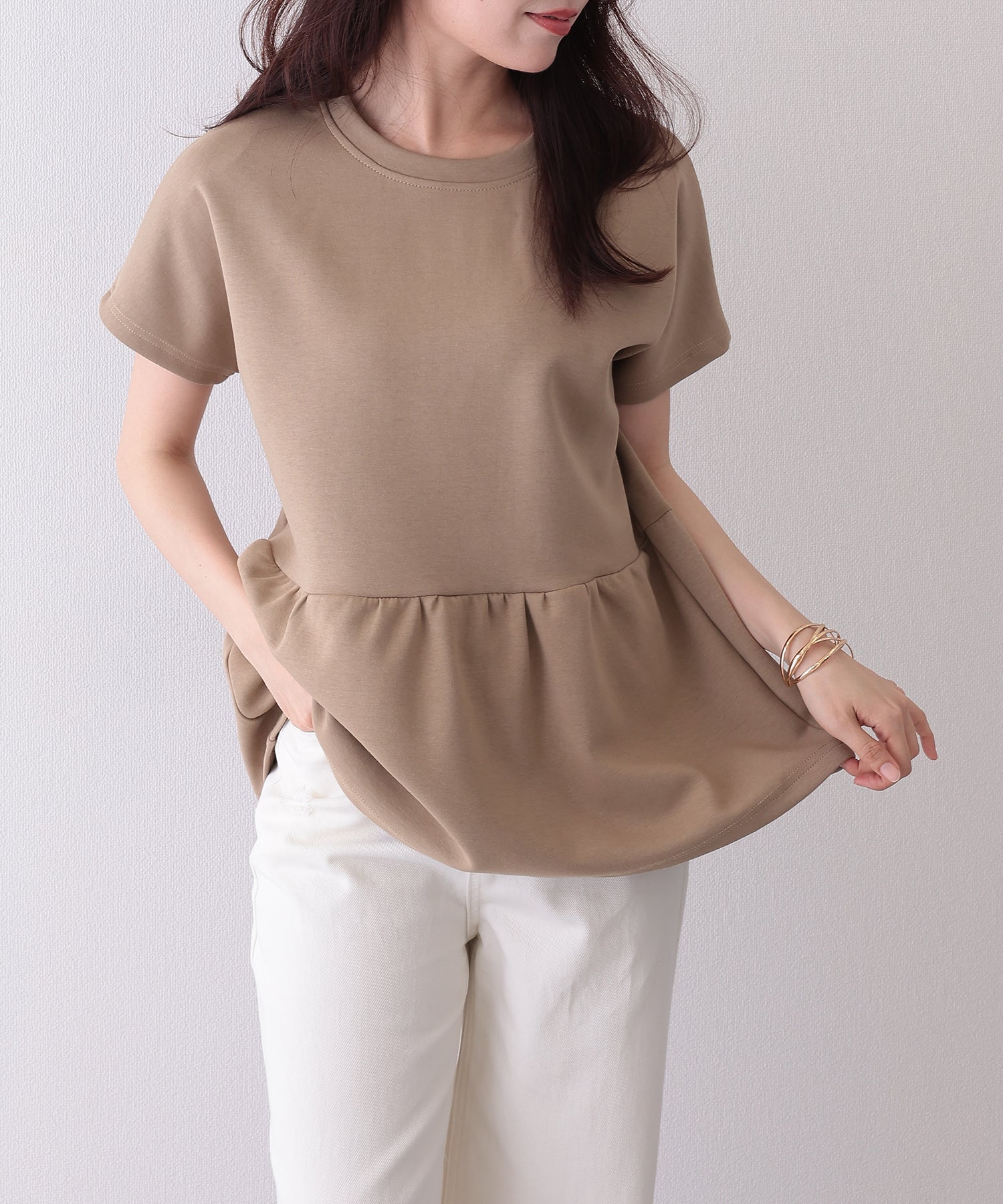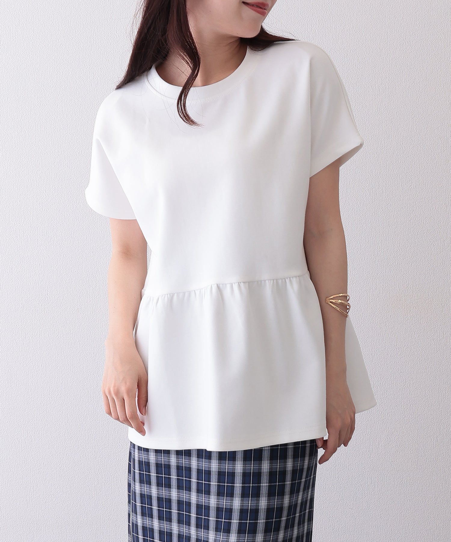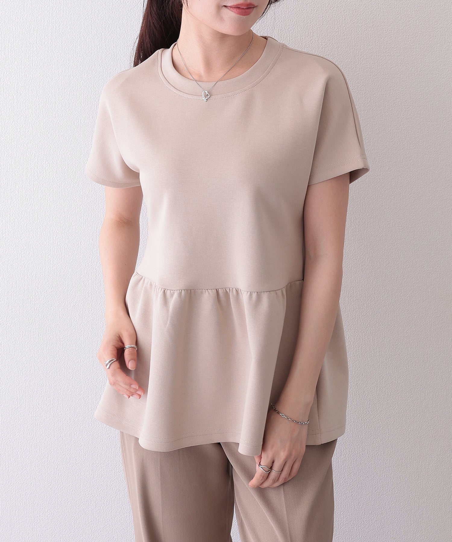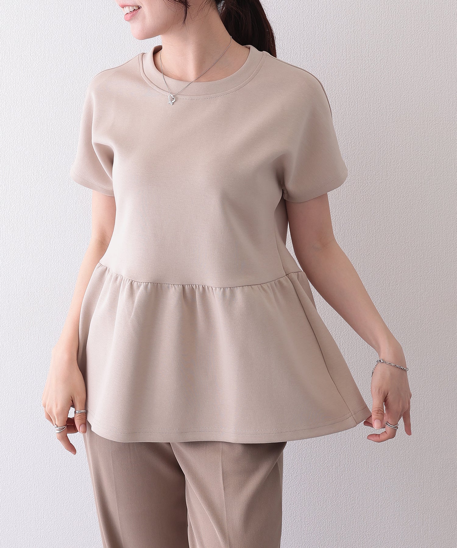 ソリッドカラー クルーネック ペプラム 半袖 Tシャツ