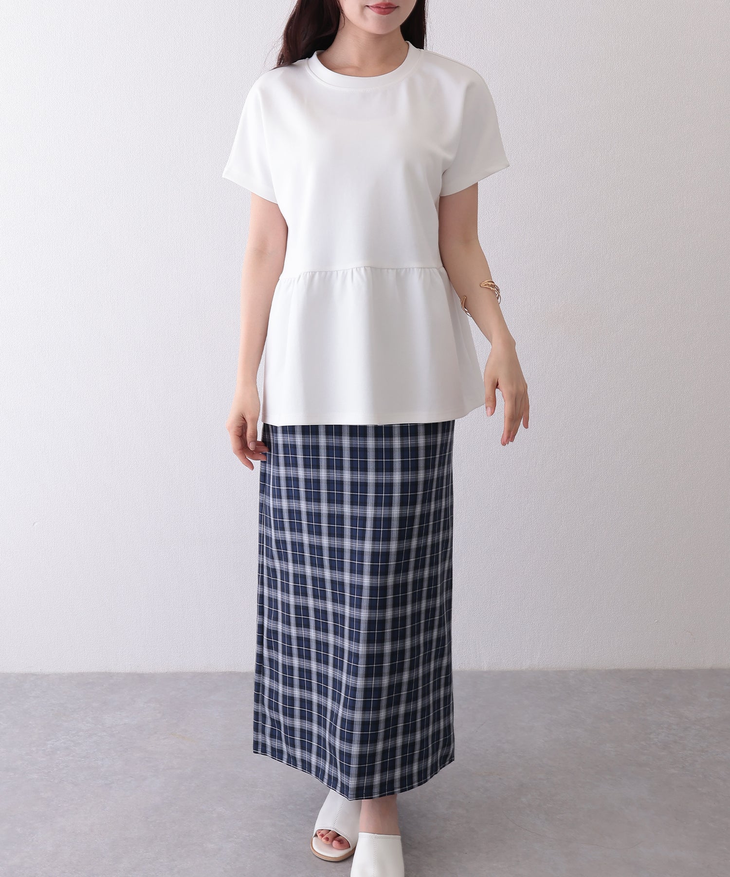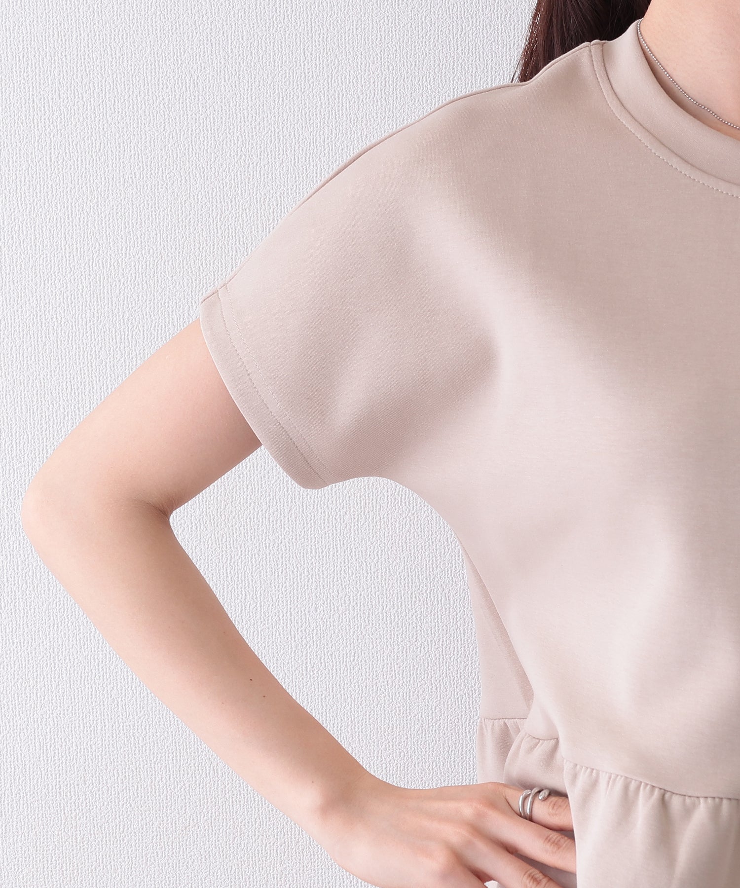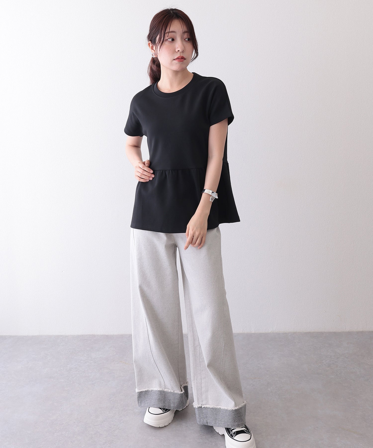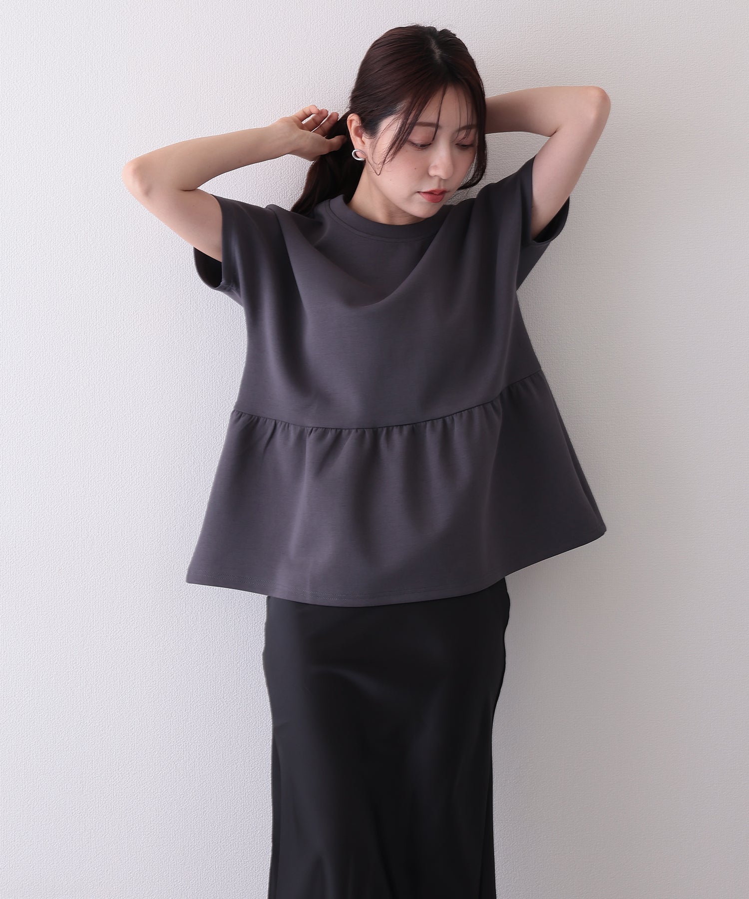 ソリッドカラー クルーネック ペプラム 半袖 Tシャツ