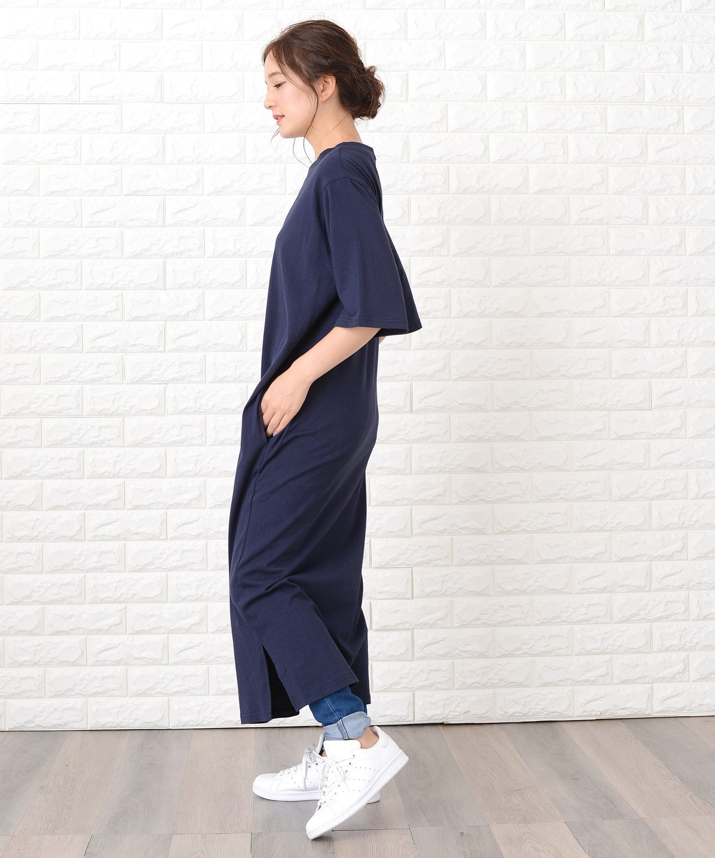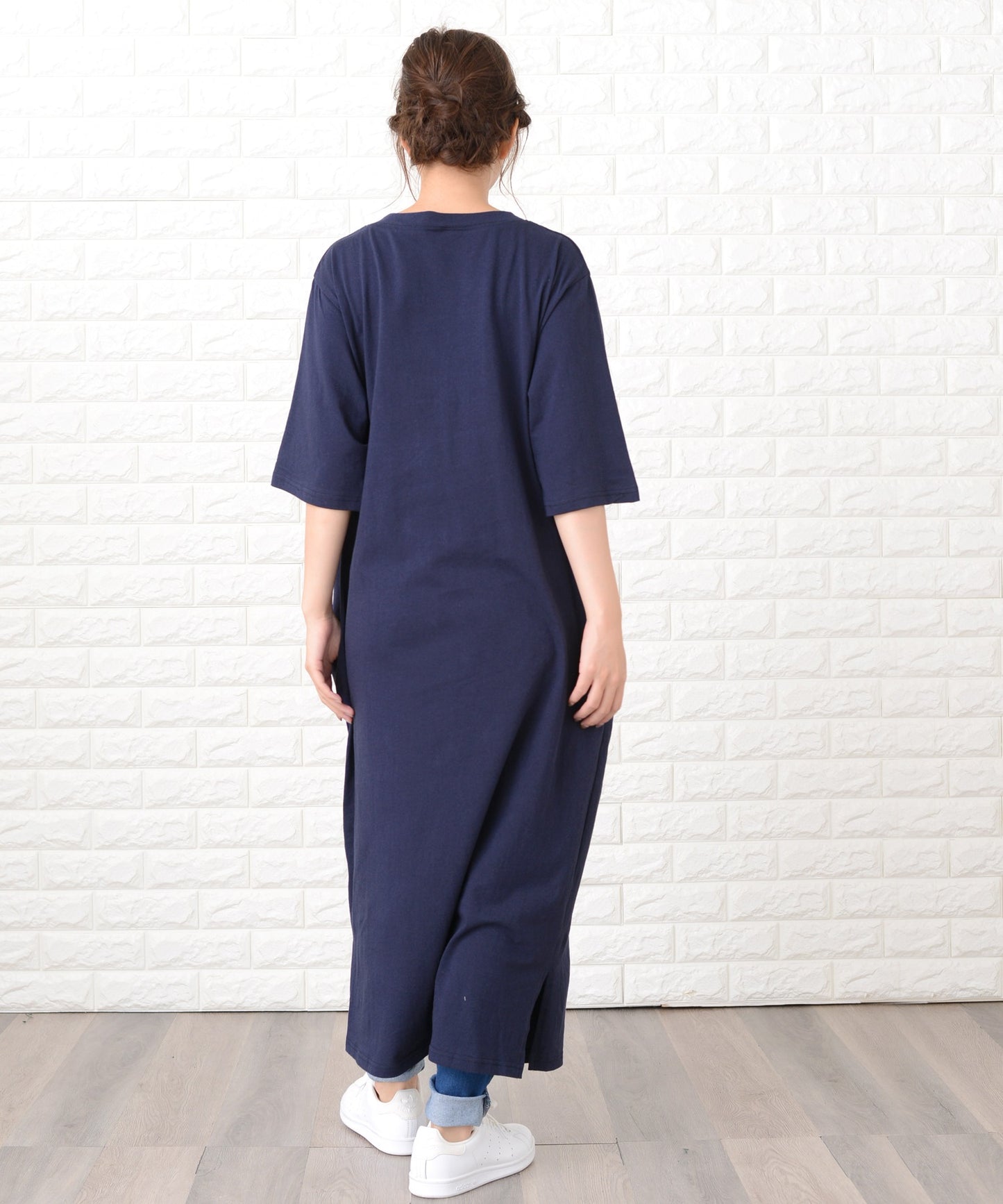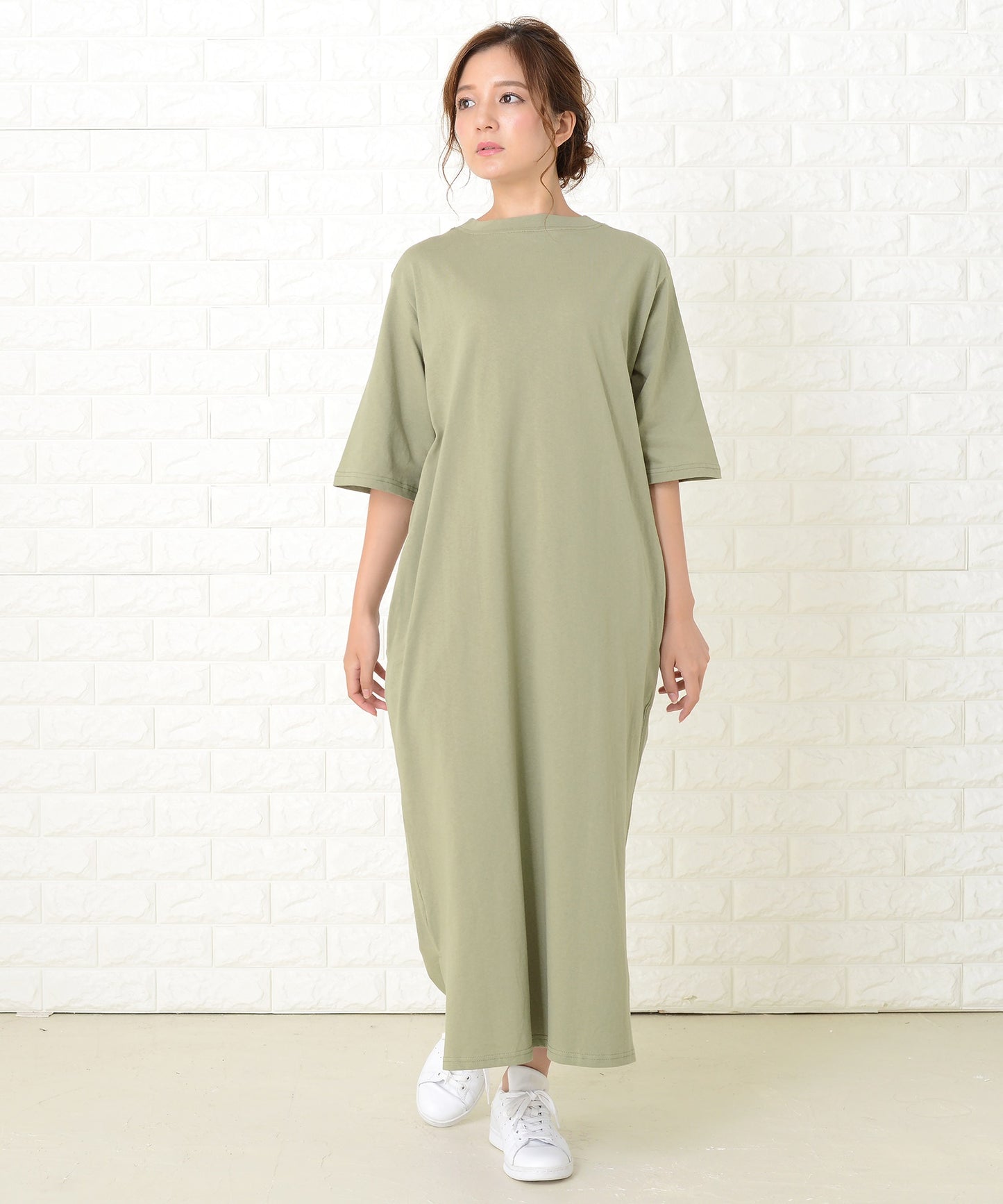 シンプル無地半袖ロングTシャツワンピース