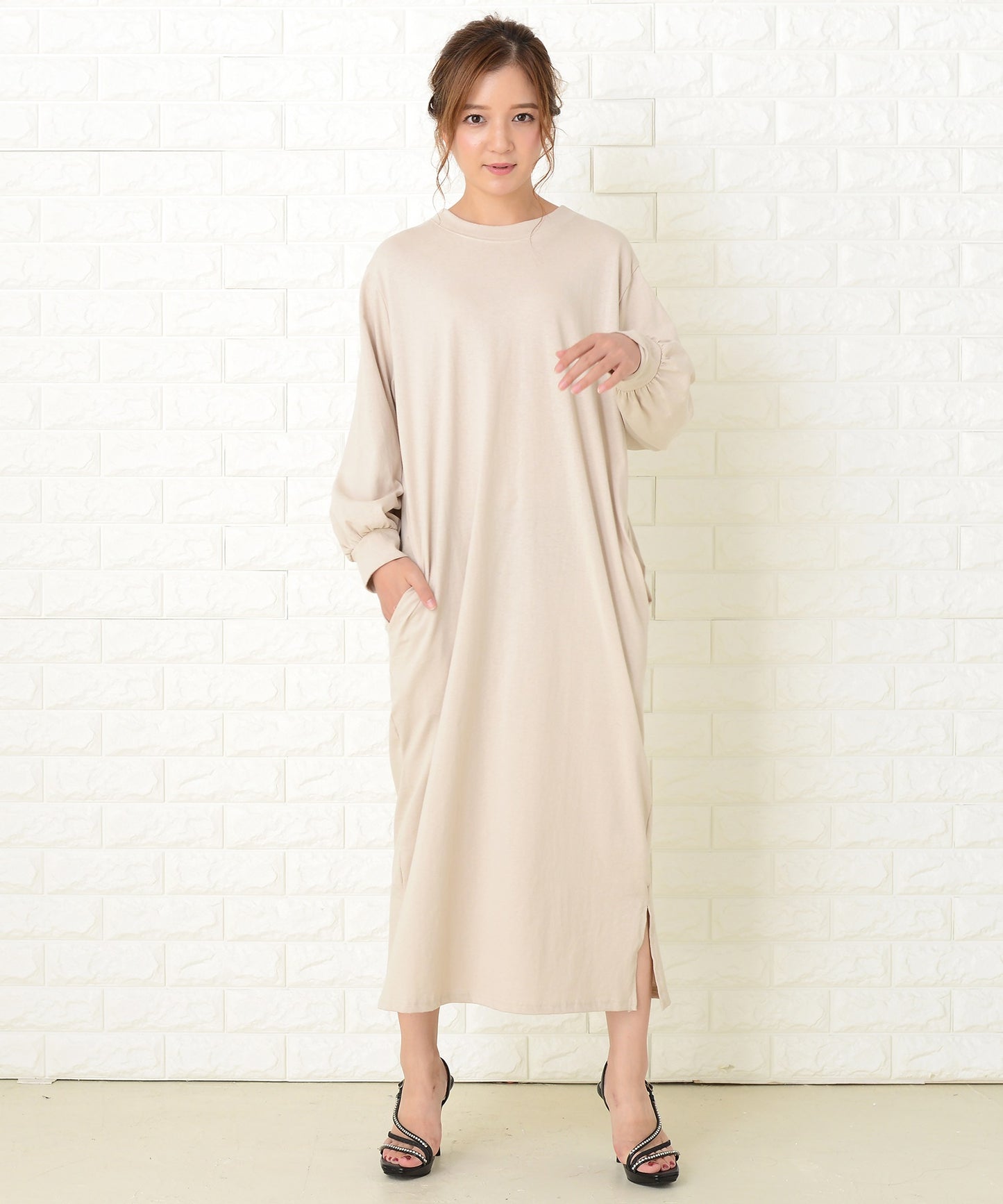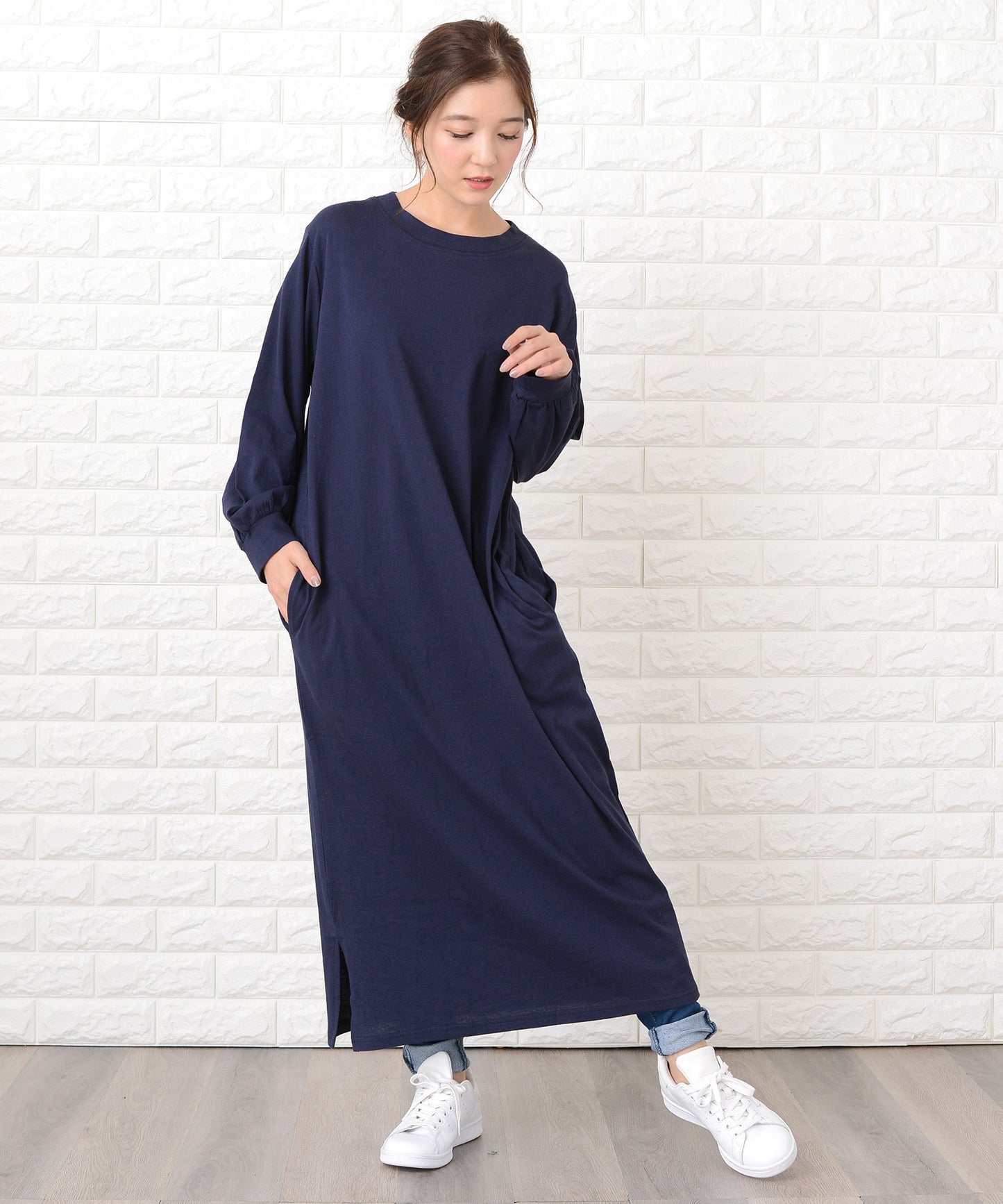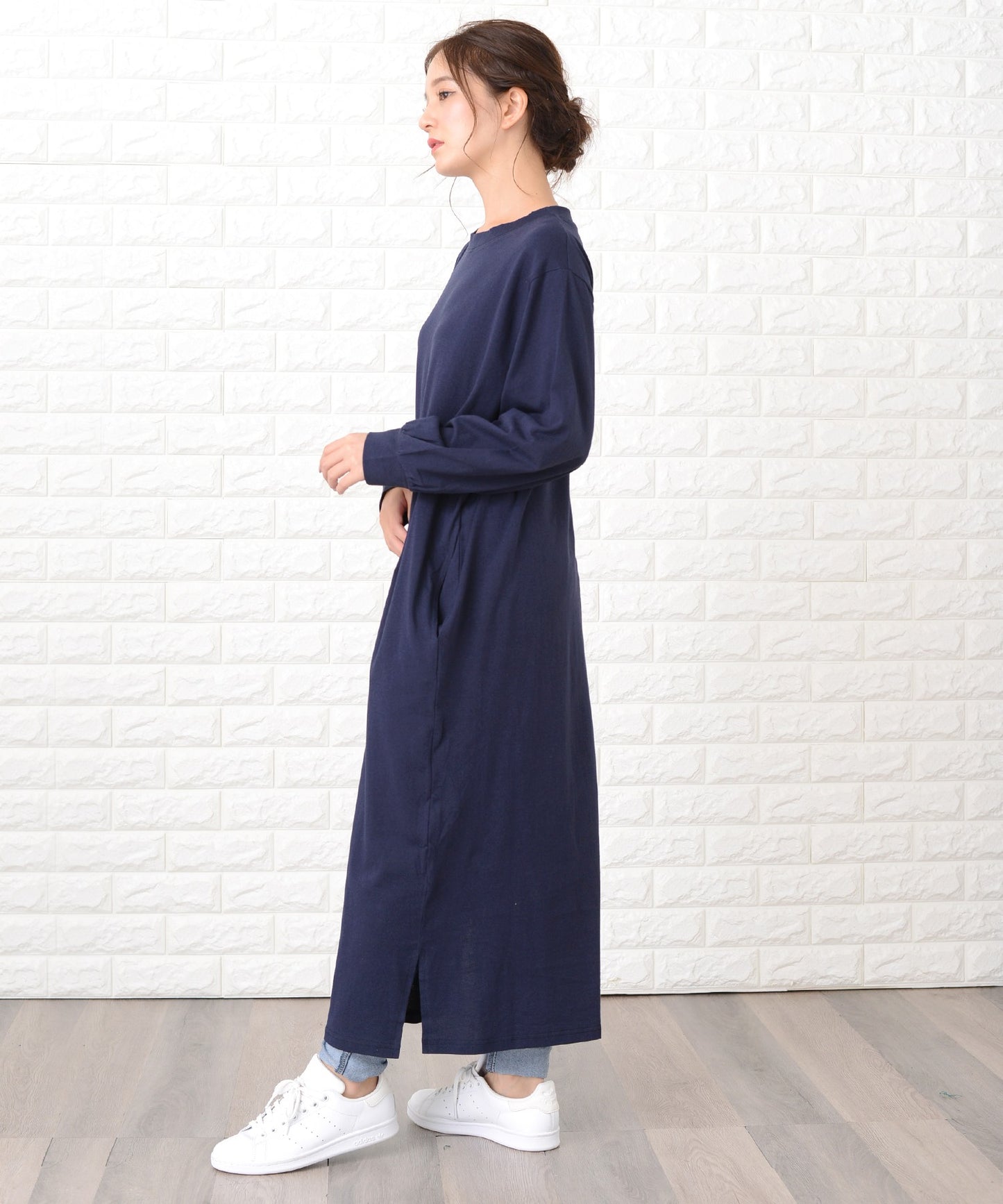 商品説明 | シンプルで着回し力抜群のTシャツワンピース 1枚でさらっと着られるマキシ丈で左右にスリットが入っているので ボトムやレギンスと合わせてもキレイに着られます。 |