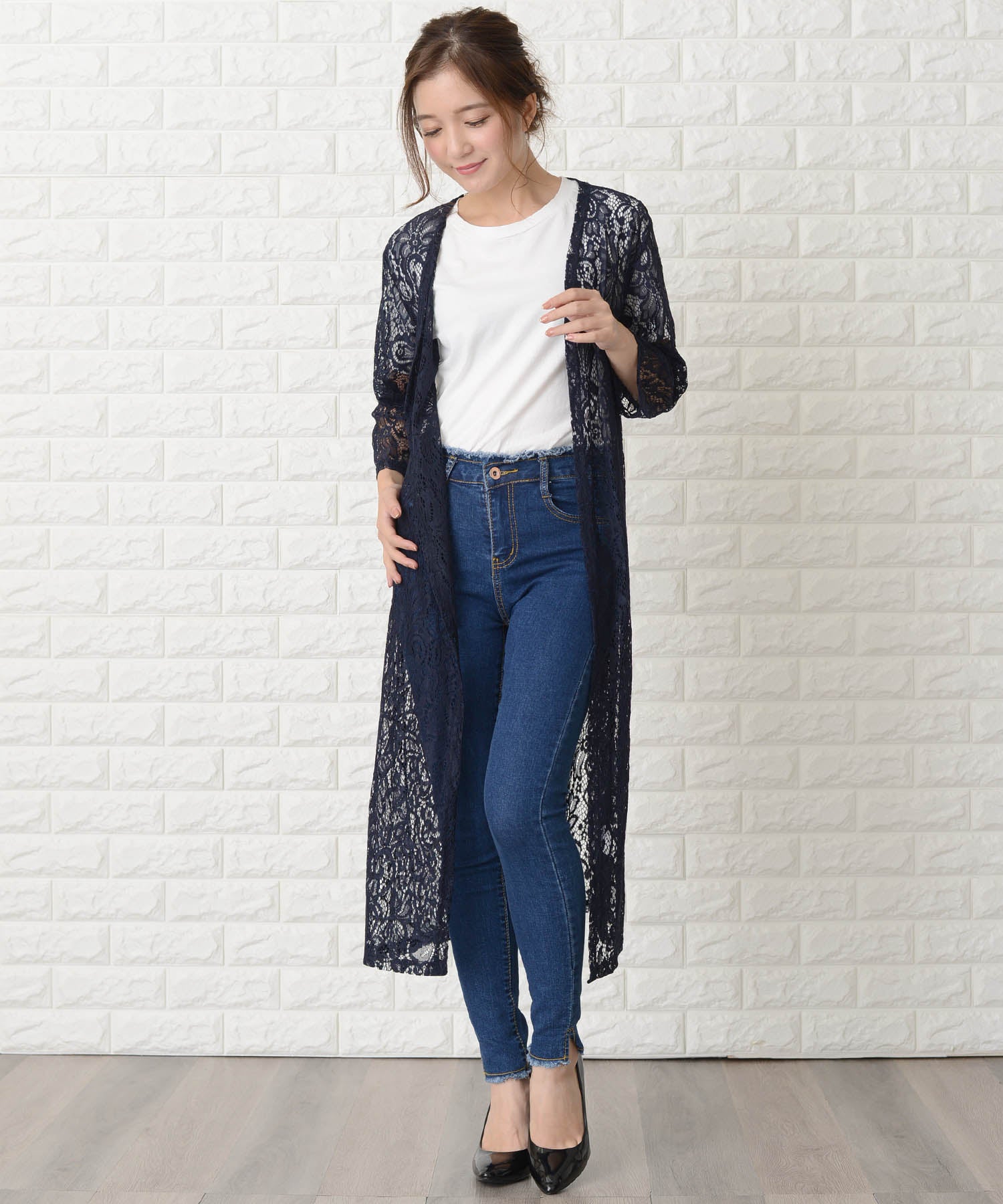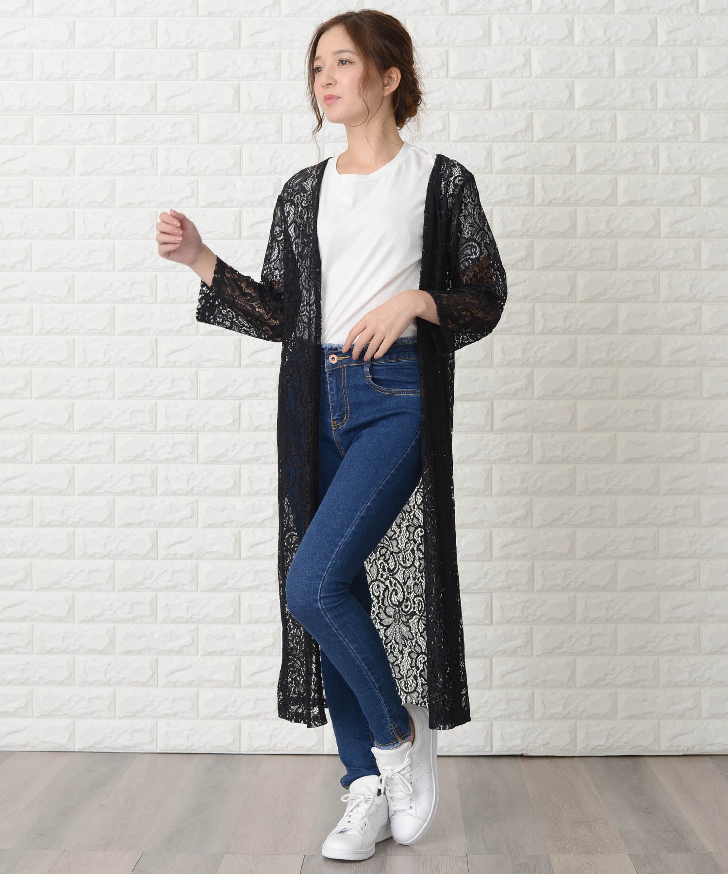 透け感のある花柄レースが可愛らしいロングカーディガン