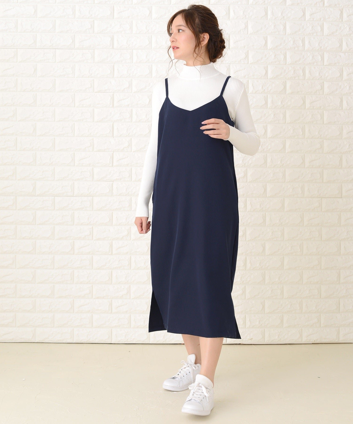 ノースリーブ ゆったり 裾スリット ロングキャミワンピース