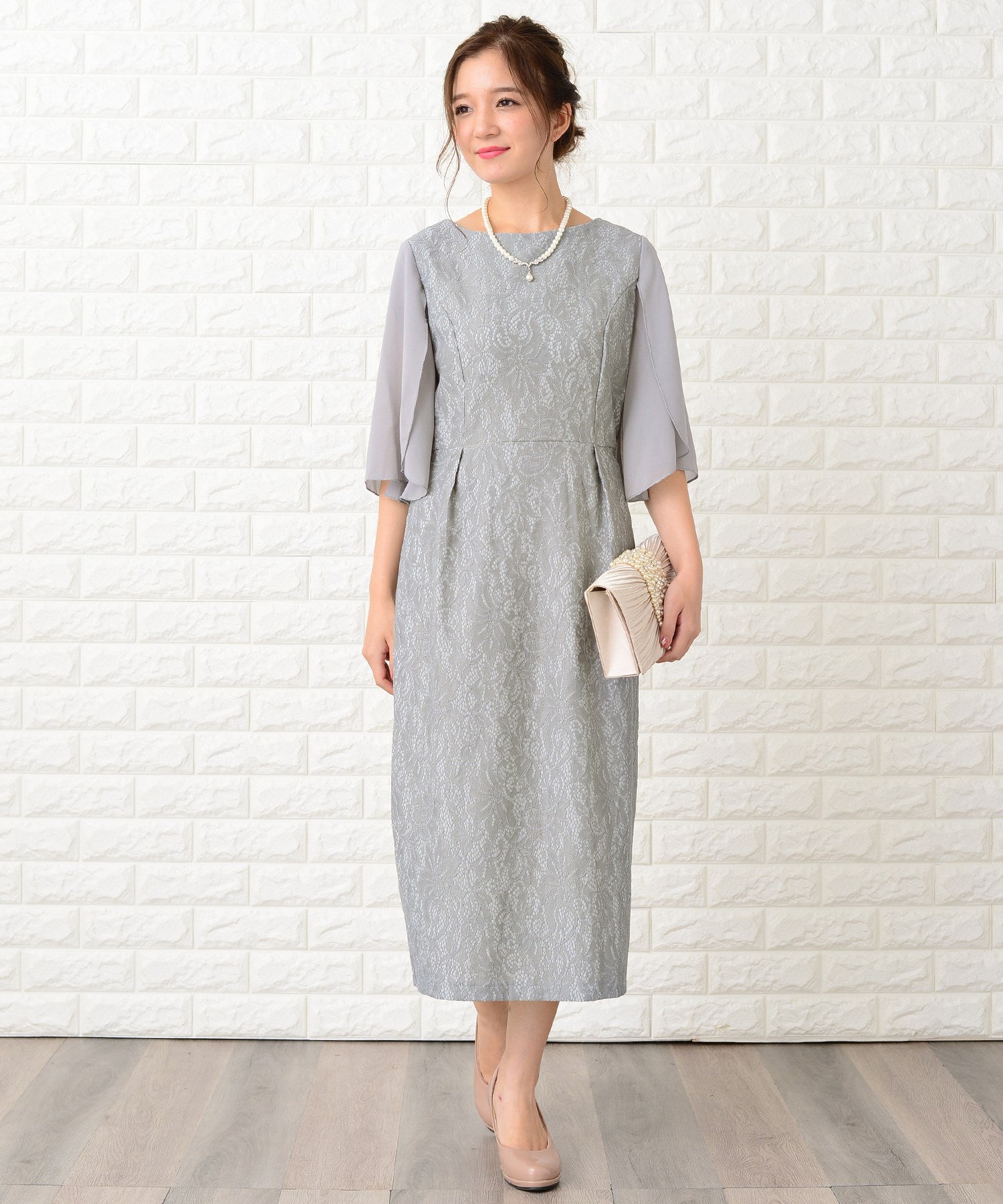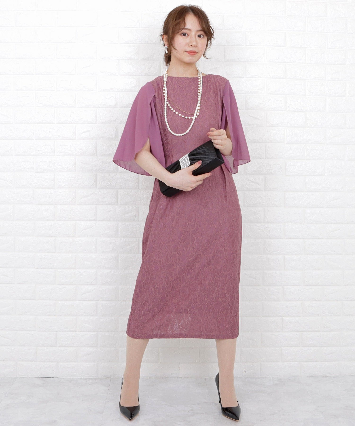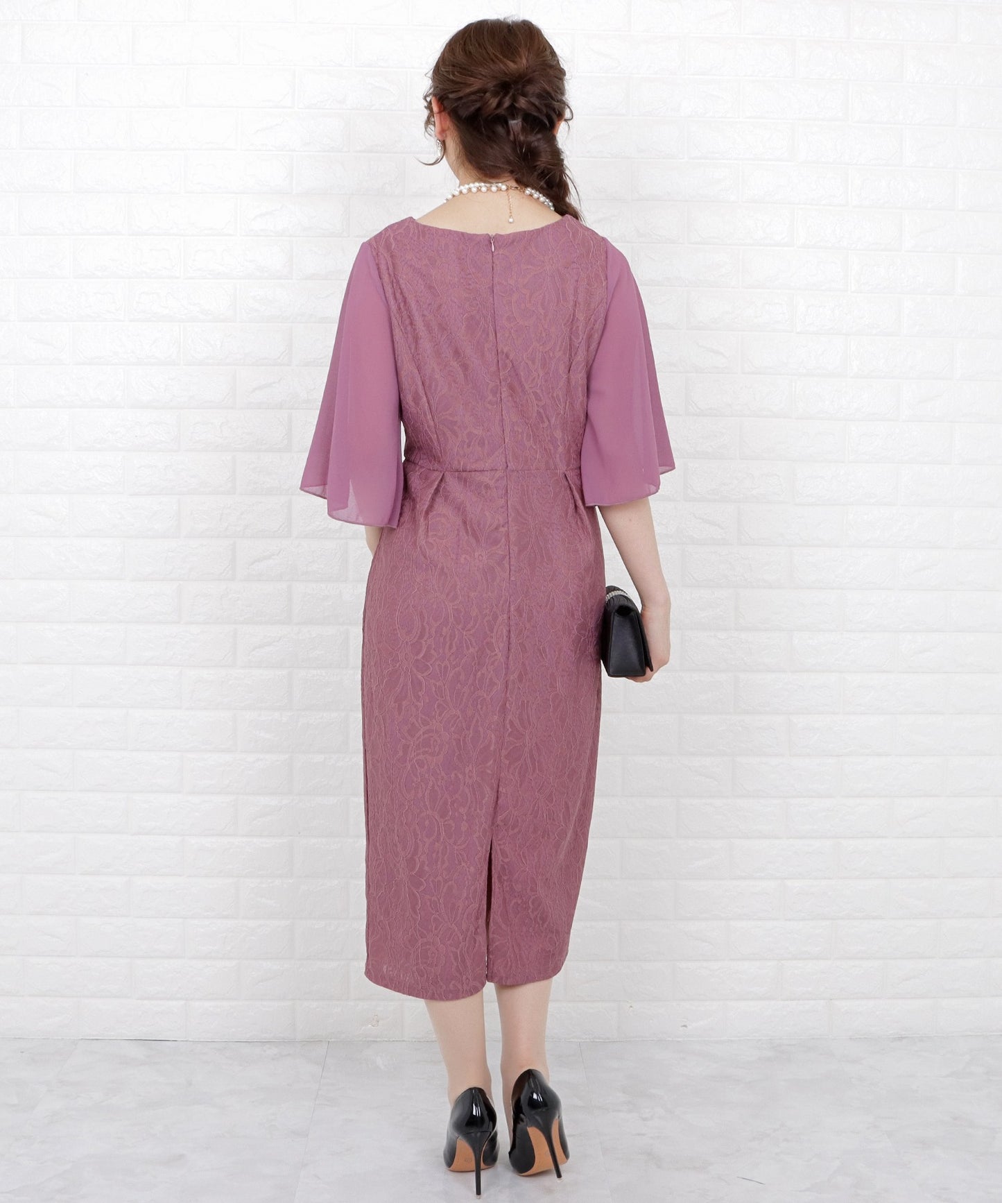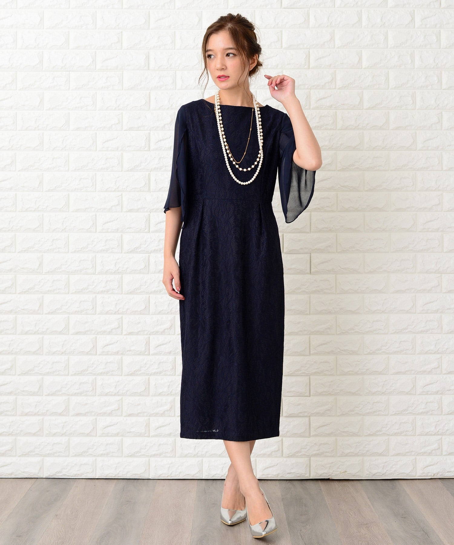 商品説明 | 上品な総レース仕上げのミモレ丈ドレスです。 ・選べる袖タイプ 腕の動きに合わせ表情を変えるフレア袖は、花柄レース袖、シースルー袖の2タイプから選べます。 スリットからちらりと覗く肌見えが大人っぽい印象にしてくれます。 ・ラインが美しいタイトドレス タック入りのタイトドレスが、女性らしいシルエットを作り出します。 ウエスト位置が高めにとってあり、スラリとスタイルよく見せてくれます。 ・上品なミモレ丈 ワンピースは上品な丈感でフォーマルなシーンにもぴったり。 年齢を問わず着られます。 |