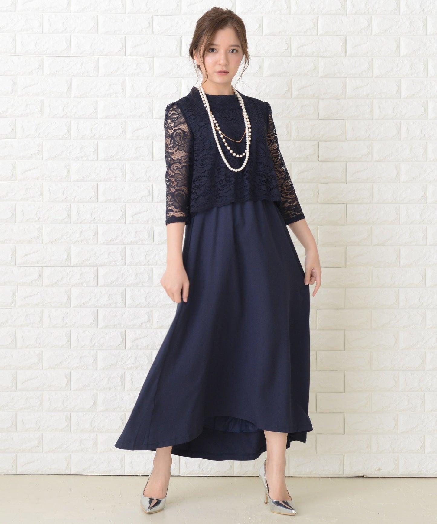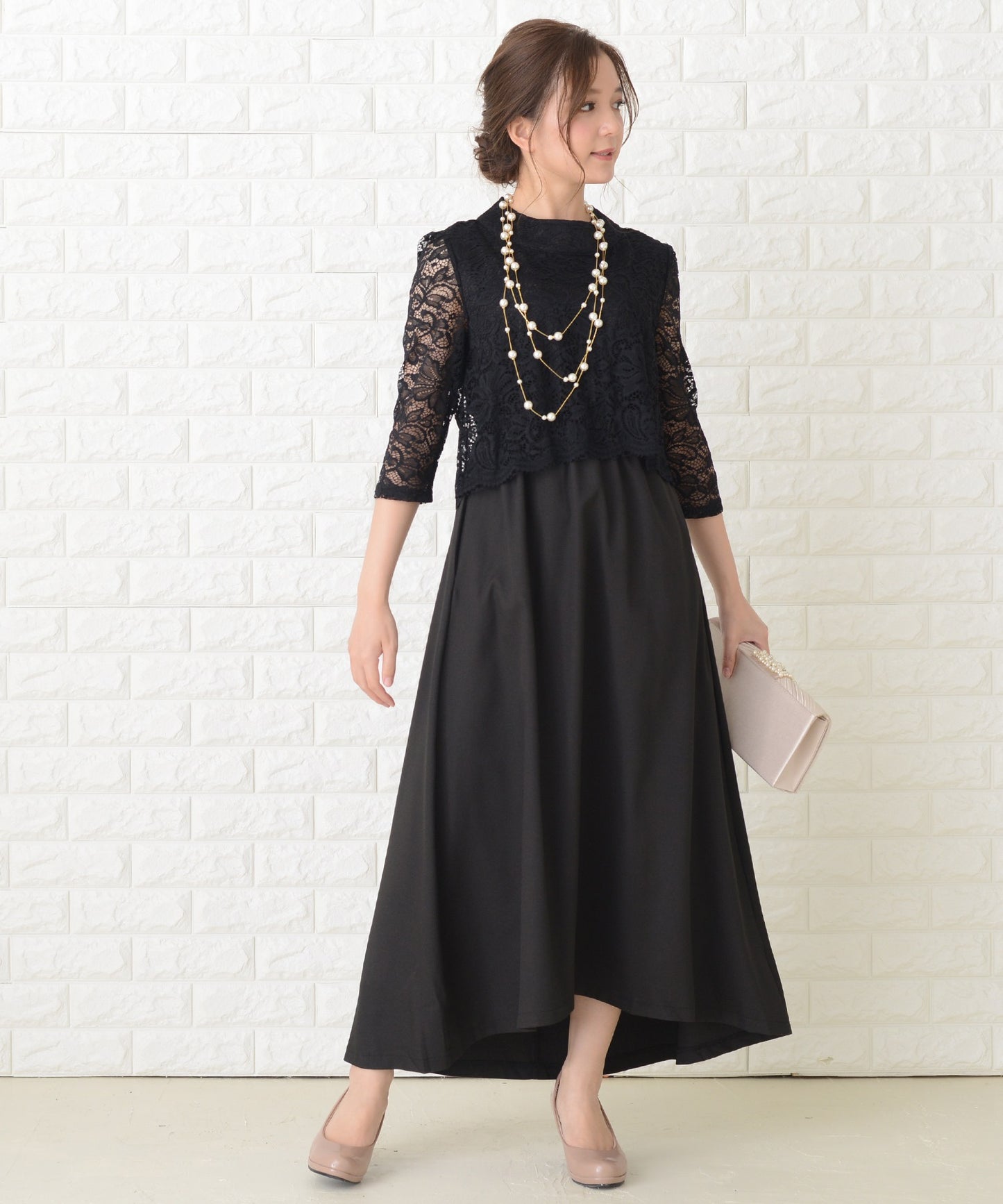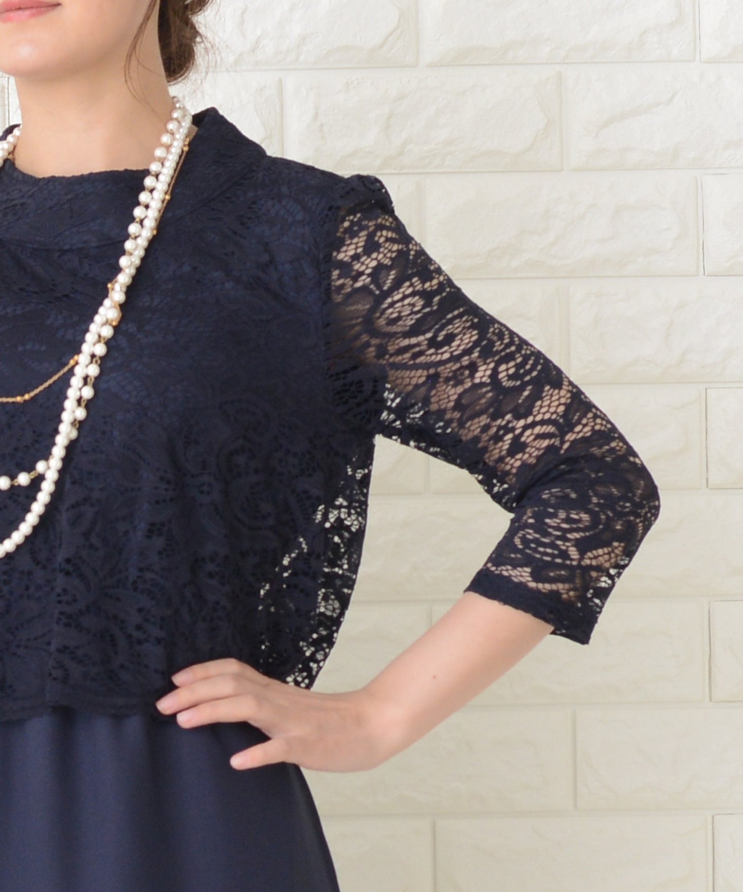 商品説明 | 人気のハイネック+ロング丈のレースドレスです。 レーストップスで高級感を演出。 フィッシュテールタイプのスカートは上品なロング丈。 レース状の七分袖は伸縮性あり。またウエストもゴムタイプなのでゆったり着られます。 結婚式などパーティシーンや、カジュアルダウンして普段のコーディネイトなど幅広いシーンで活躍する一着です。 |