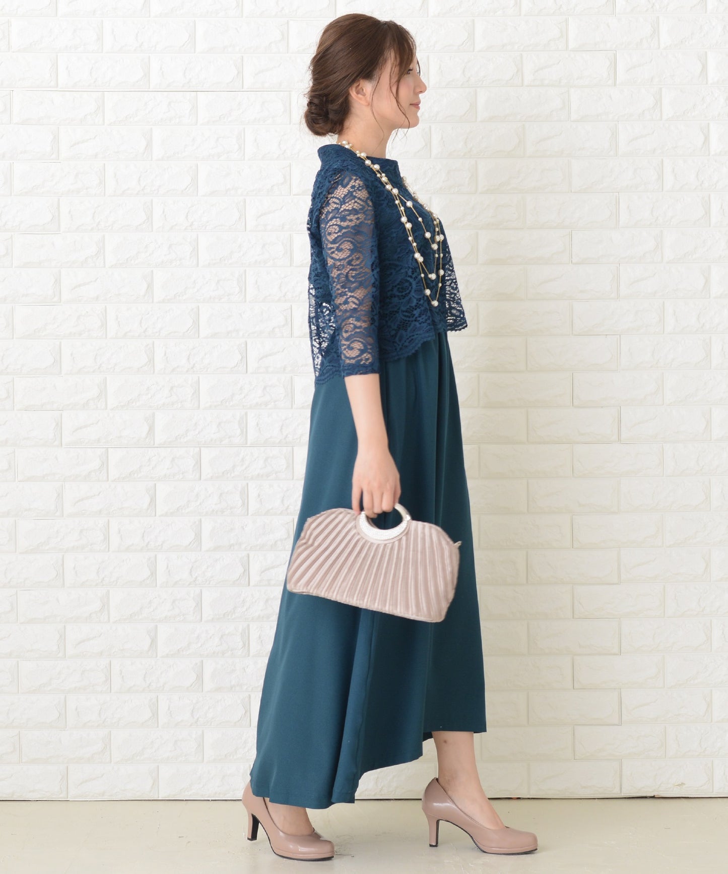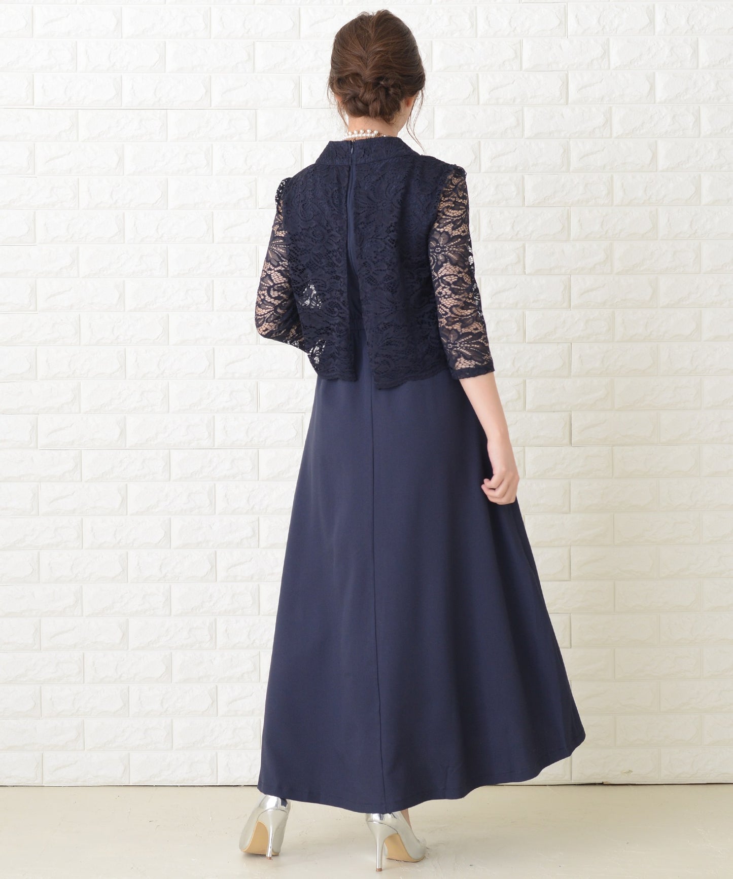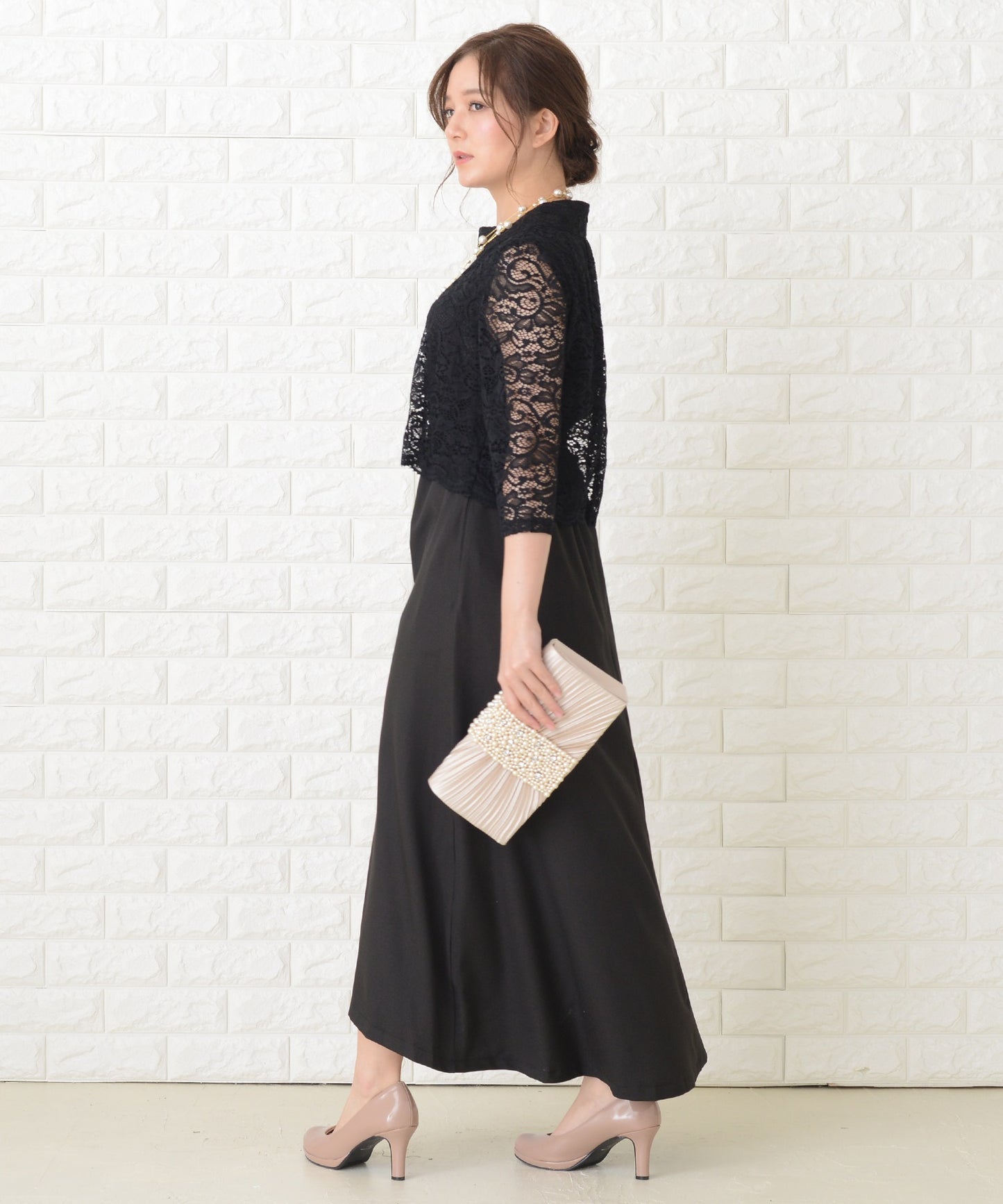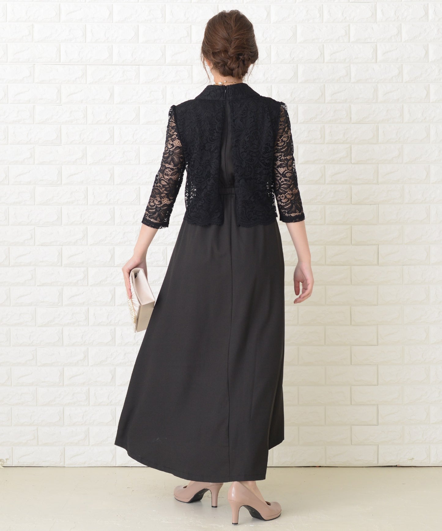 商品説明 | 人気のハイネック+ロング丈のレースドレスです。 レーストップスで高級感を演出。 フィッシュテールタイプのスカートは上品なロング丈。 レース状の七分袖は伸縮性あり。またウエストもゴムタイプなのでゆったり着られます。 結婚式などパーティシーンや、カジュアルダウンして普段のコーディネイトなど幅広いシーンで活躍する一着です。 |