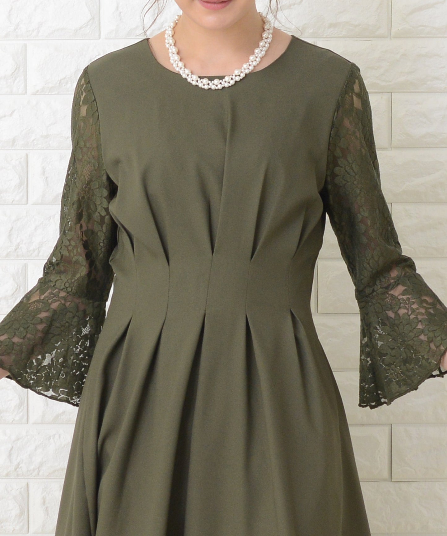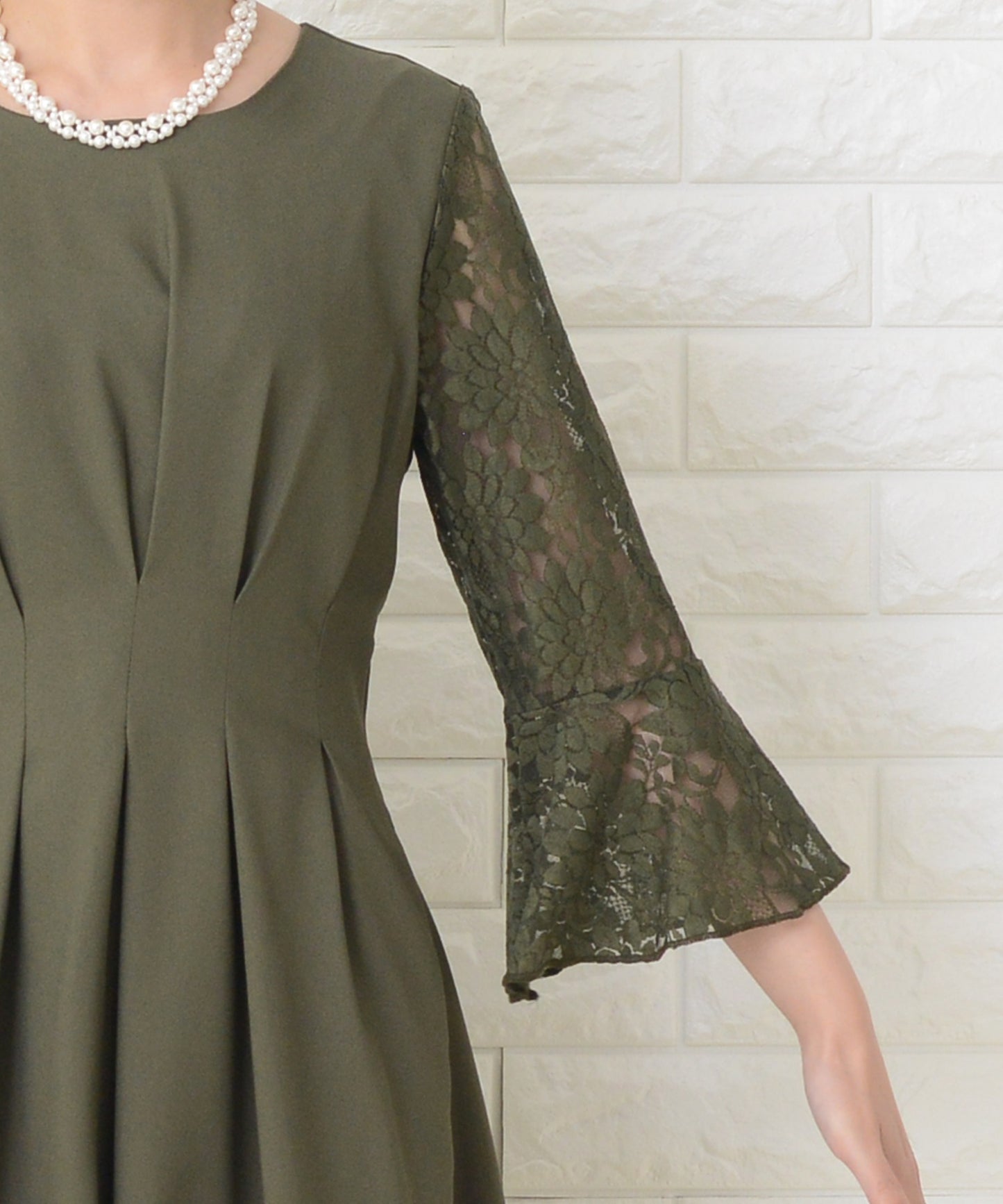 レース 切り替え 6分袖 ナロー ワンピース