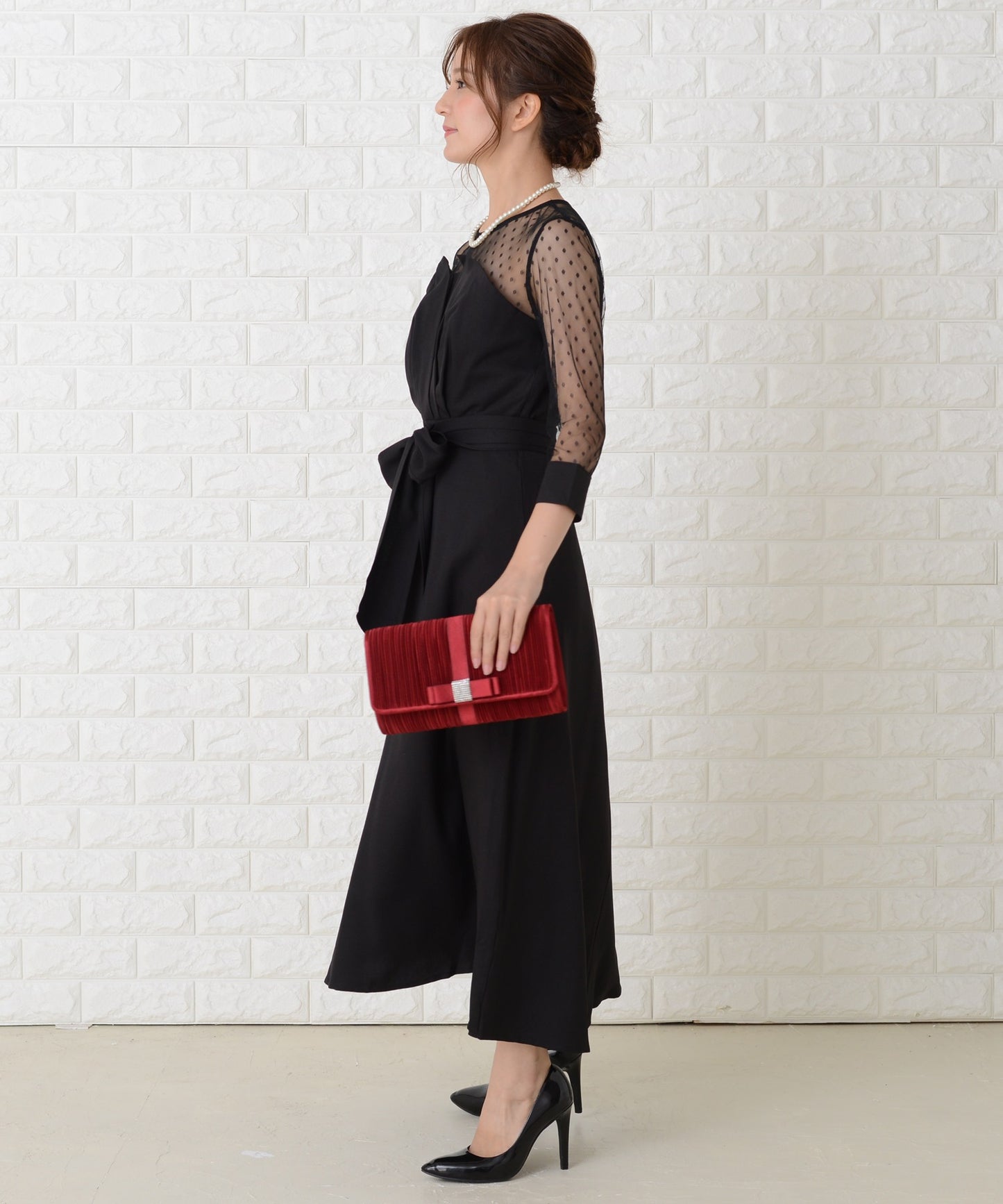 ベロア シアー フリルケープ付き ノースリーブ ドレス 3点セット