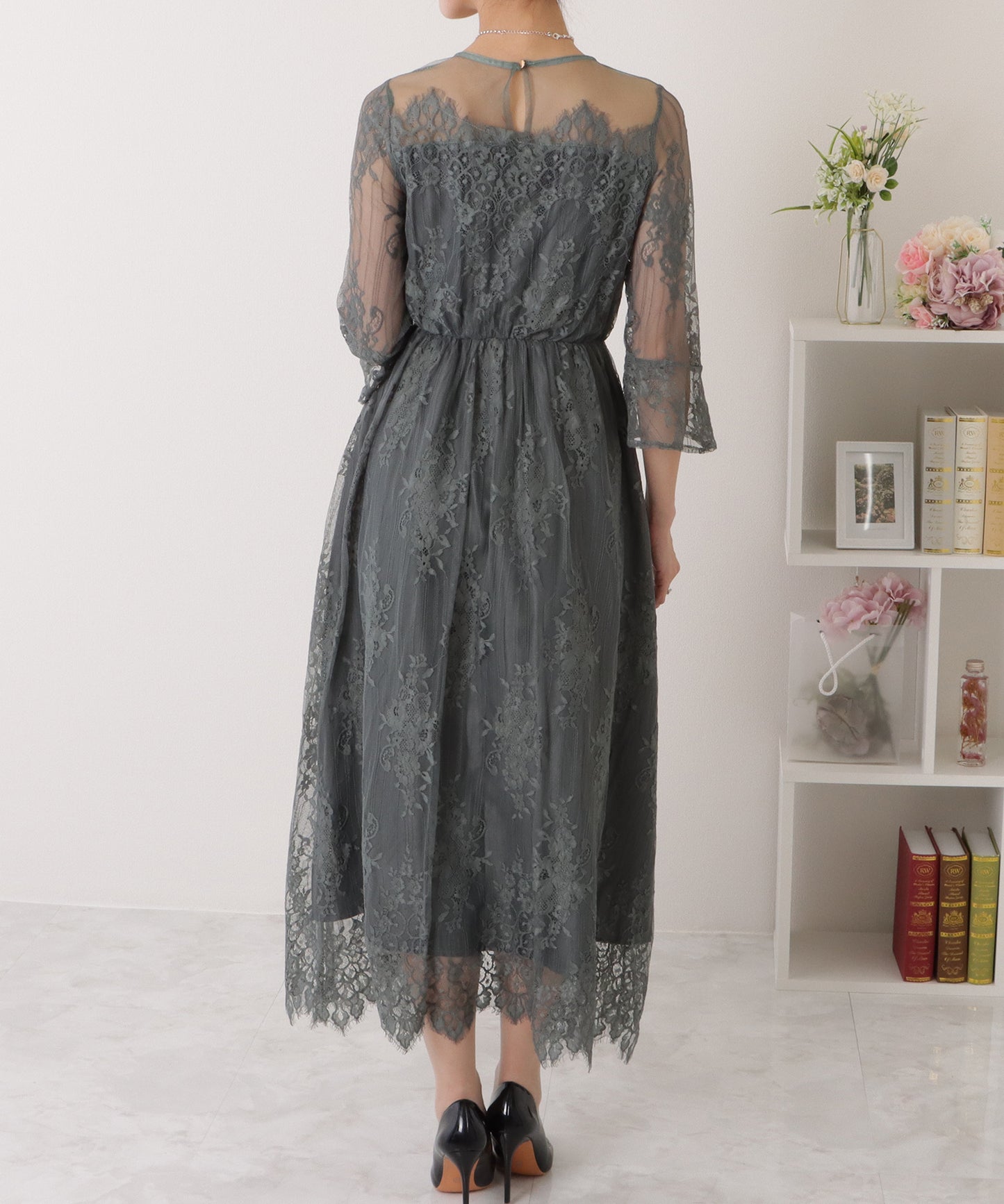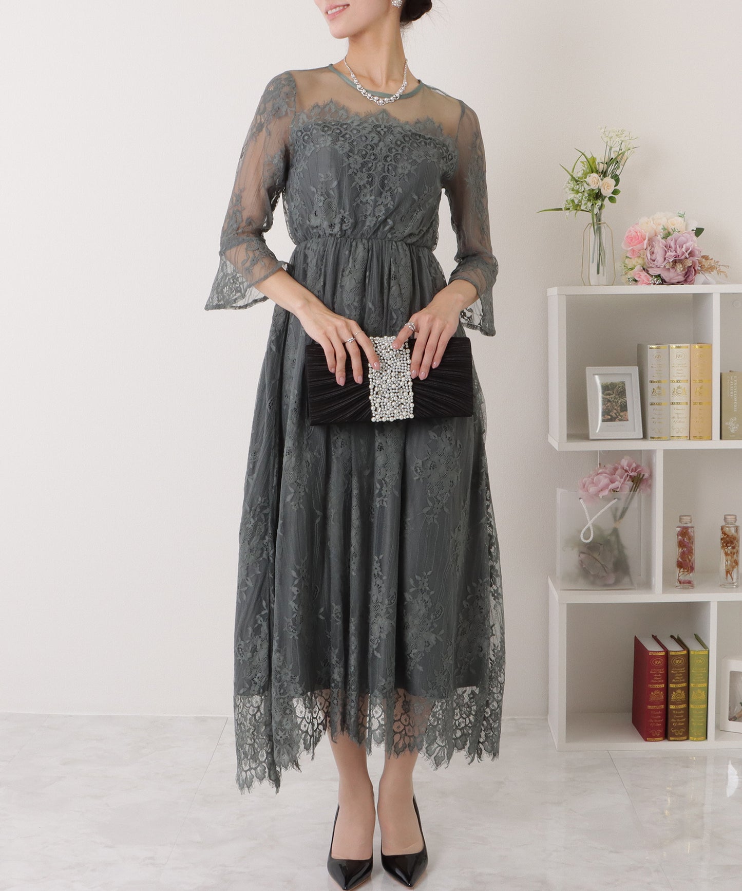 商品説明 | レース使いが華やかな、人気の総レースドレスに新作が登場! シアーな透け感が大人っぽい繊細な花柄レースを採用。 7分丈のフレアスリーブはレースのシ透け感で重たく見せず、自然と二の腕をカバーしてくれます。 さらにバックウエストはゴムタイプなので、ストレスフリーな着心地を実現。 ふんわり広がるフレアスカートはエレガントなロング丈。 裾はスカラップカットデザインでリッチなレース使いと相まってよりゴージャスな印象を与えます。 結婚式、パーティー、二次会、女子会、謝恩会、成人式、食事会、同窓会、ママ行事、オフィス、デート、演奏会、発表会などにご着用頂けます。 |