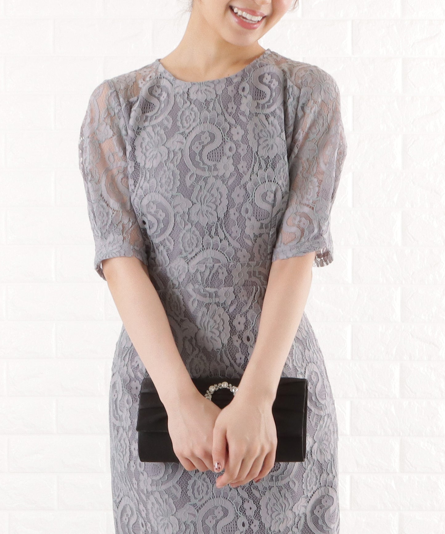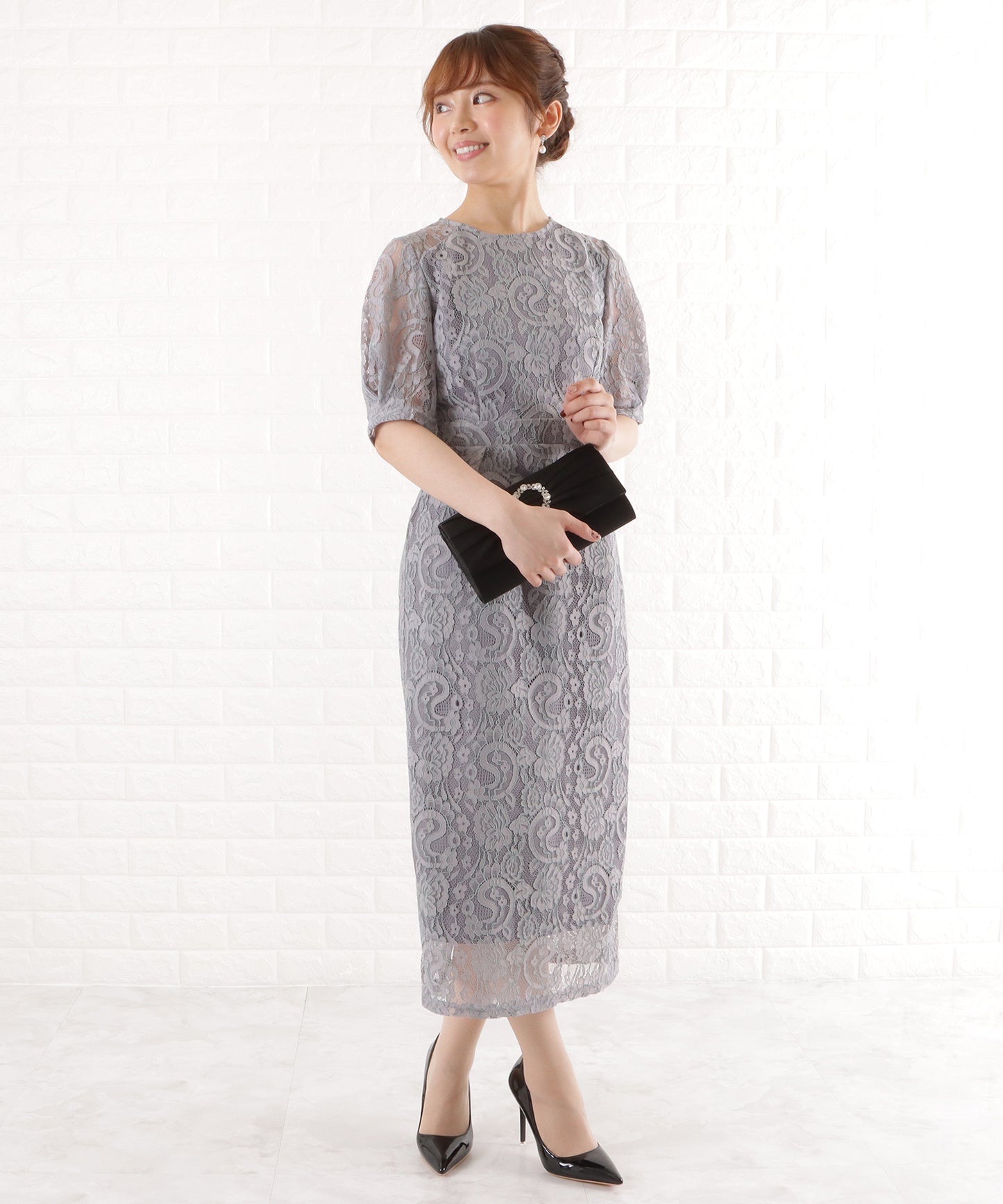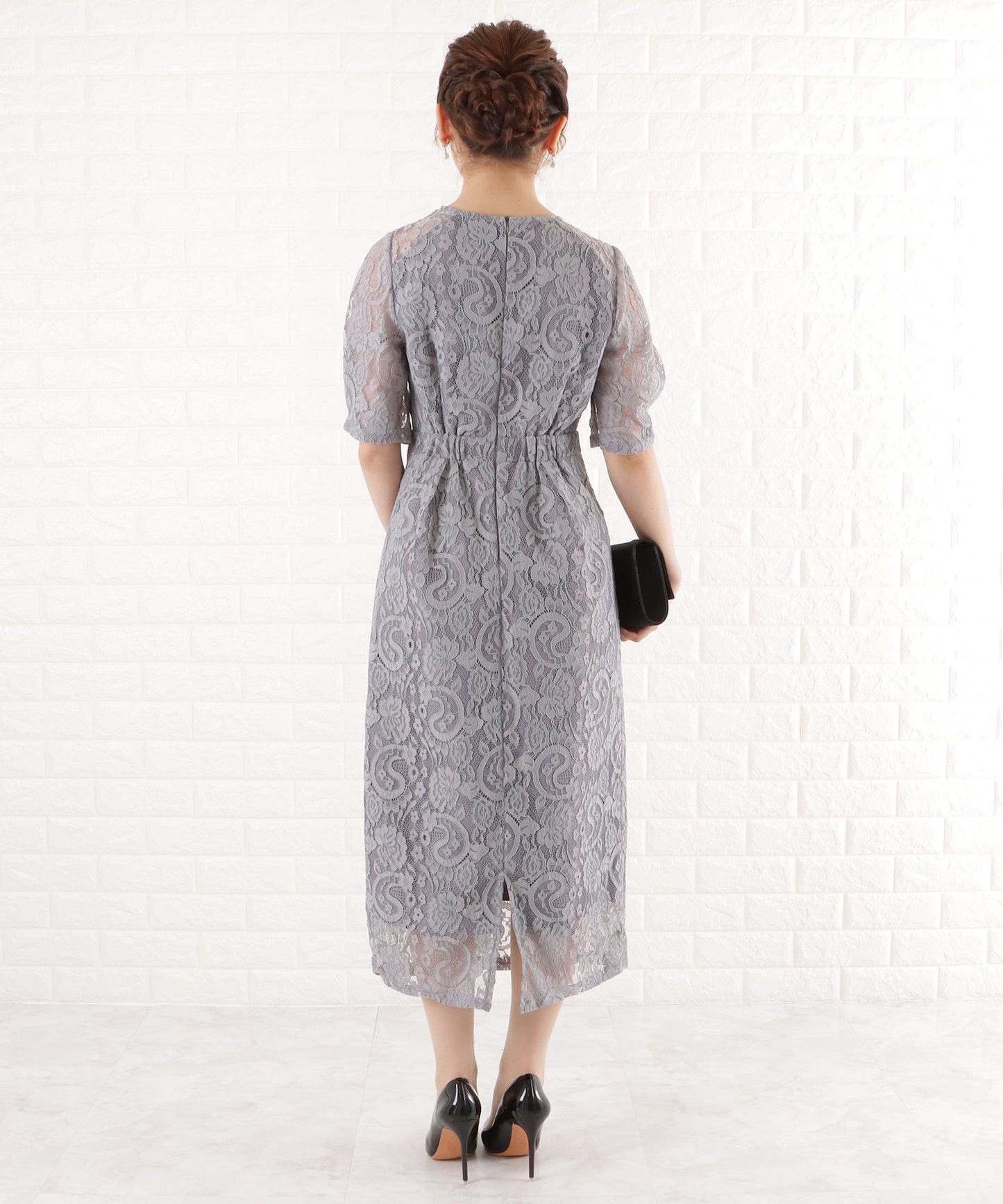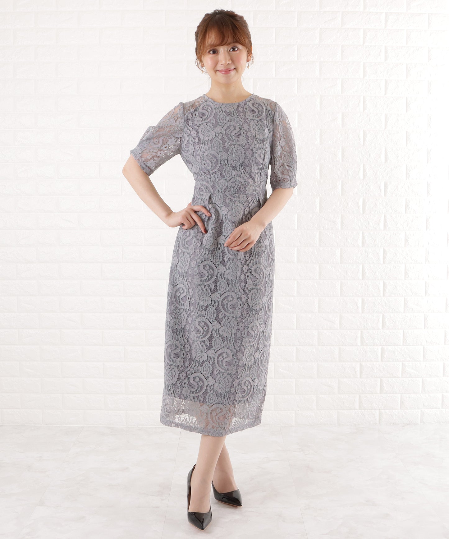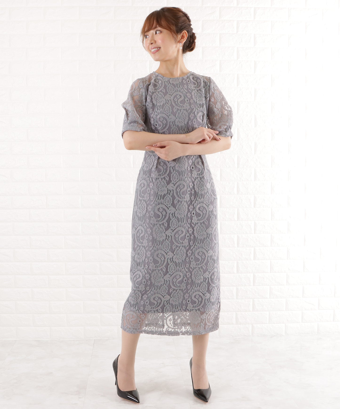 ペイズリー×花柄の上品な総レースワンピースドレス。 ※アクセサリー類は含まれません |