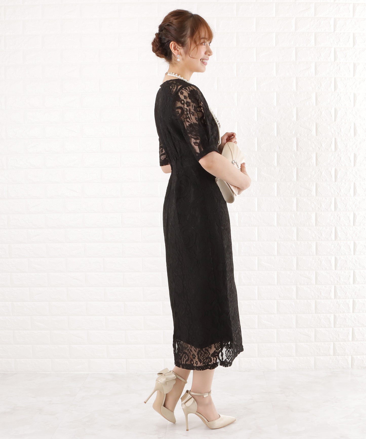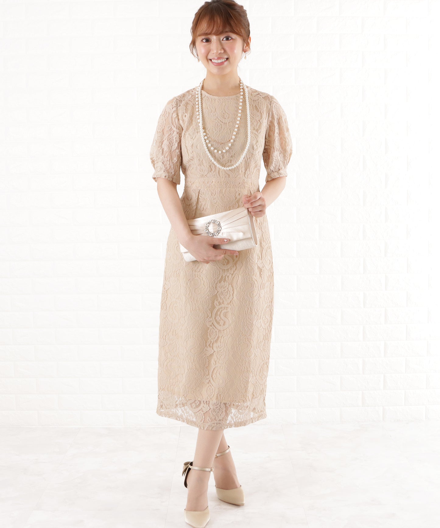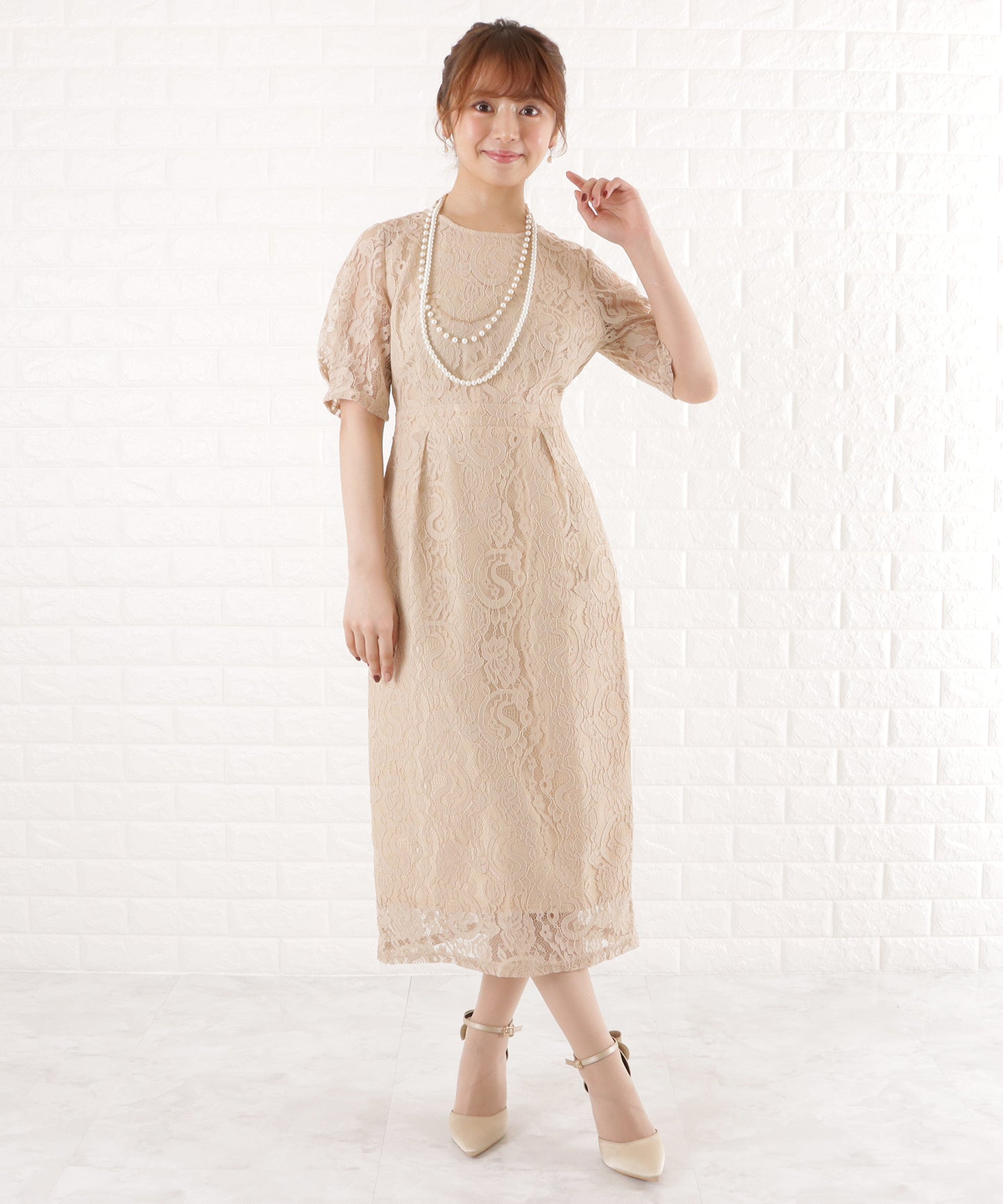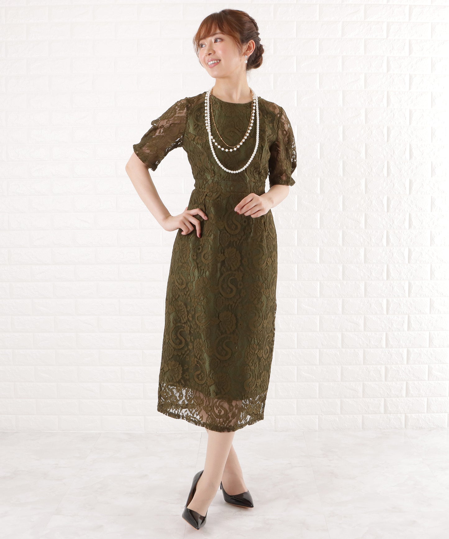 ペイズリー×花柄の上品な総レースワンピースドレス。 ※アクセサリー類は含まれません |