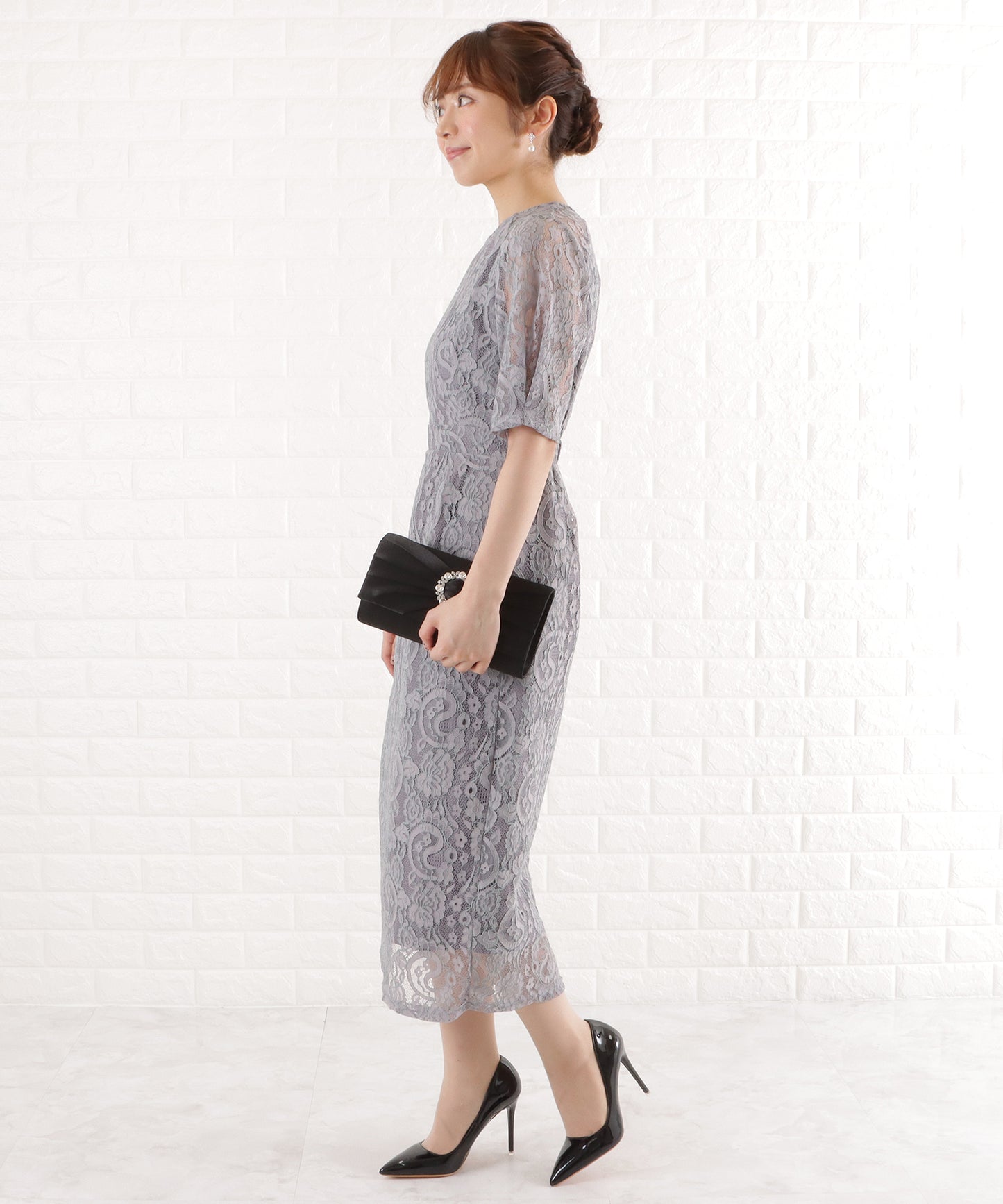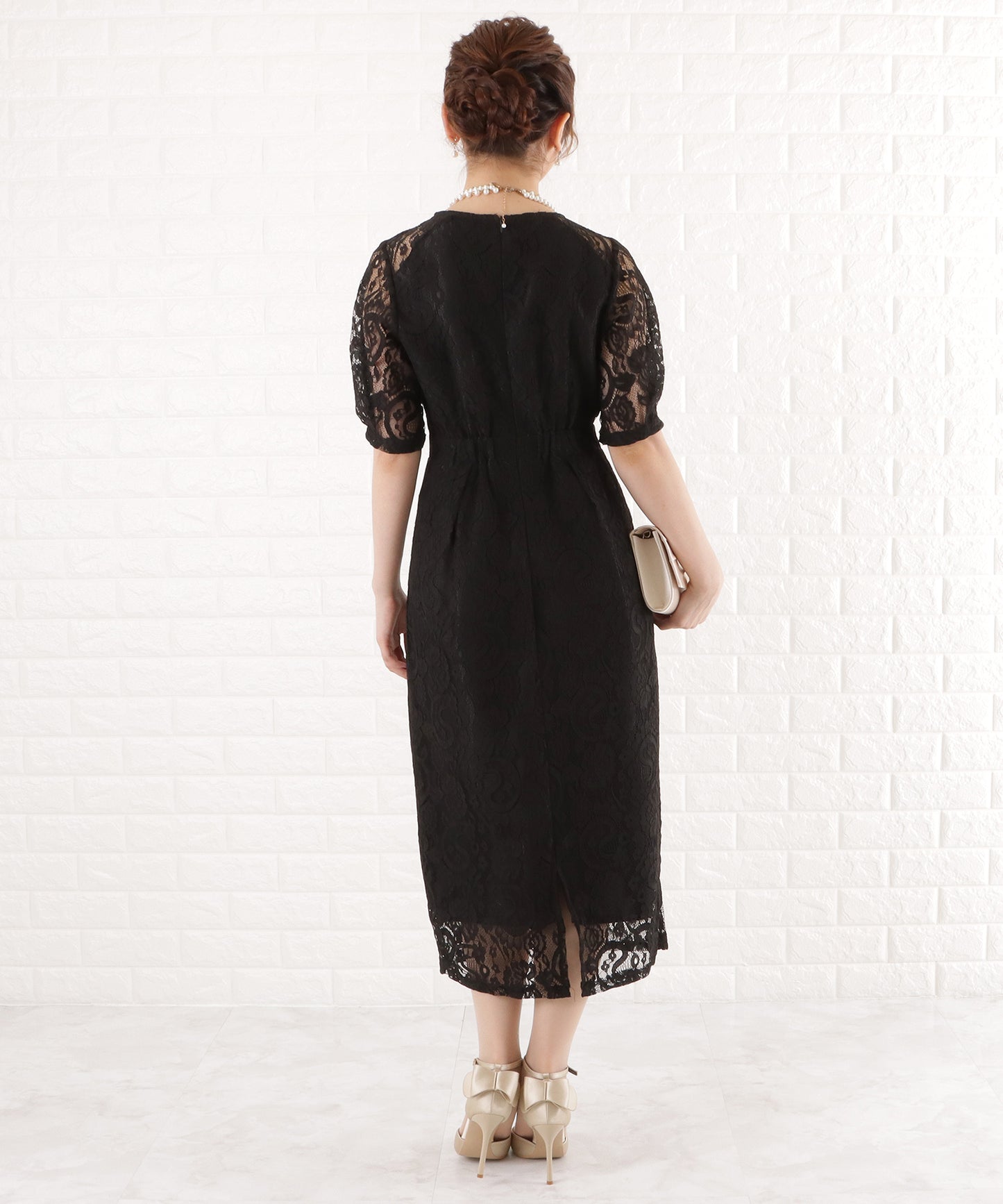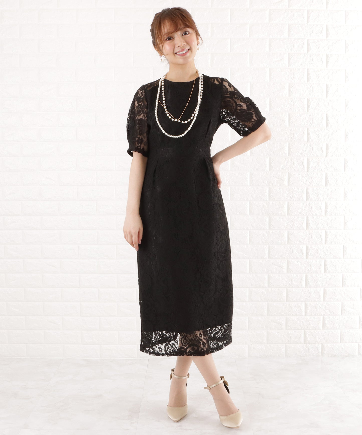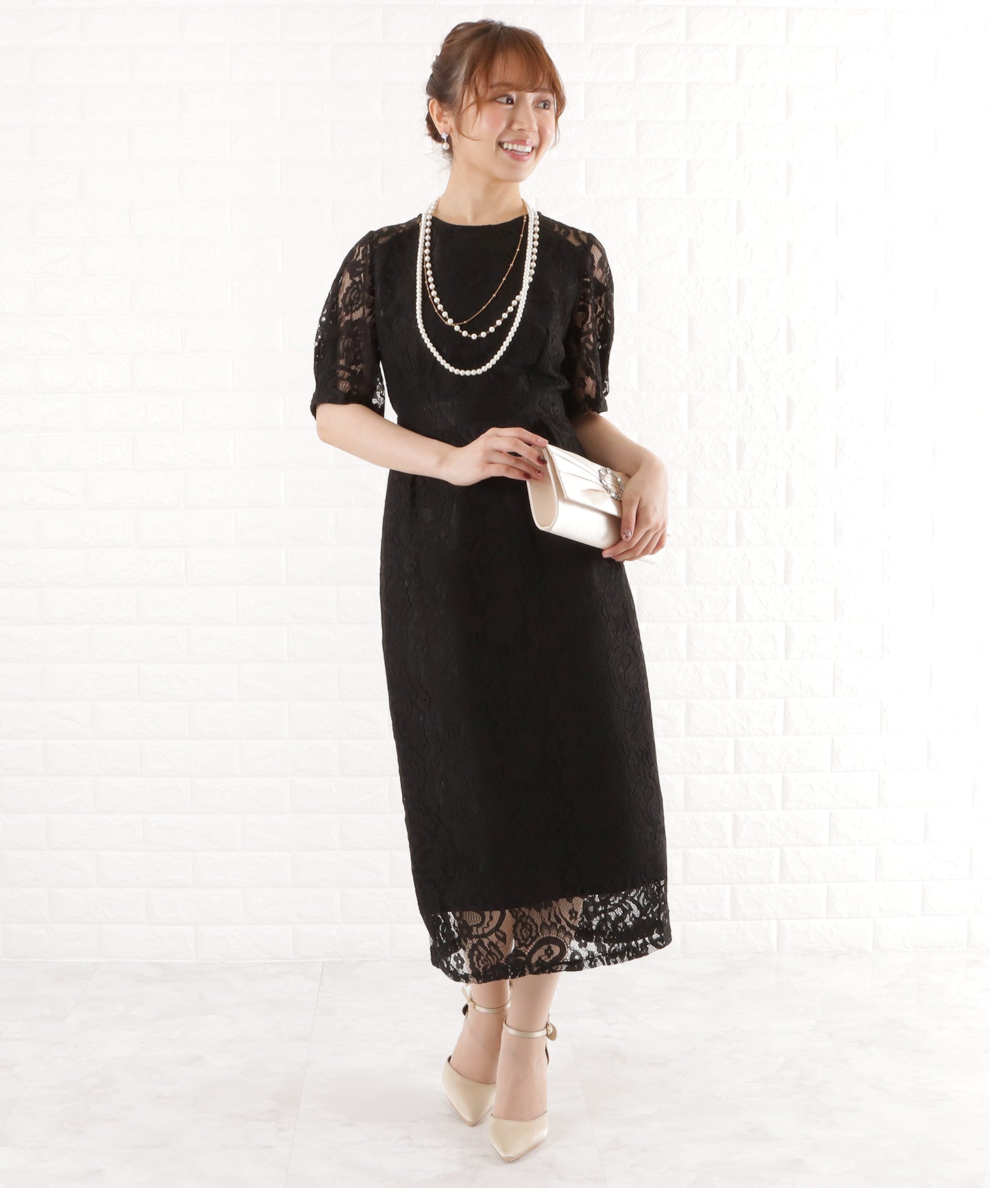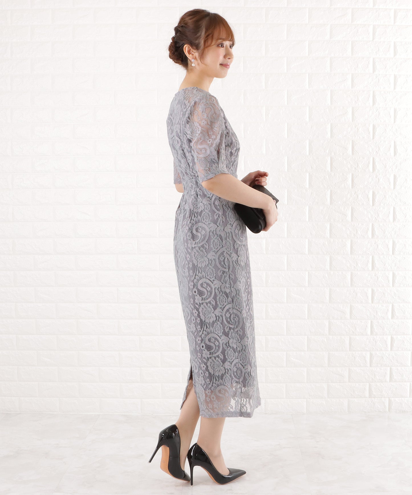 ペイズリー×花柄の上品な総レースワンピースドレス。 ※アクセサリー類は含まれません |
