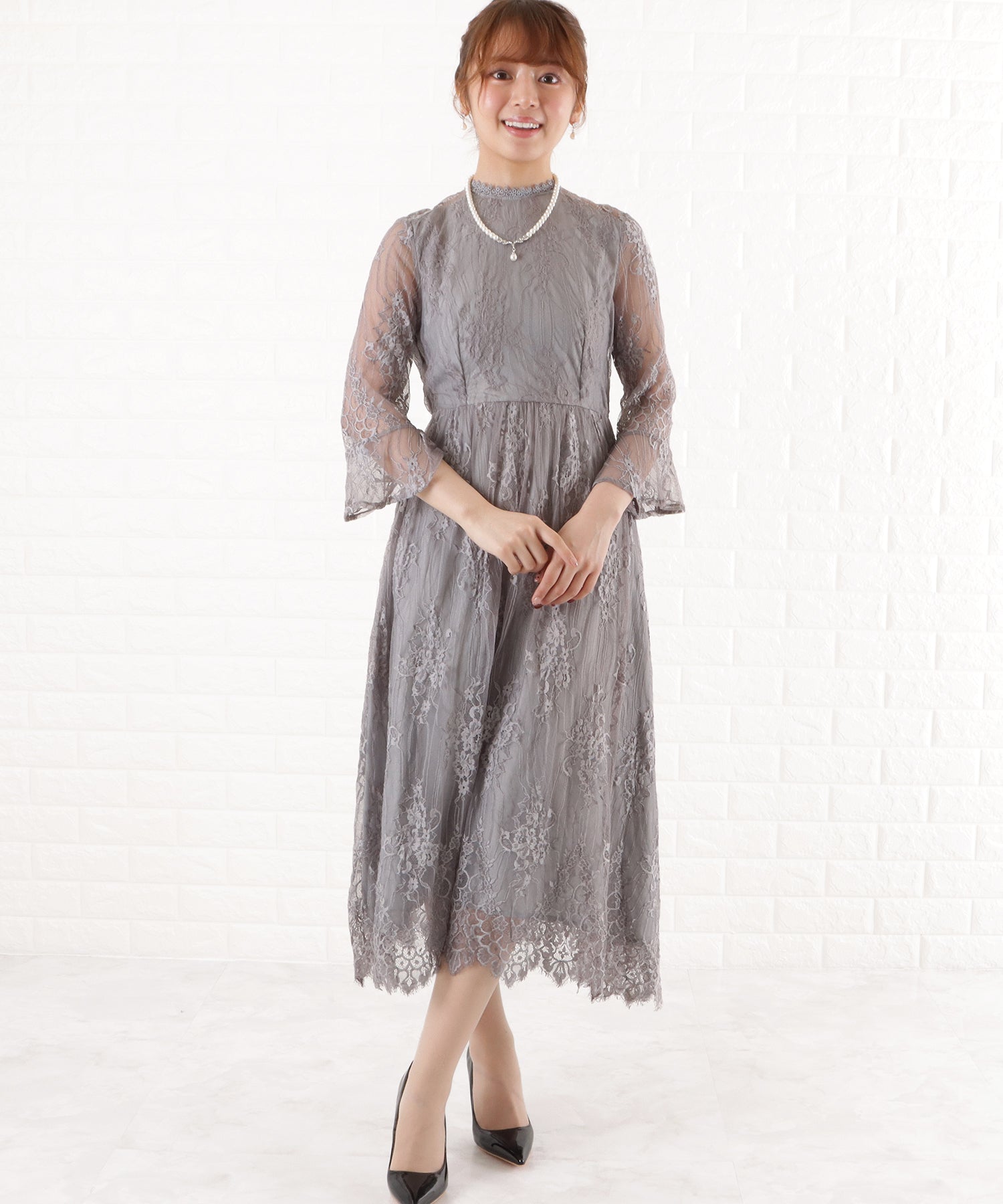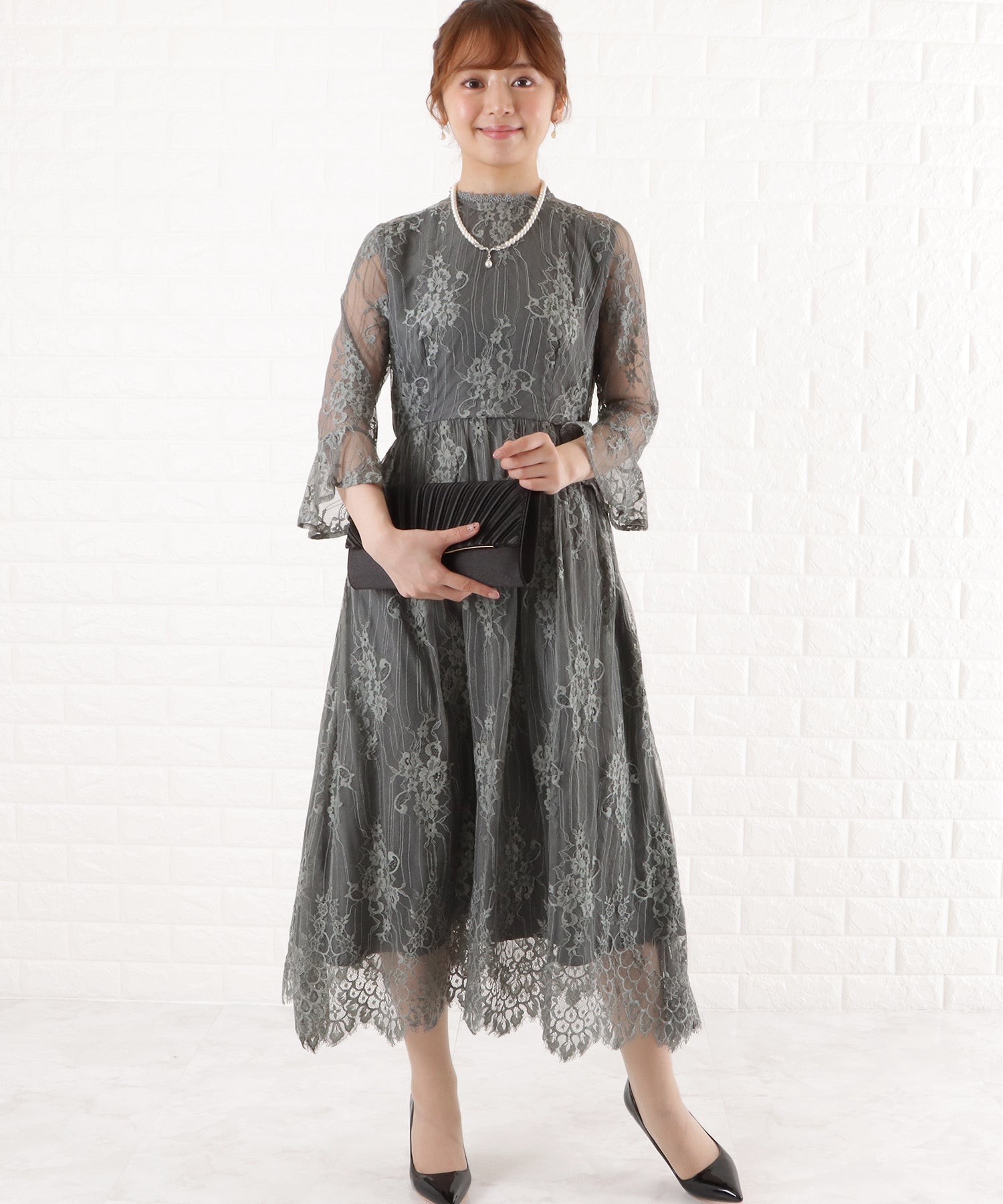 | 商品説明 | アンティーク調の花柄レースが印象的なロングワンピースドレス。 シックなカラー展開で、落ち着いた大人の女性を演出する1着です。 首元は異なるレースを使用したプチハイネックで、きちんと感のある印象に。 袖口にふんわり広がりを持たせた七分袖は、手元を華奢に見せます。 ウエストはゴム仕様で窮屈感がなく、リラックスして着用いただけます。 裾にも透け感があるので重たく見えないのもポイントです。 羽織りいらずで、これ1枚で華やかに決まります。 |