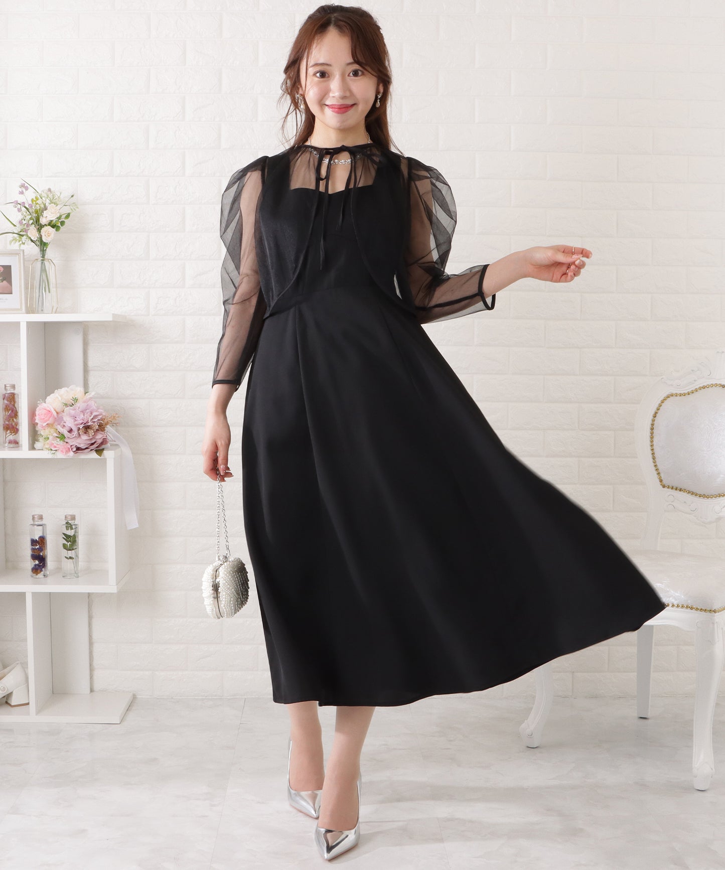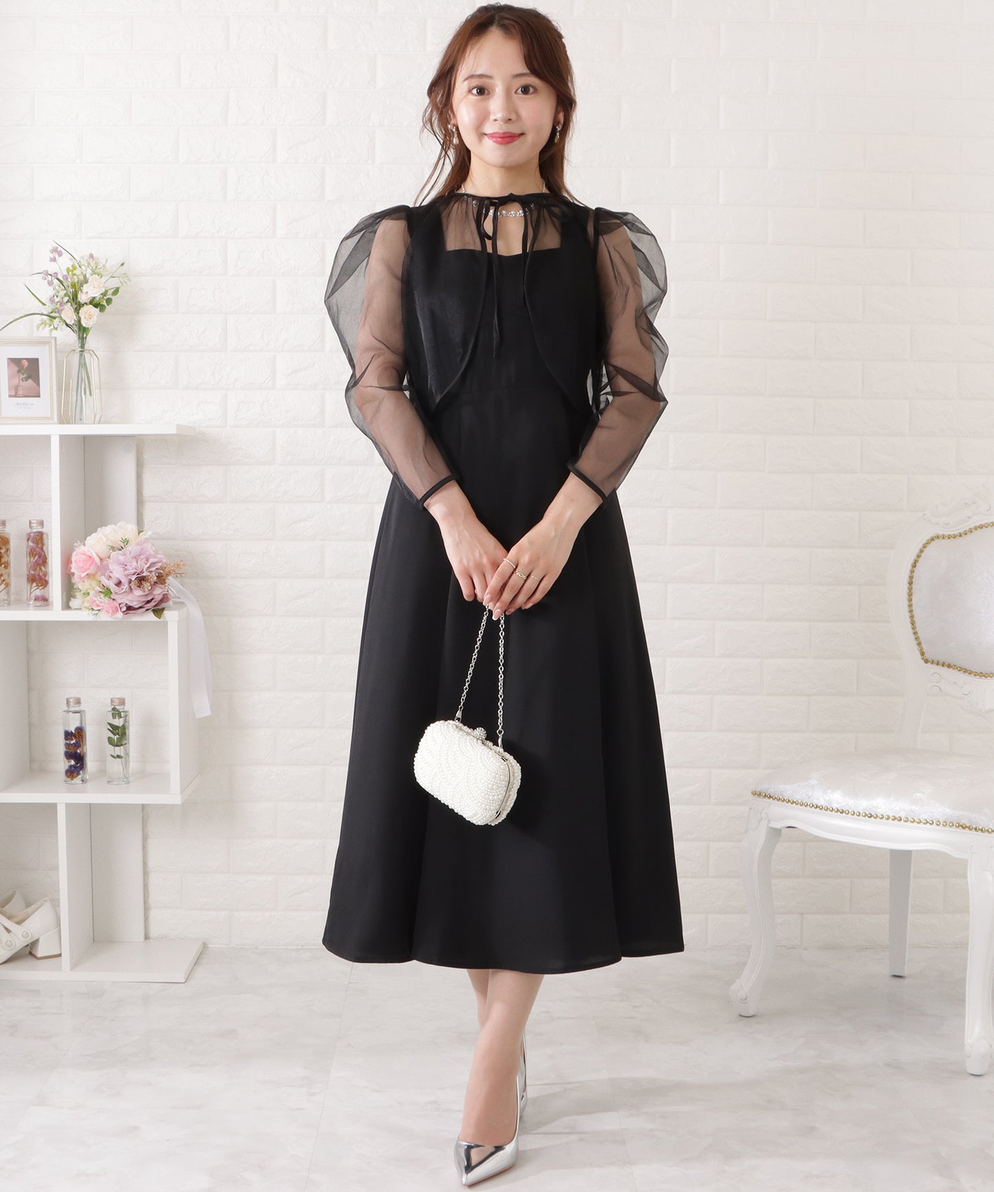 アクセサリーやヘアスタイル、小物などでのアレンジもしやすく、ライトからフォーマルまで幅広いシーンでお使いいただけます。