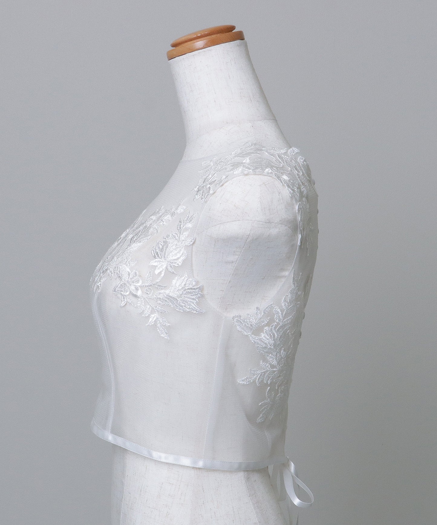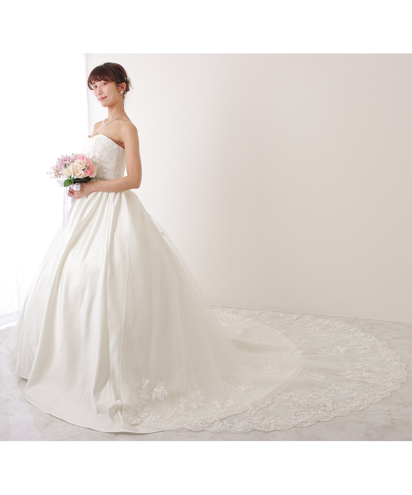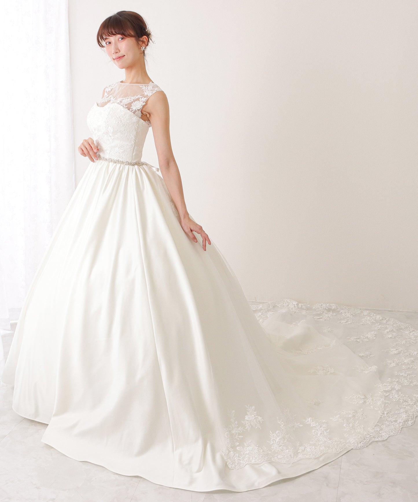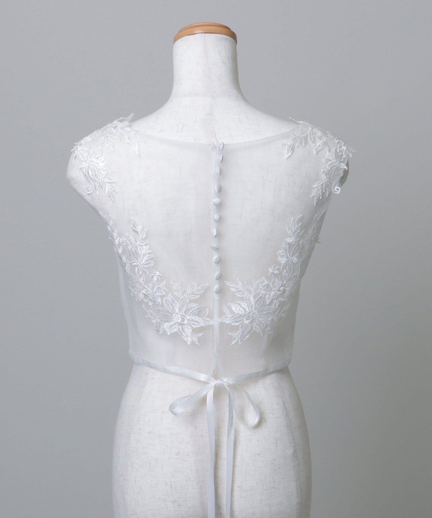 余韻を持たせるように儚げで美しいトレーンは、ほど良い長さで後ろ姿まで可愛らしい印象に。