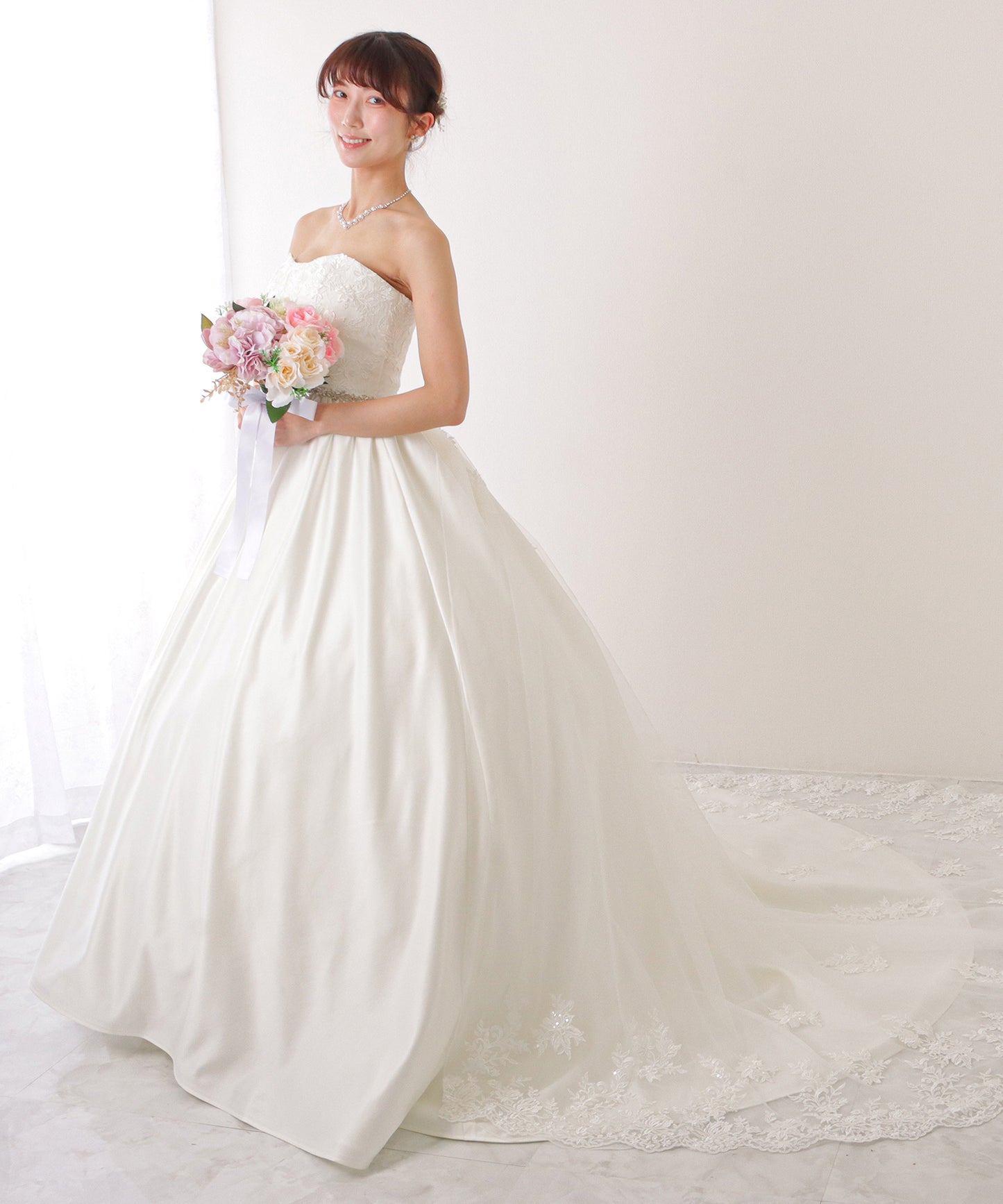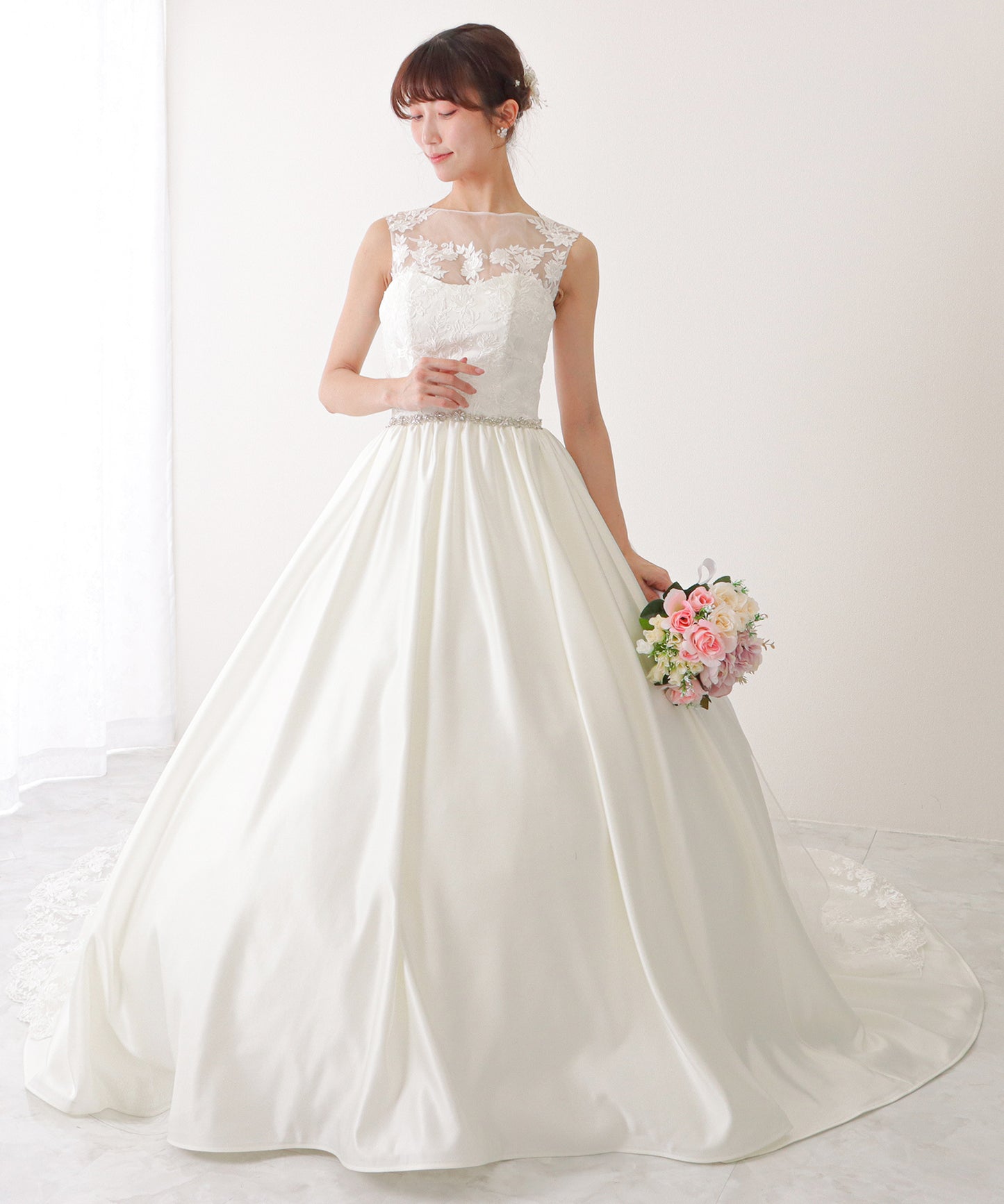 エレガントな花柄刺繍のデザインが、正統派の美しさをアピールするウエディングドレス。