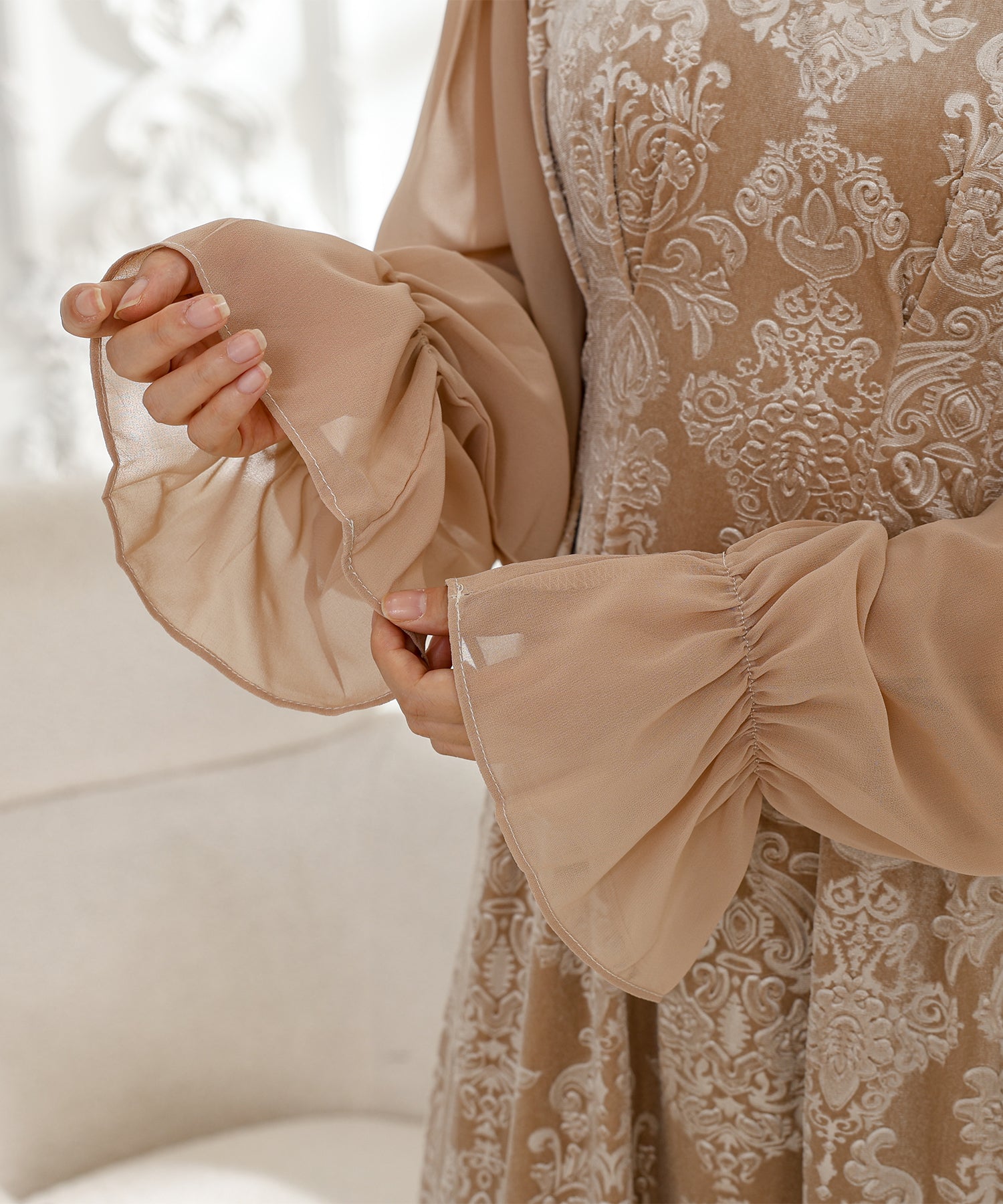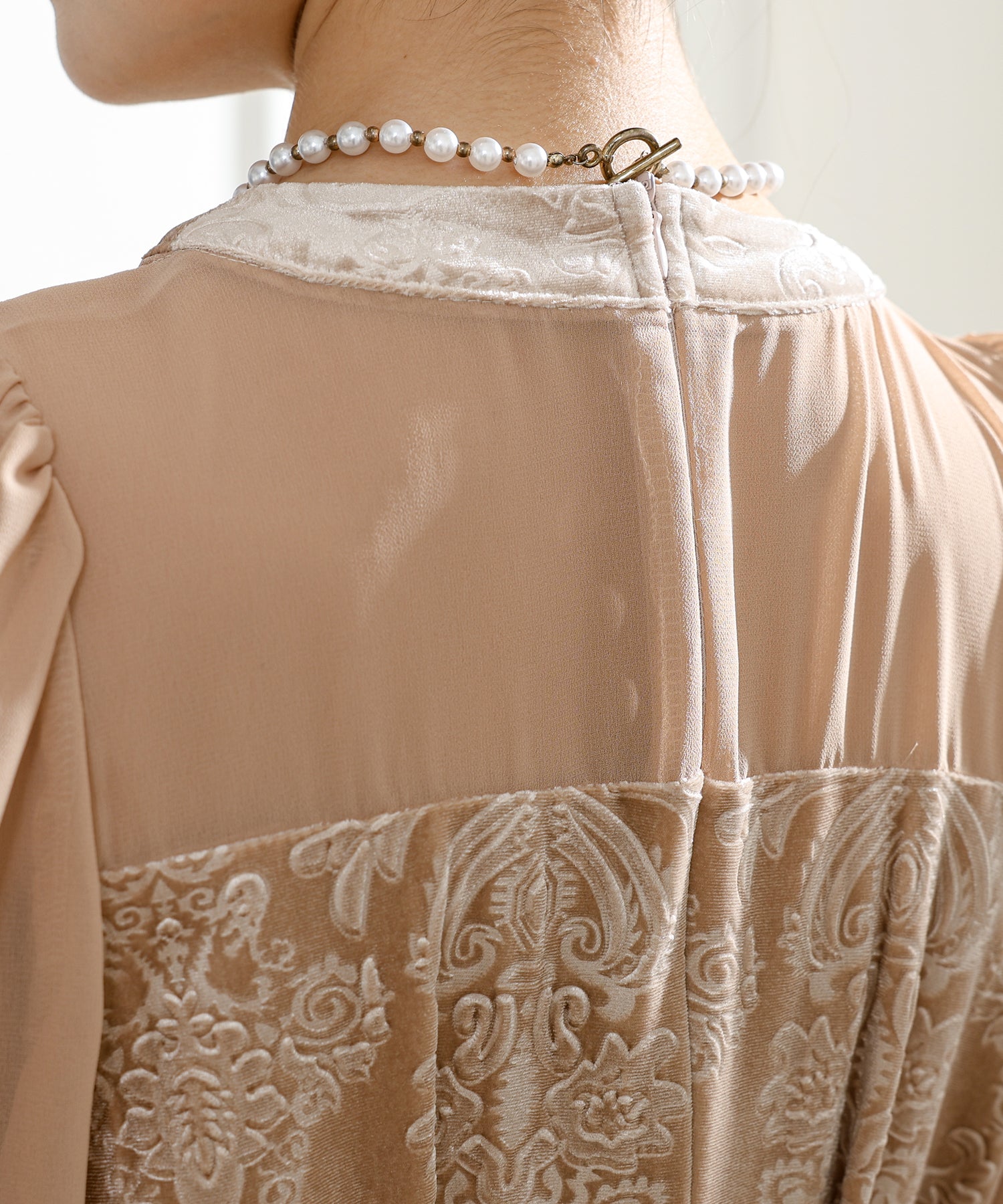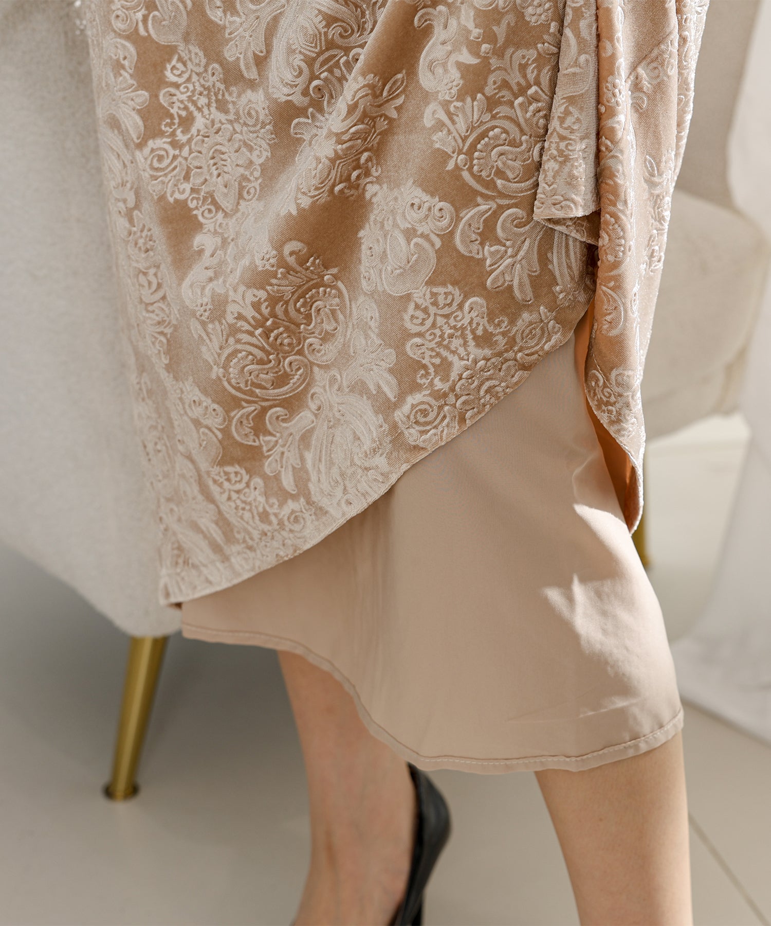 ベロア シアー フリルケープ付き ノースリーブ ドレス 3点セット