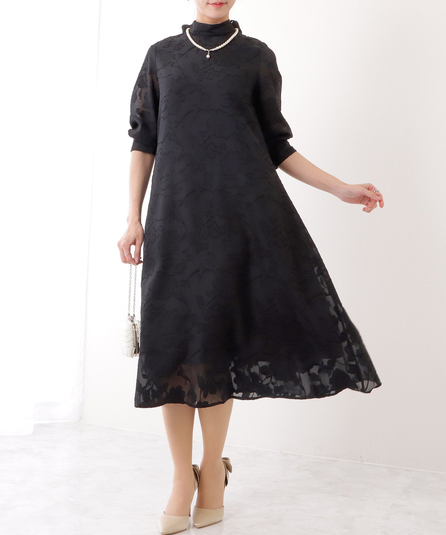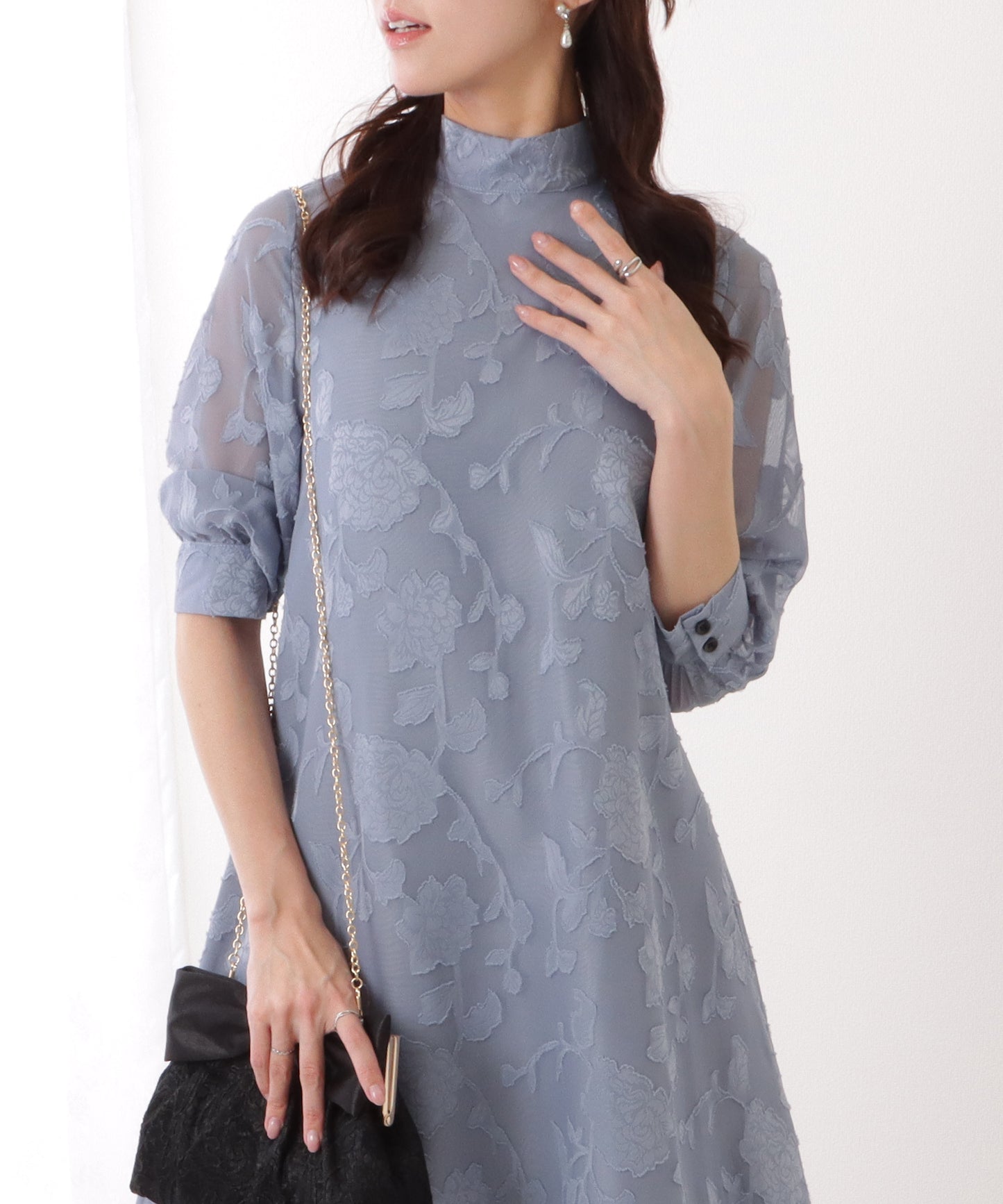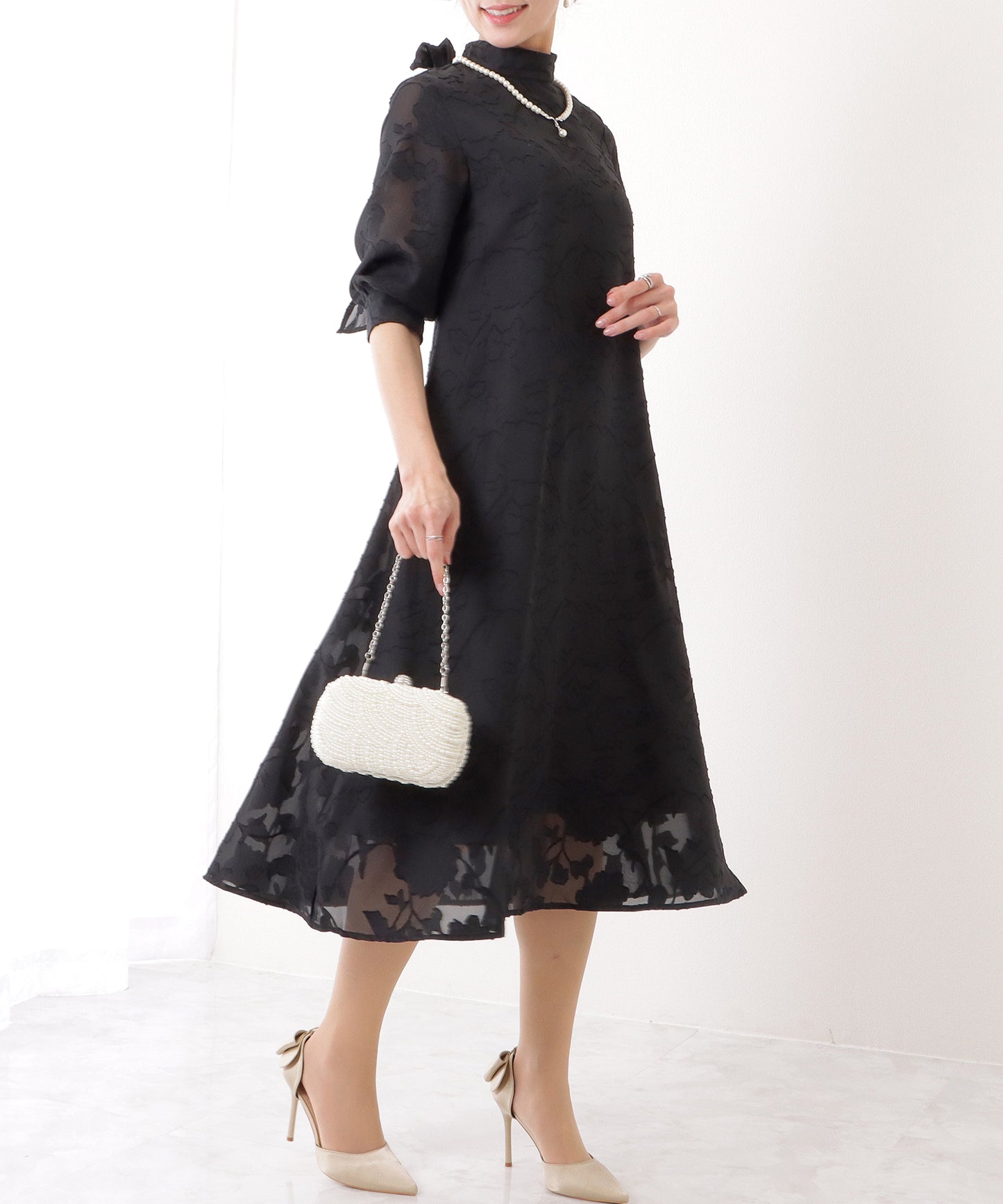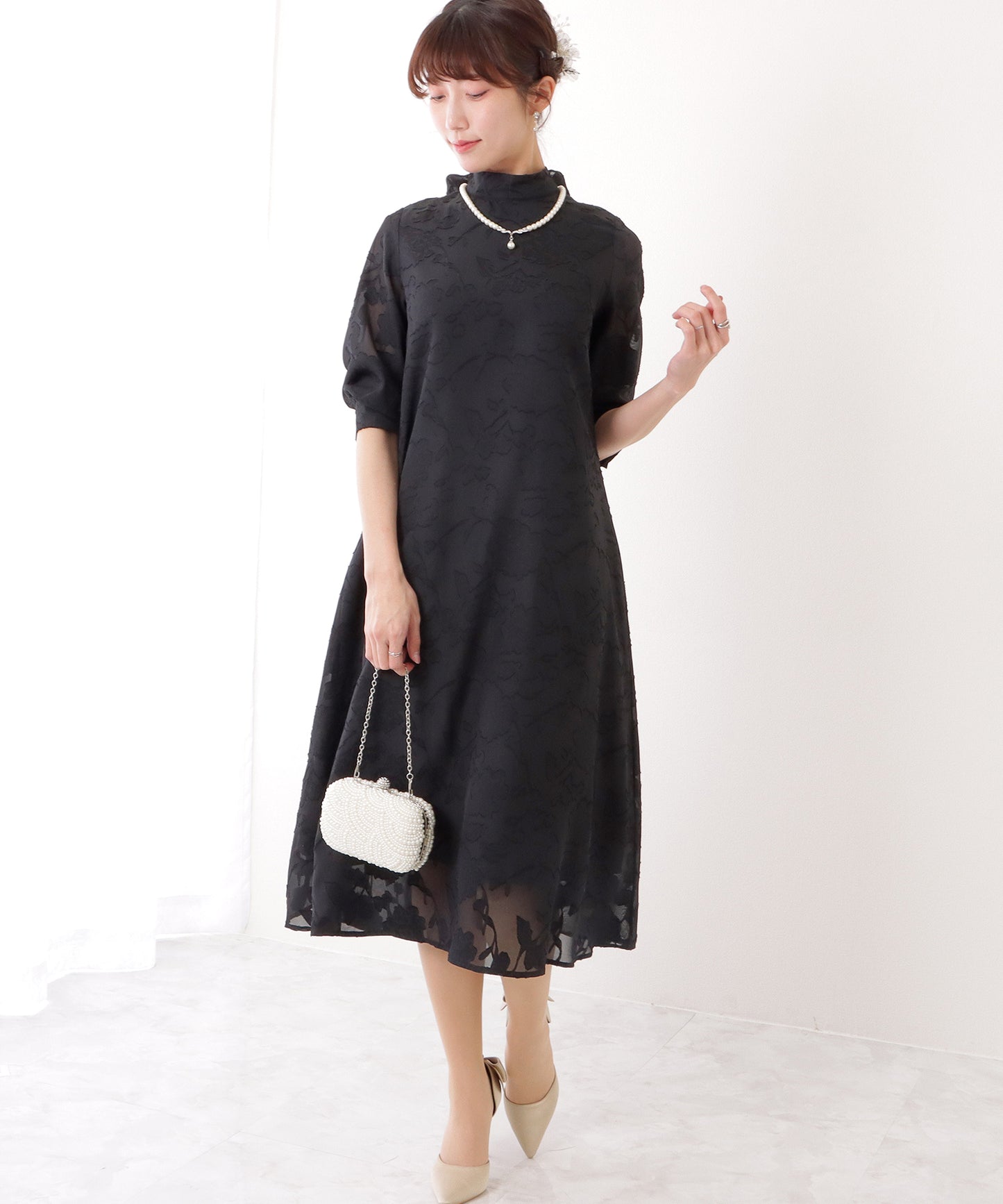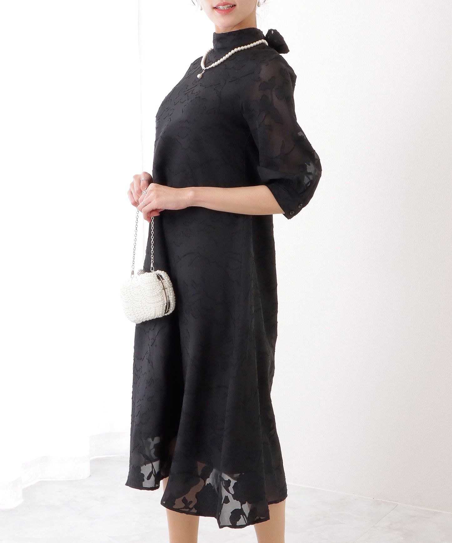バックリボン 総レース プチハイネック Aライン ワンピース